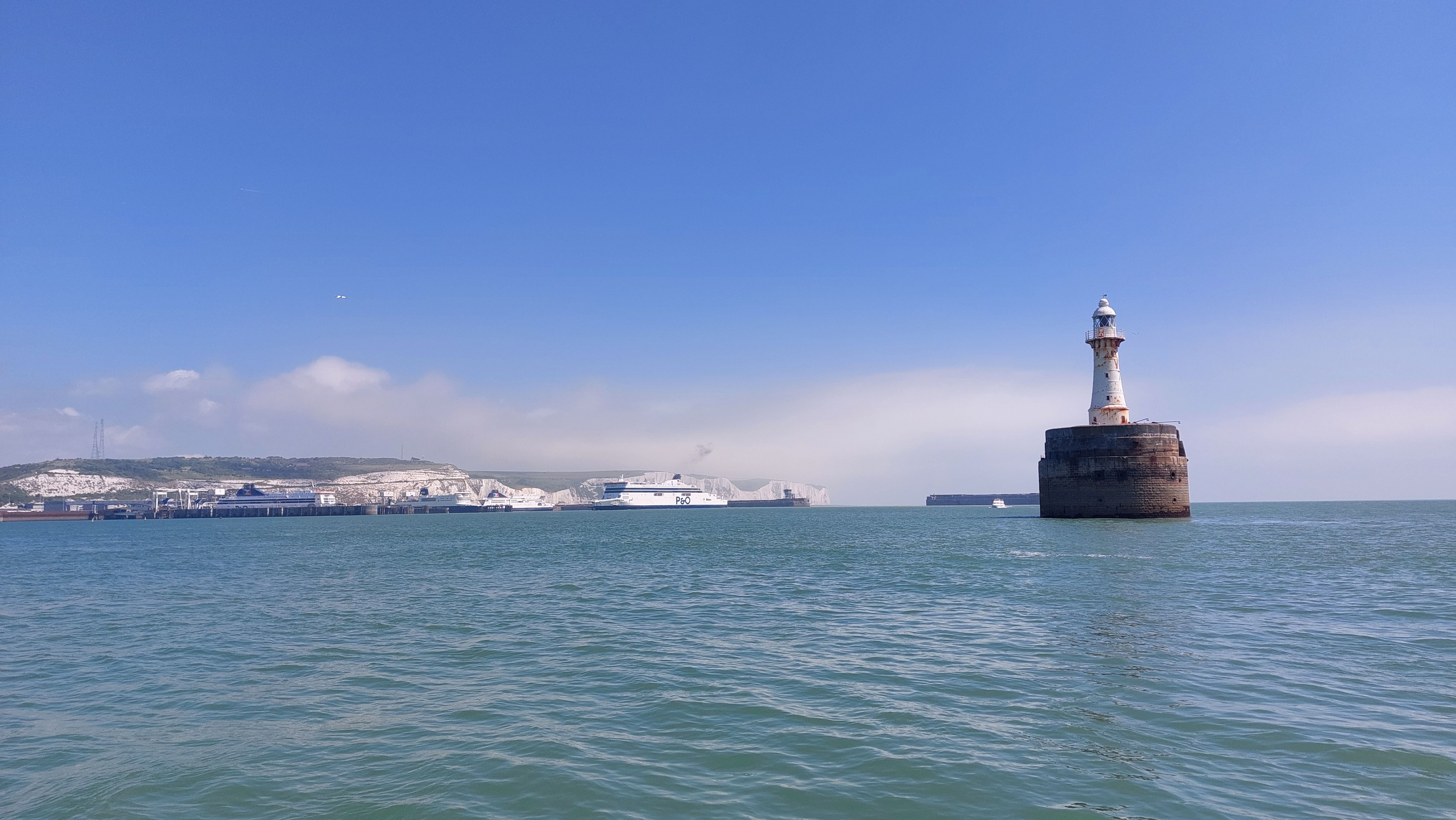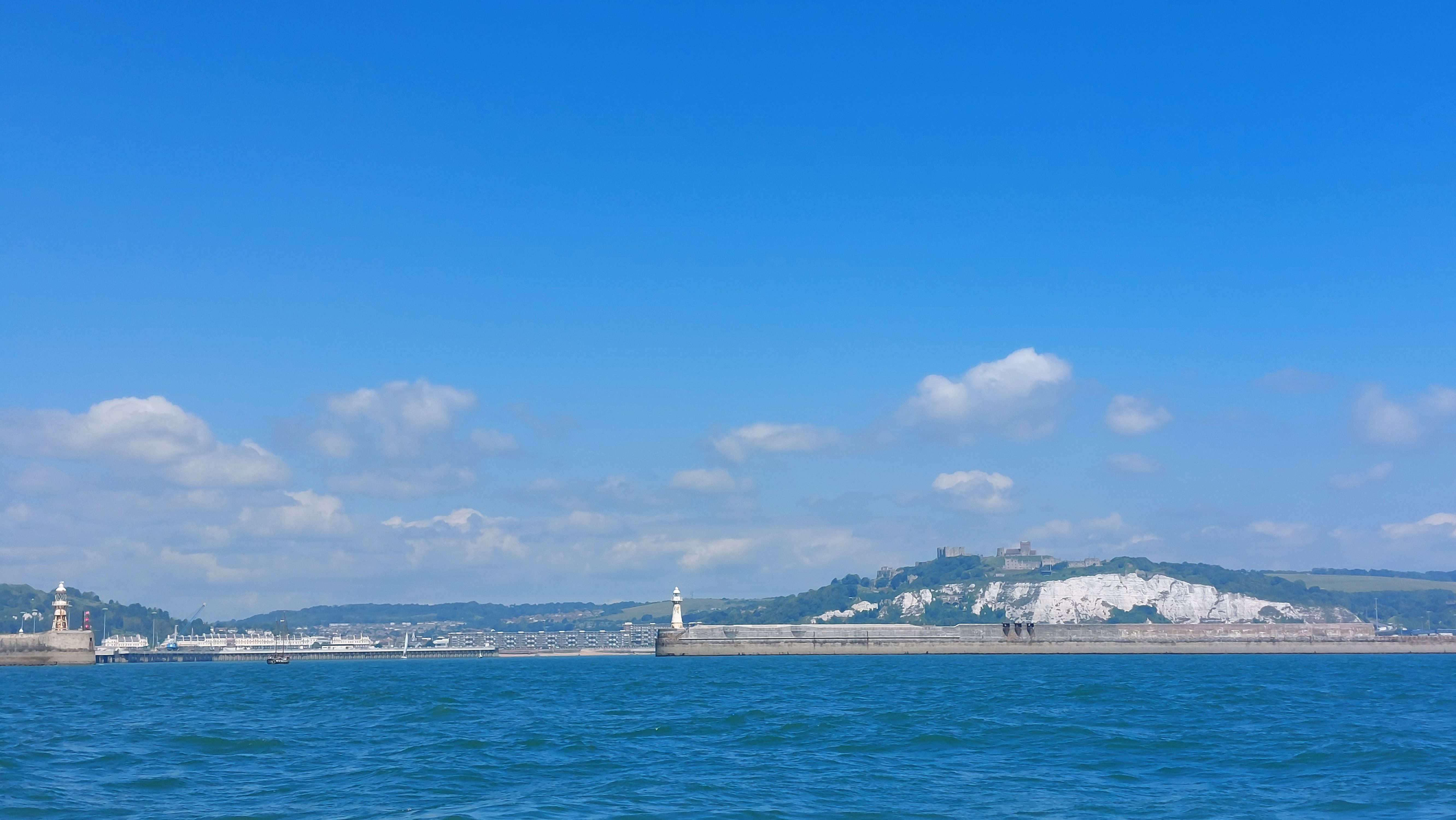 Hinter dem VTG reißt der Himmel auf und der Nebel lichtet sich. Die Sonne scheint auf die Küste und lässt Dovers weiße Klippen erstrahlen.