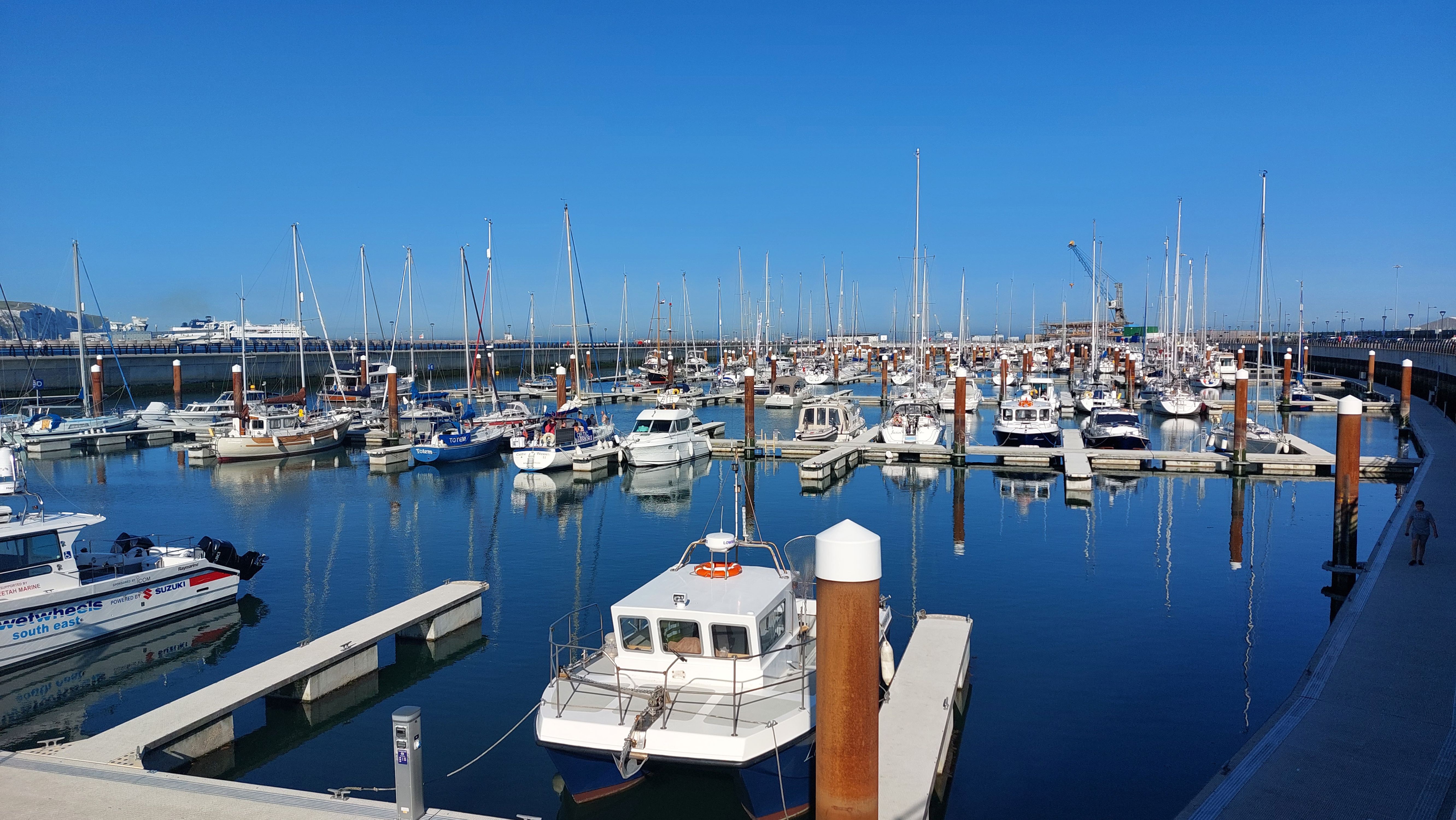 Dort wird meine Einfahrt sofort genehmigt. Nächster Stopp ist der Signalmast der neuen Outer Marina. Ein weiterer Anruf bei Dover VTS, ein paar Minuten warten bis ein anderes Boot ausgelaufen ist, dann die Aufforderung in die Marina einzufahren und gleich hinter der Einfahrt auf einem anderen Kanal das Marina Office anzurufen um einen Platz zugewiesen zu bekommen.