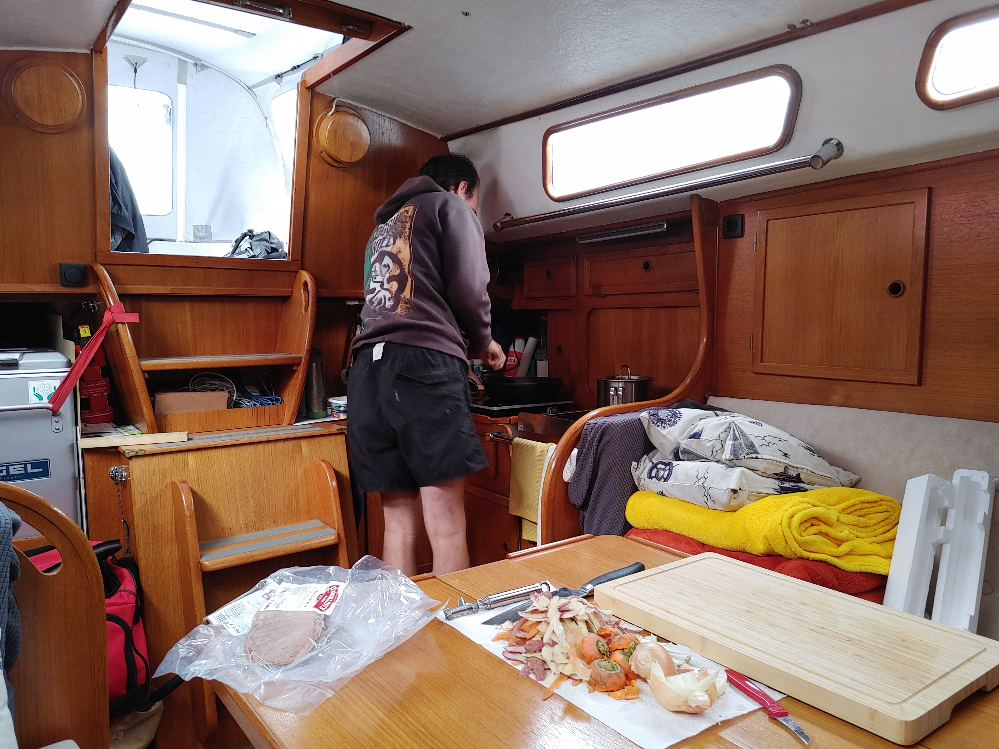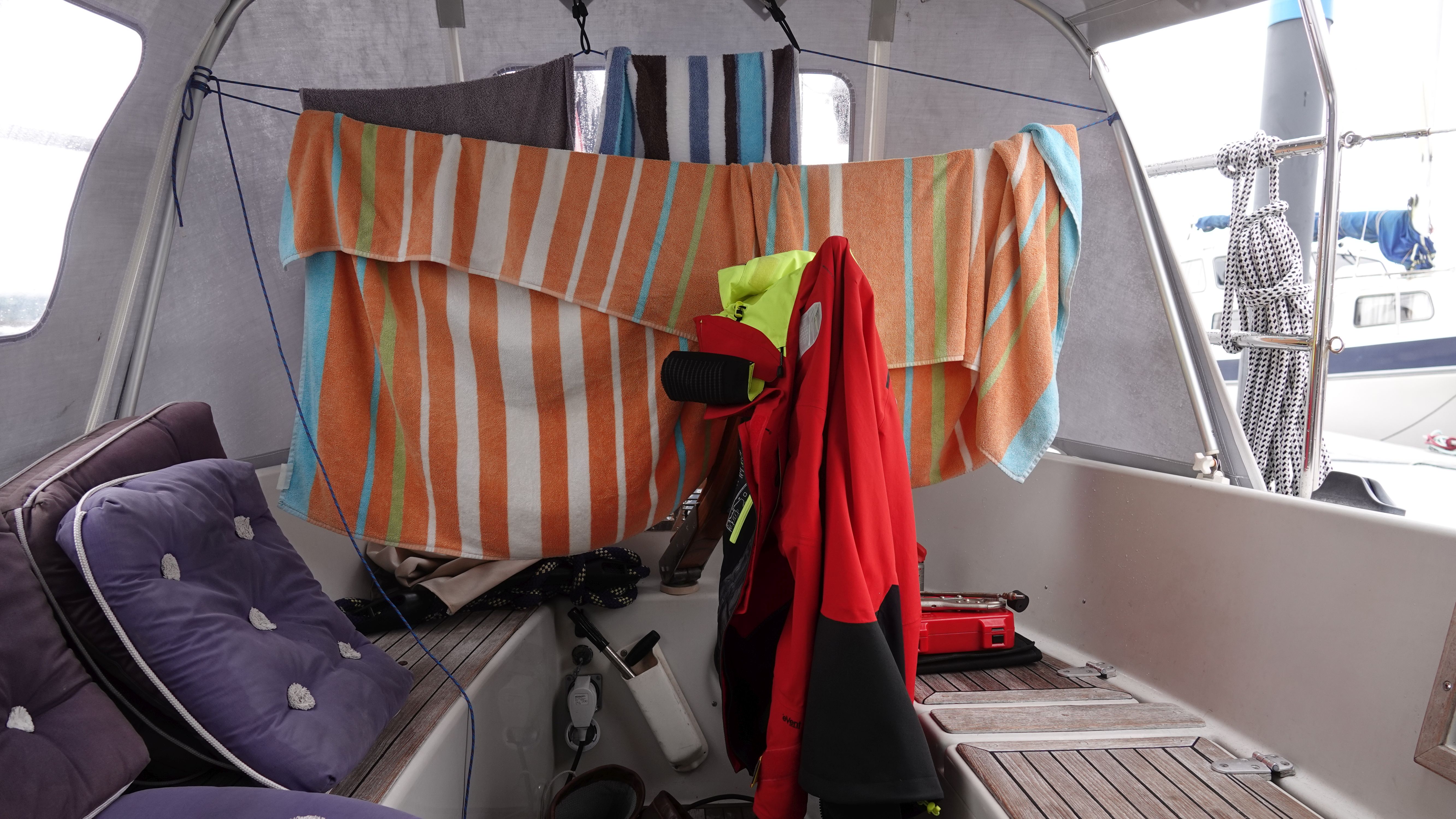 An Bord starten wir wieder den Heizlüfter. Es ist zwar im Moment nicht so sehr kalt, aber noch sehr feucht unter Deck und so bekommen wir die Luft etwas getrocknet während es draußen den restlichen Tag regnet.