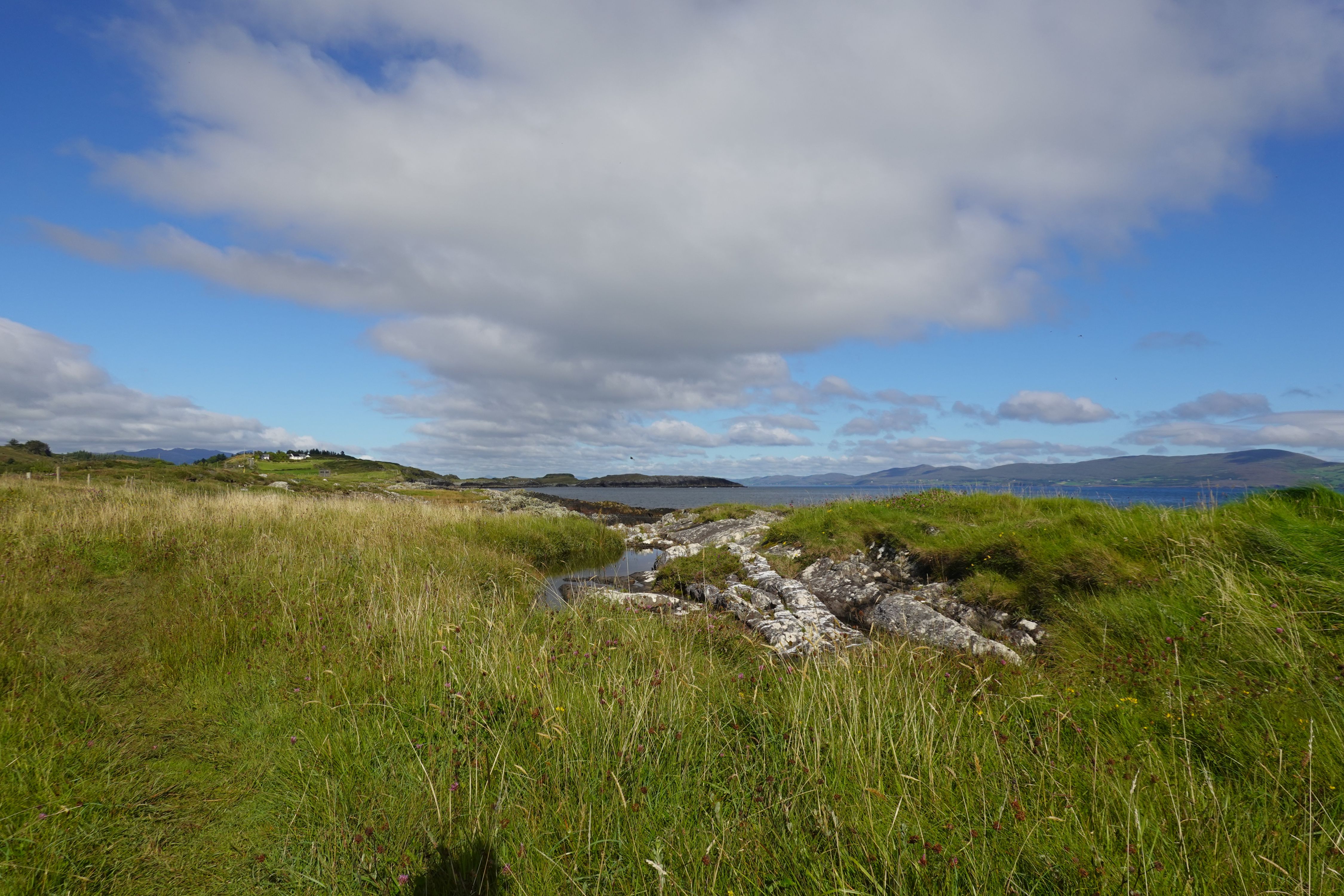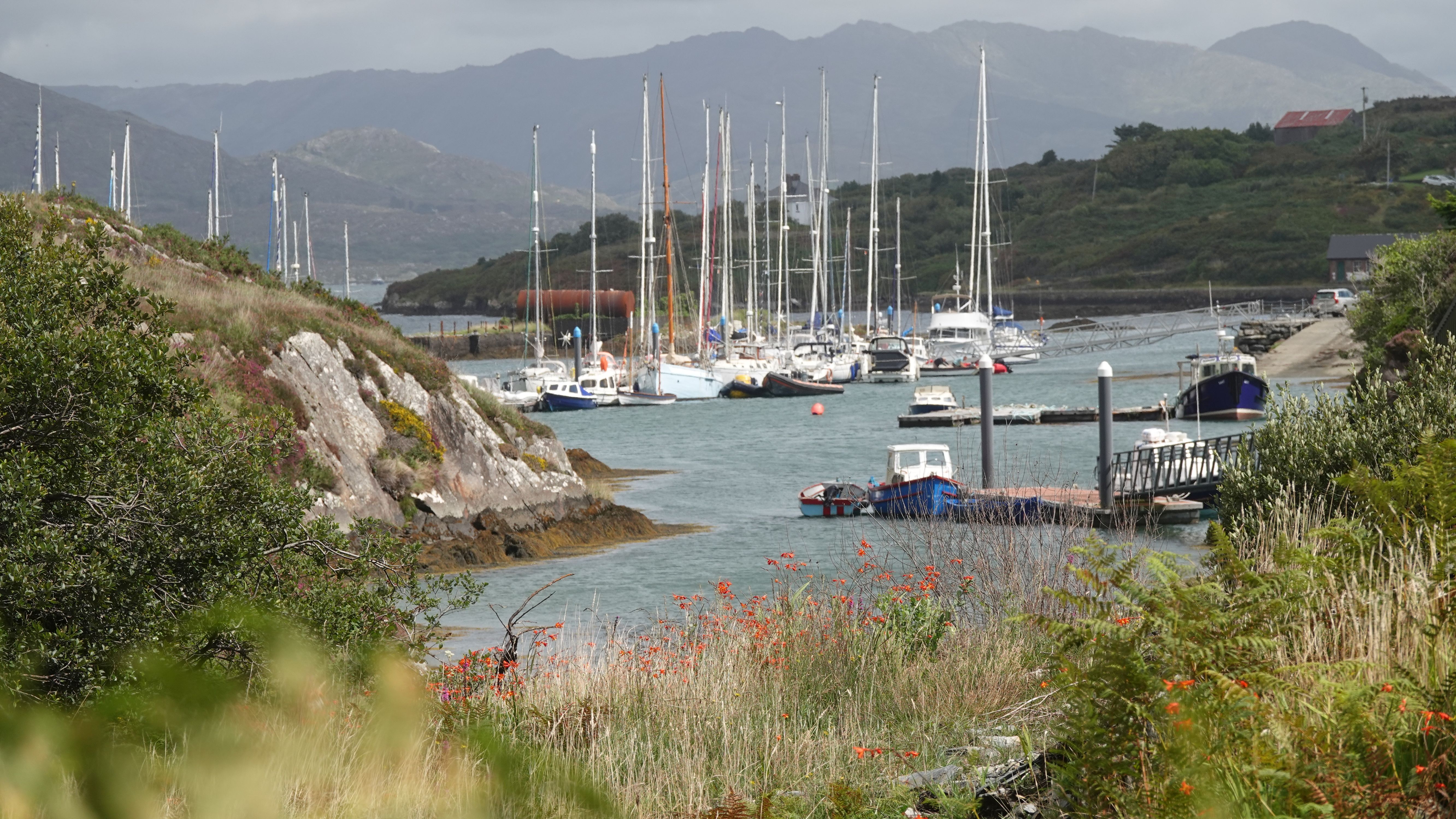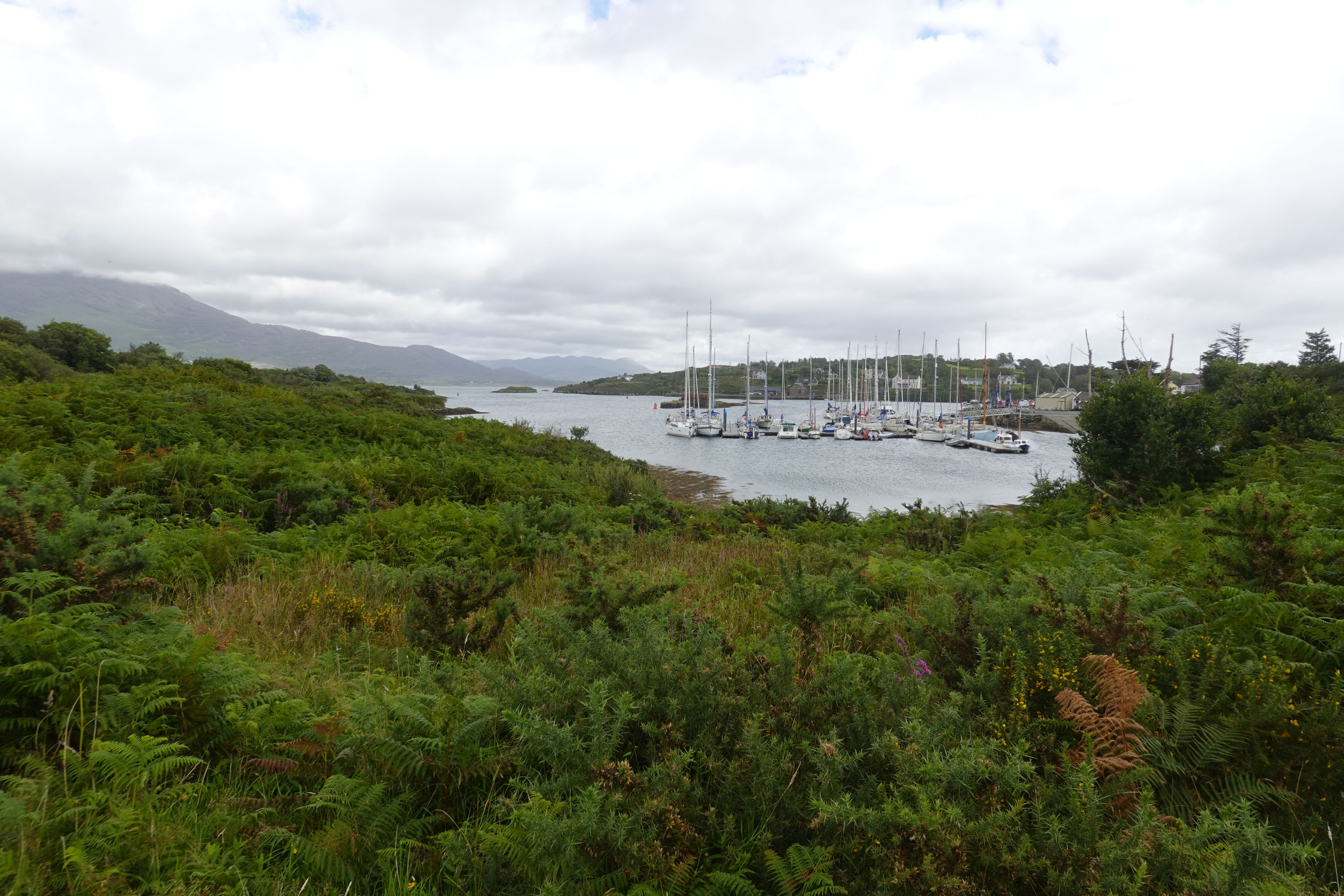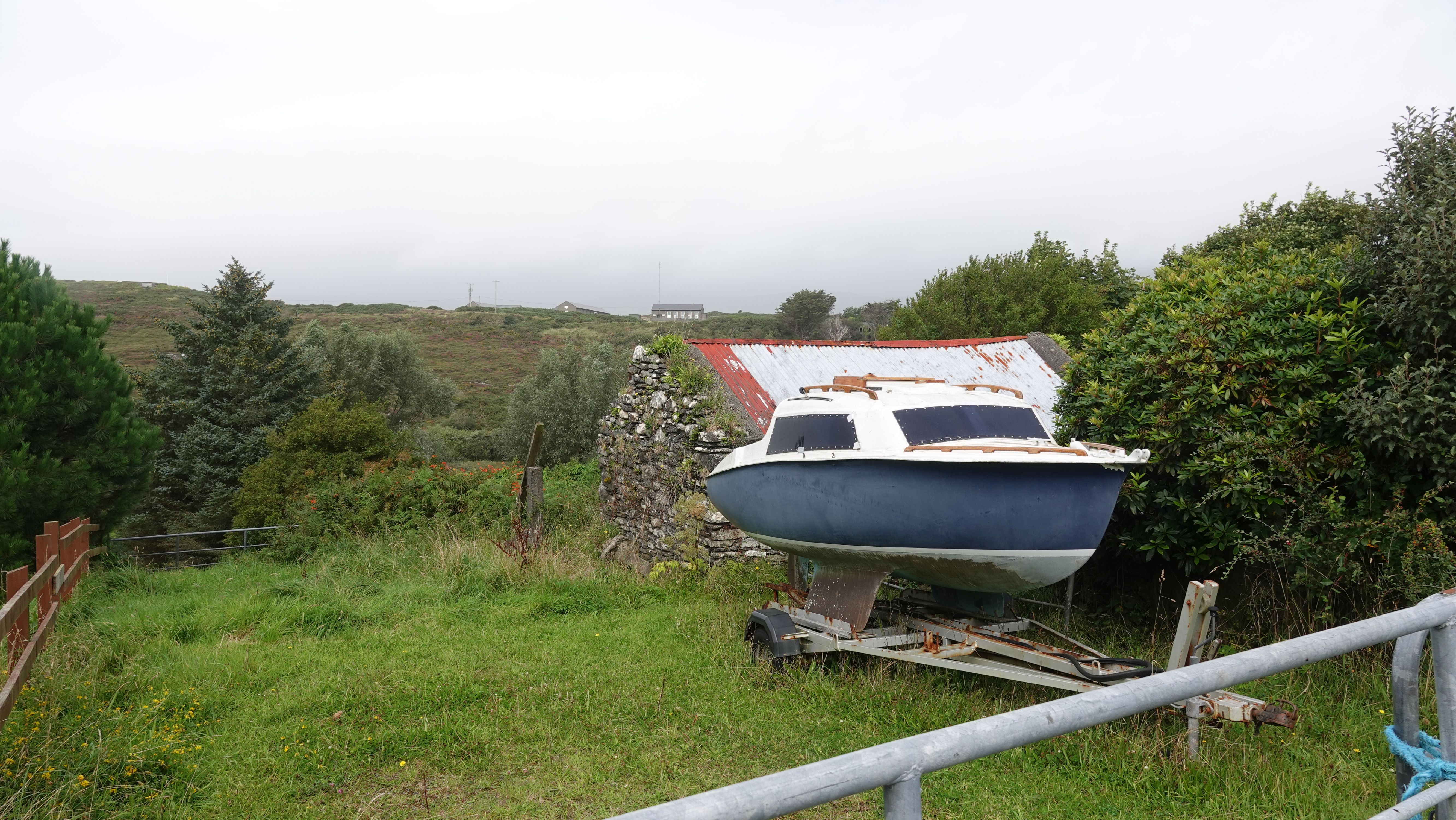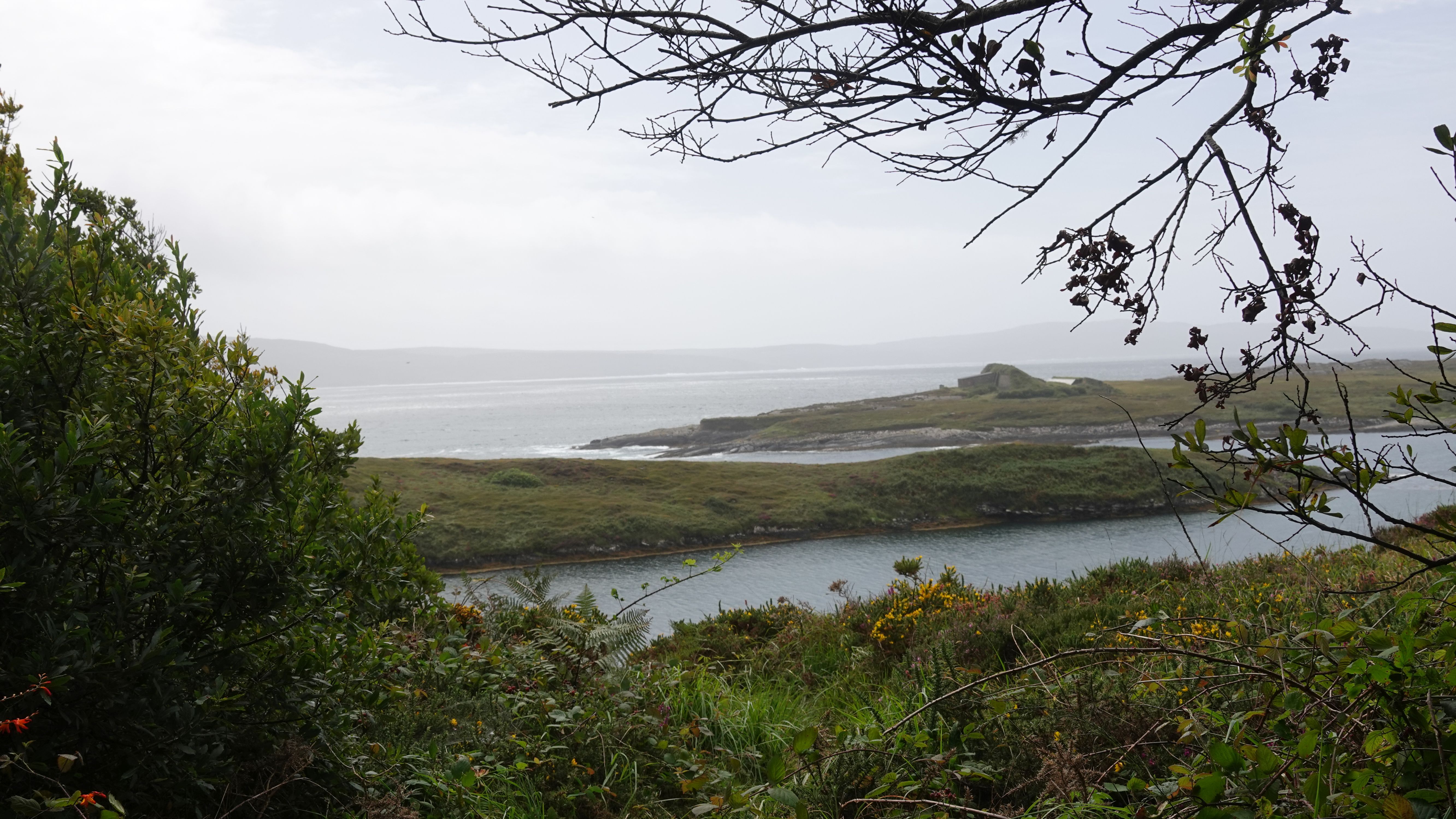 Da es einigermaßen trocken ist, wird heute wieder ein Erkundungstag. Wir laufen in den Westen der Insel bis kurz vor Lonehort Fort. Vorbei an einem alten Internment Camp und runter zu der Ankerbucht Lonehort Harbour, dann über Rerrin zurück zum Hafen.