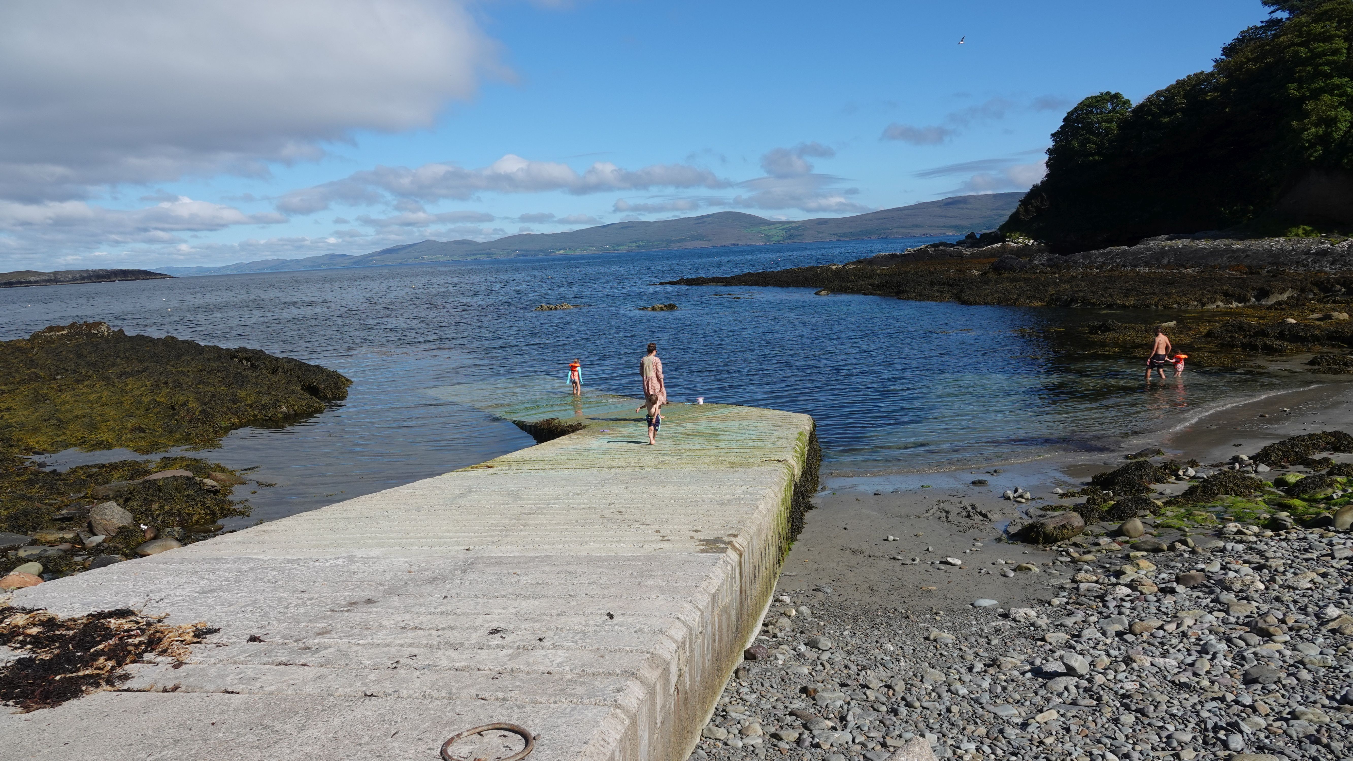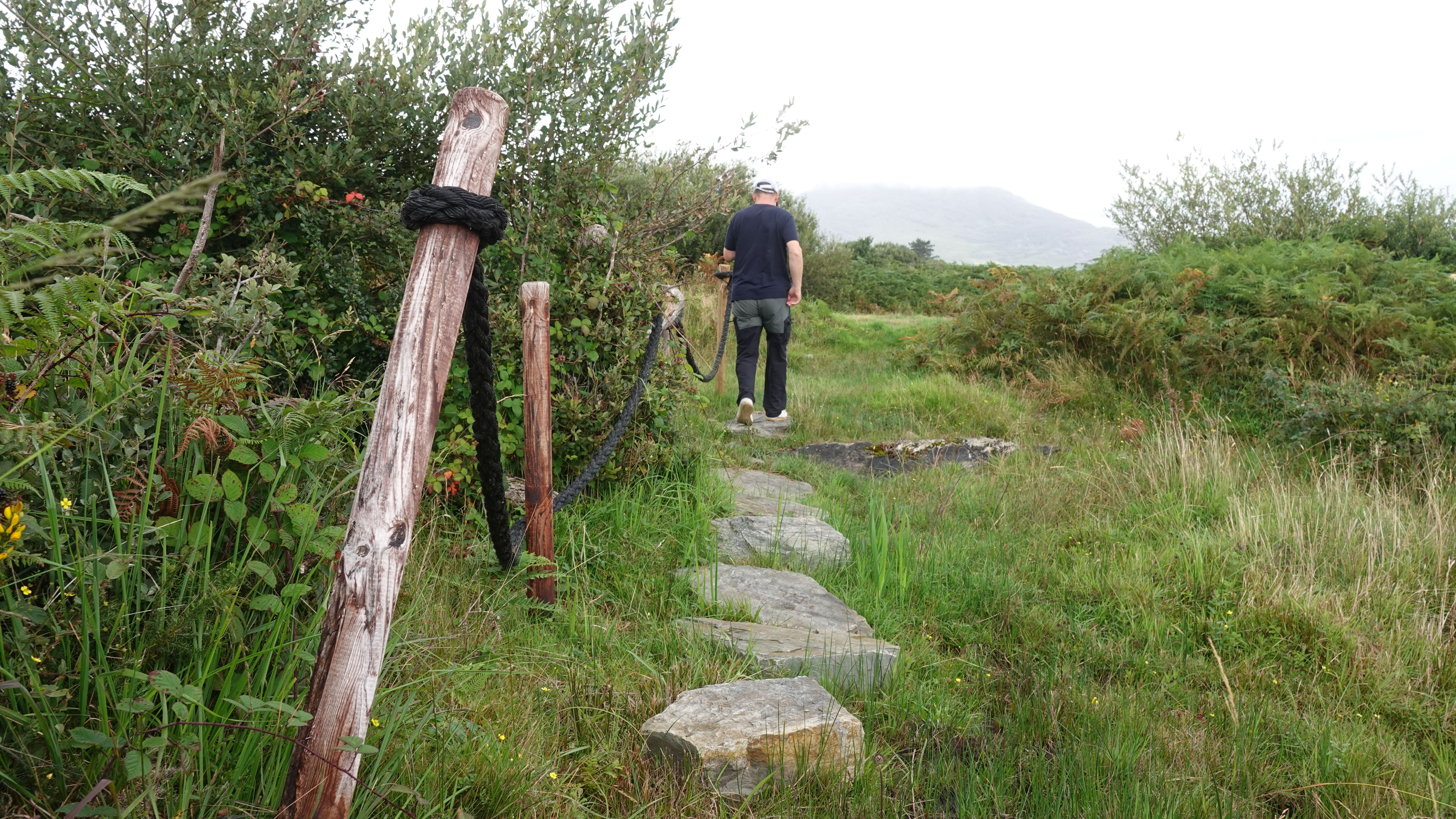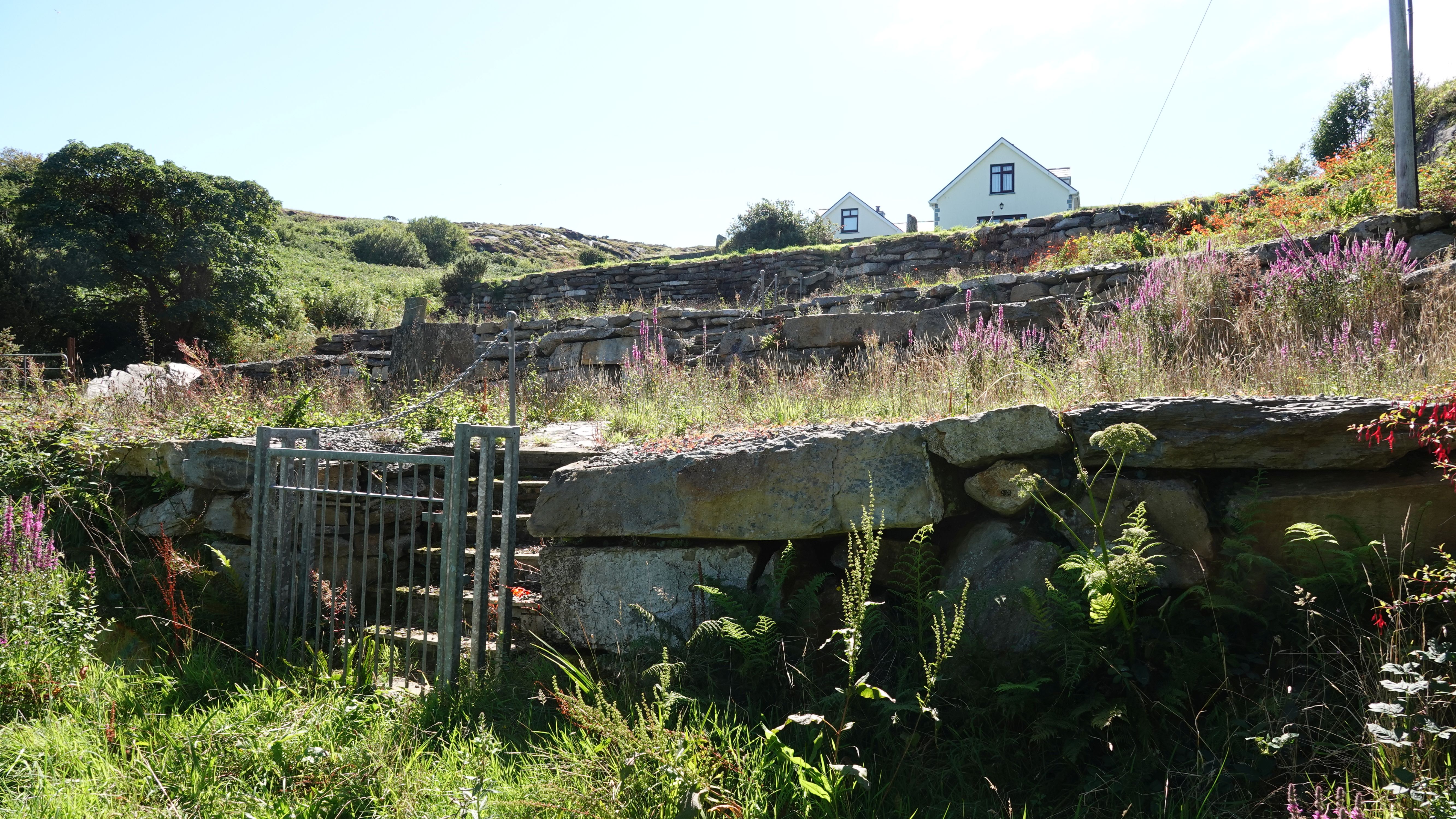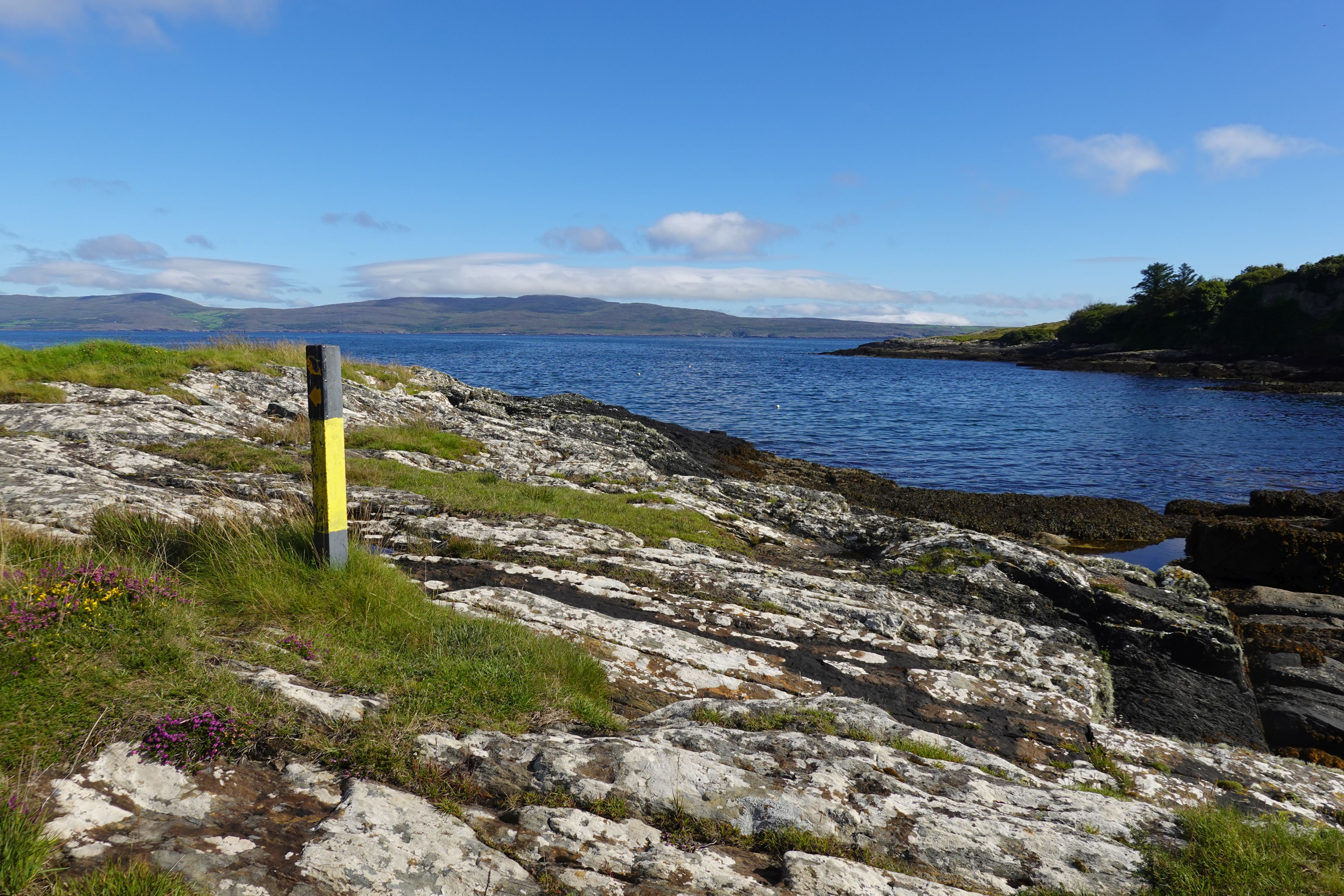 Da es einigermaßen trocken ist, wird heute wieder ein Erkundungstag. Wir laufen in den Westen der Insel bis kurz vor Lonehort Fort. Vorbei an einem alten Internment Camp und runter zu der Ankerbucht Lonehort Harbour, dann über Rerrin zurück zum Hafen.