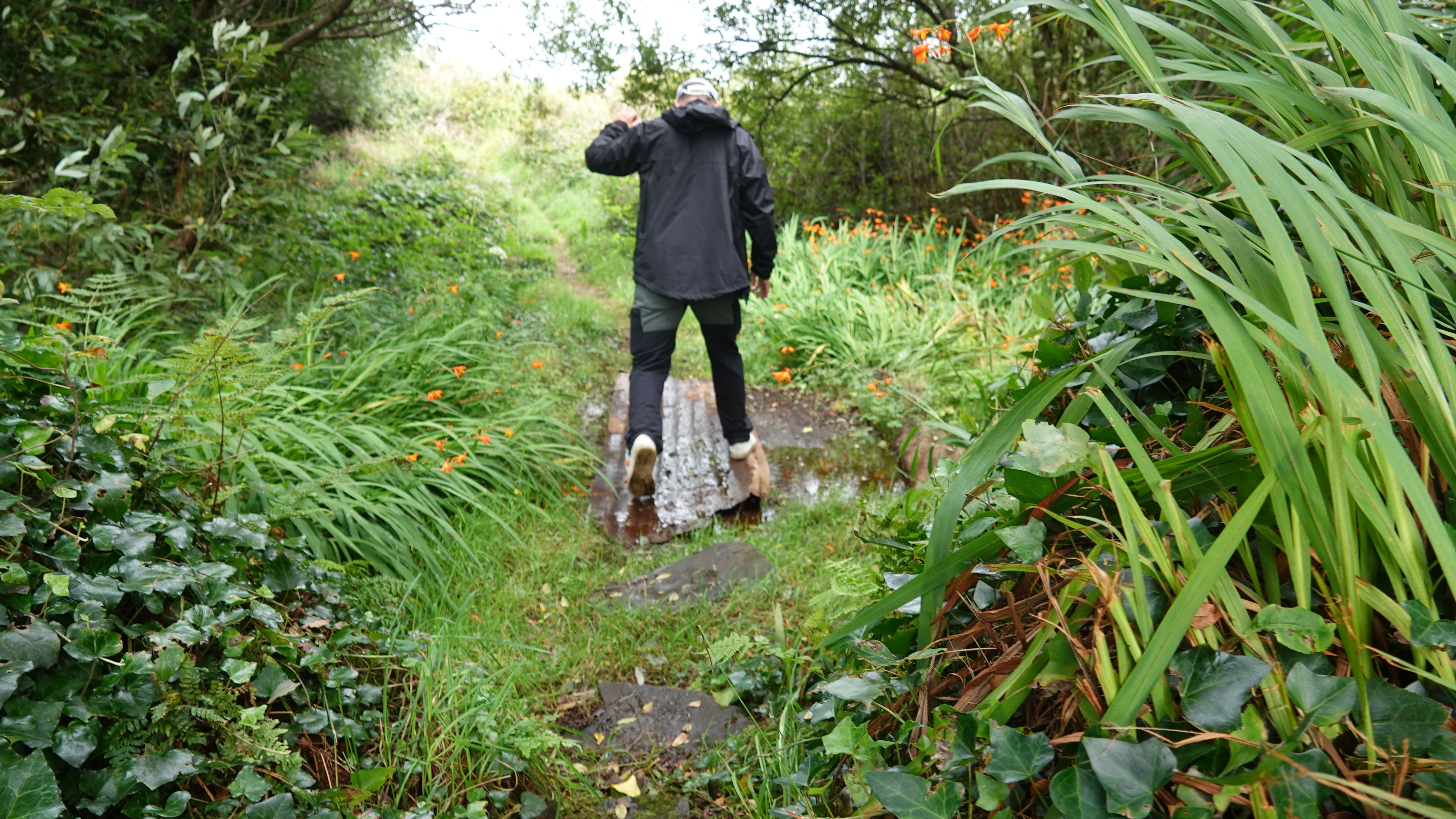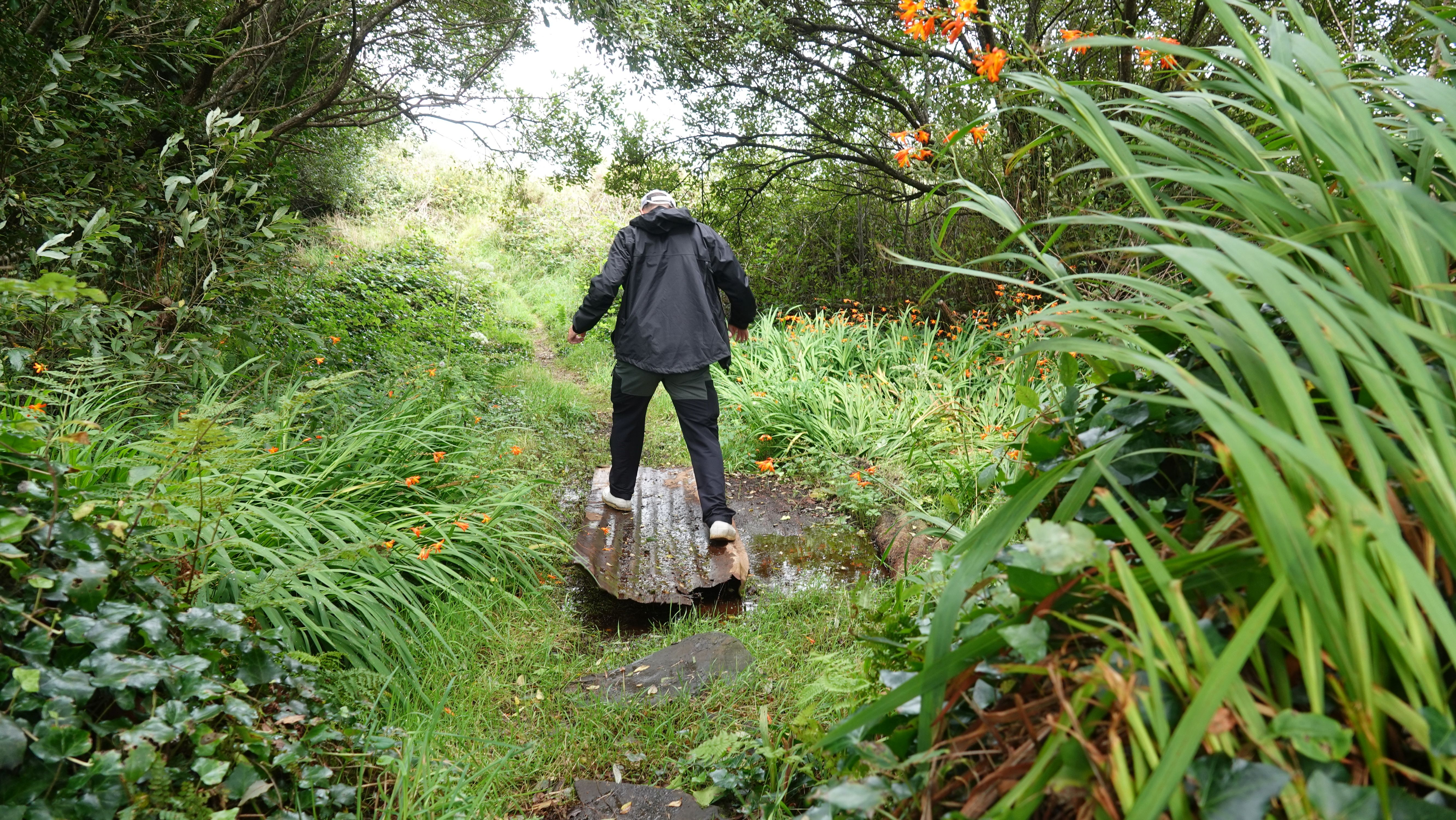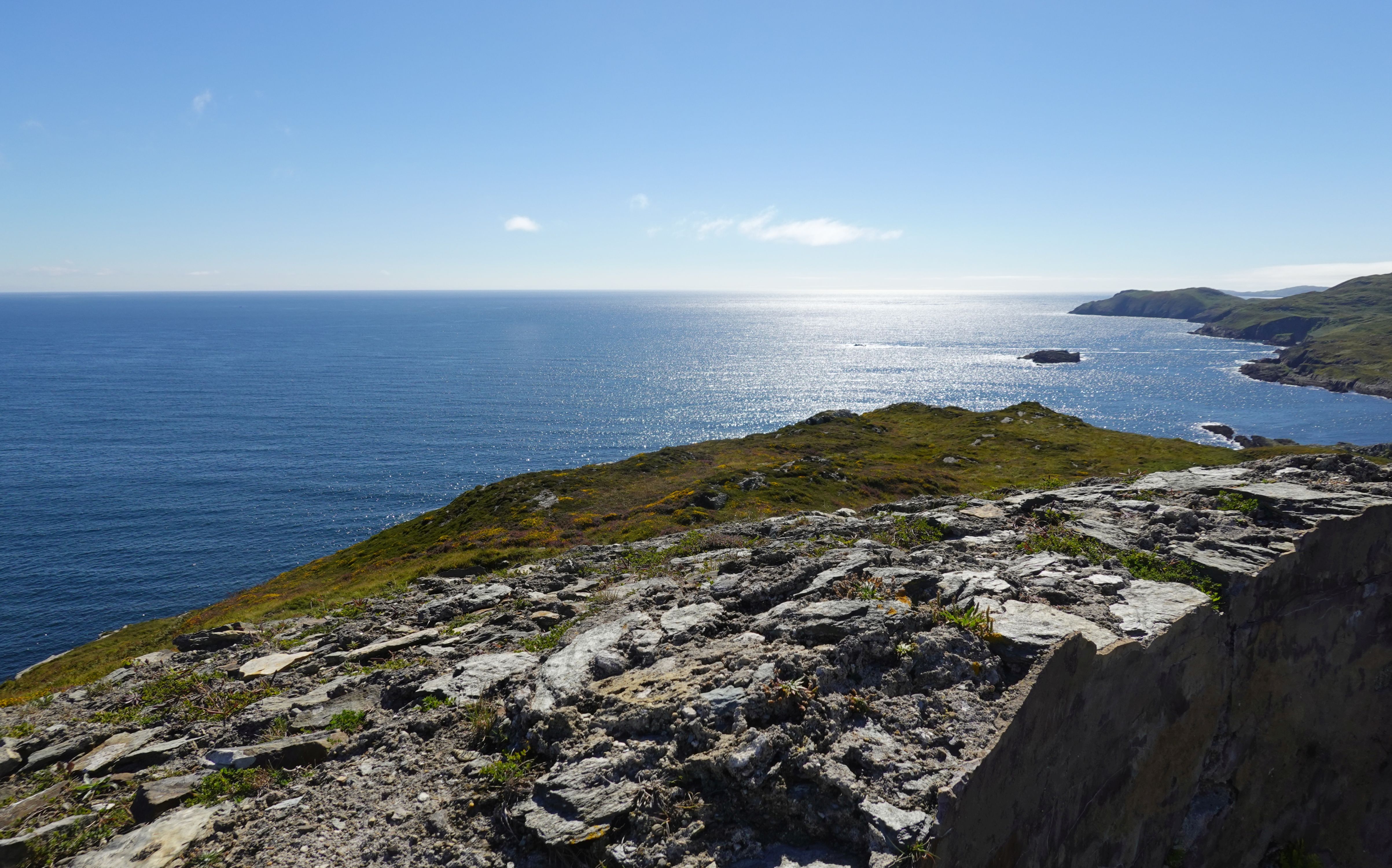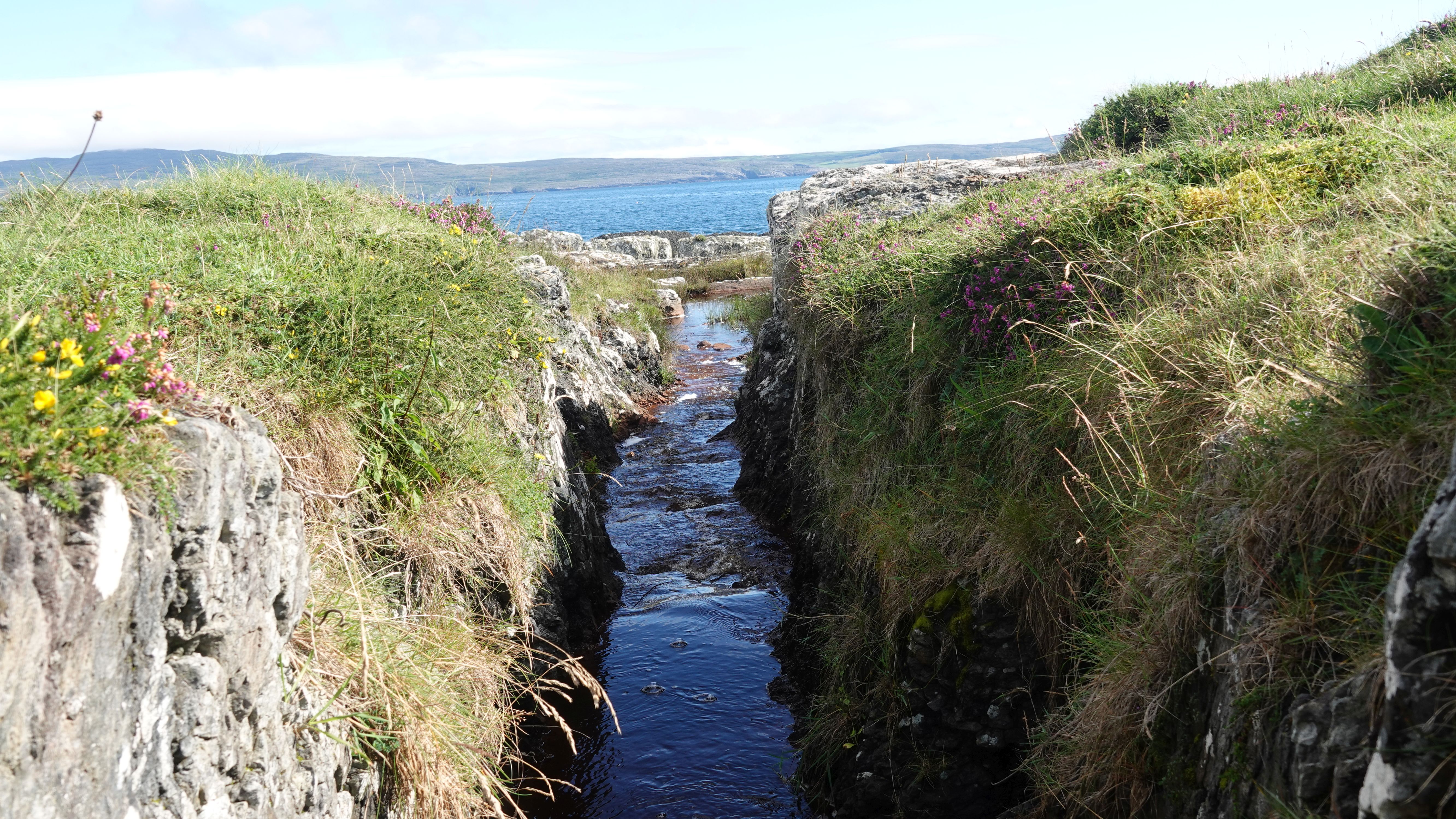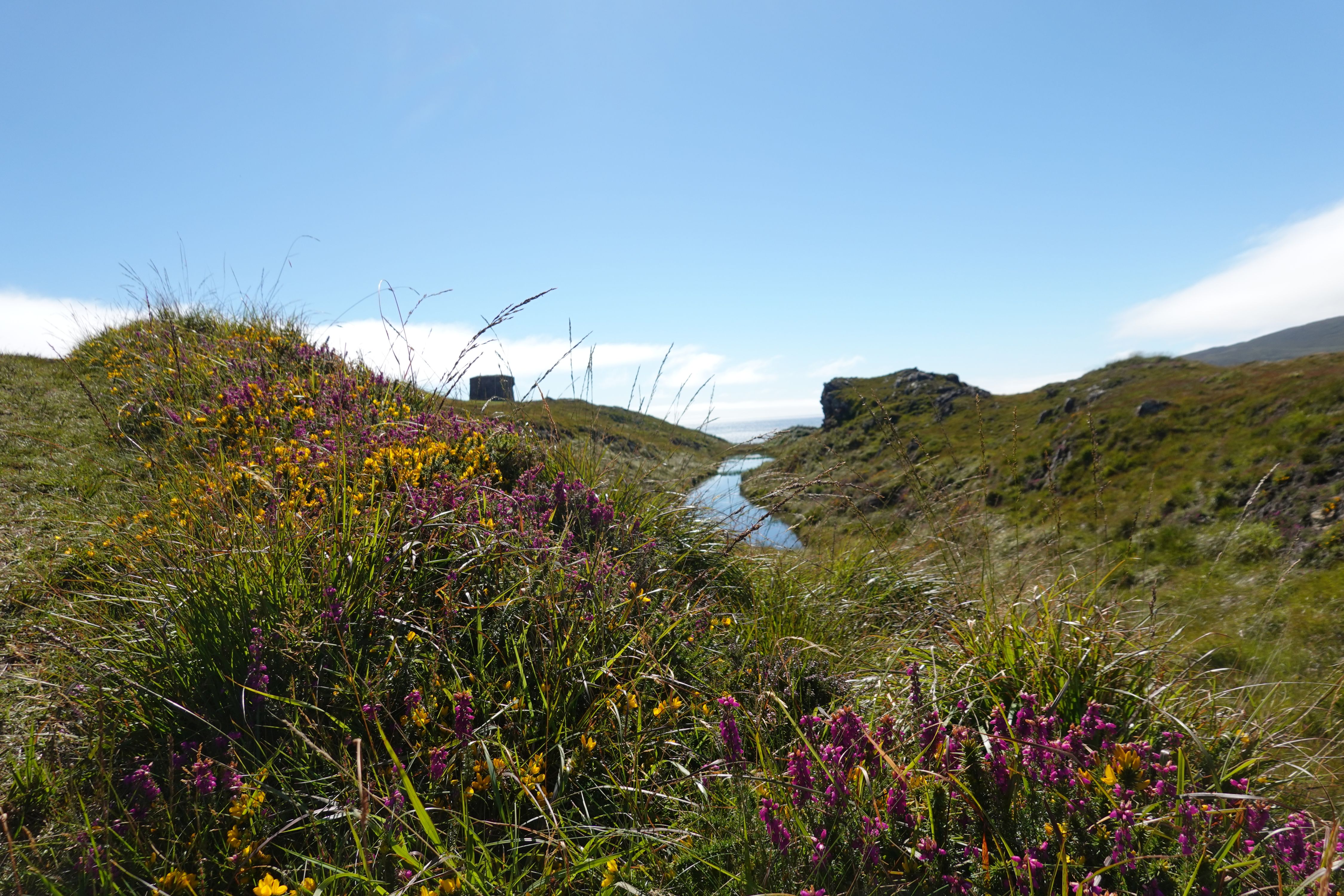 Da es einigermaßen trocken ist, wird heute wieder ein Erkundungstag. Wir laufen in den Westen der Insel bis kurz vor Lonehort Fort. Vorbei an einem alten Internment Camp und runter zu der Ankerbucht Lonehort Harbour, dann über Rerrin zurück zum Hafen.