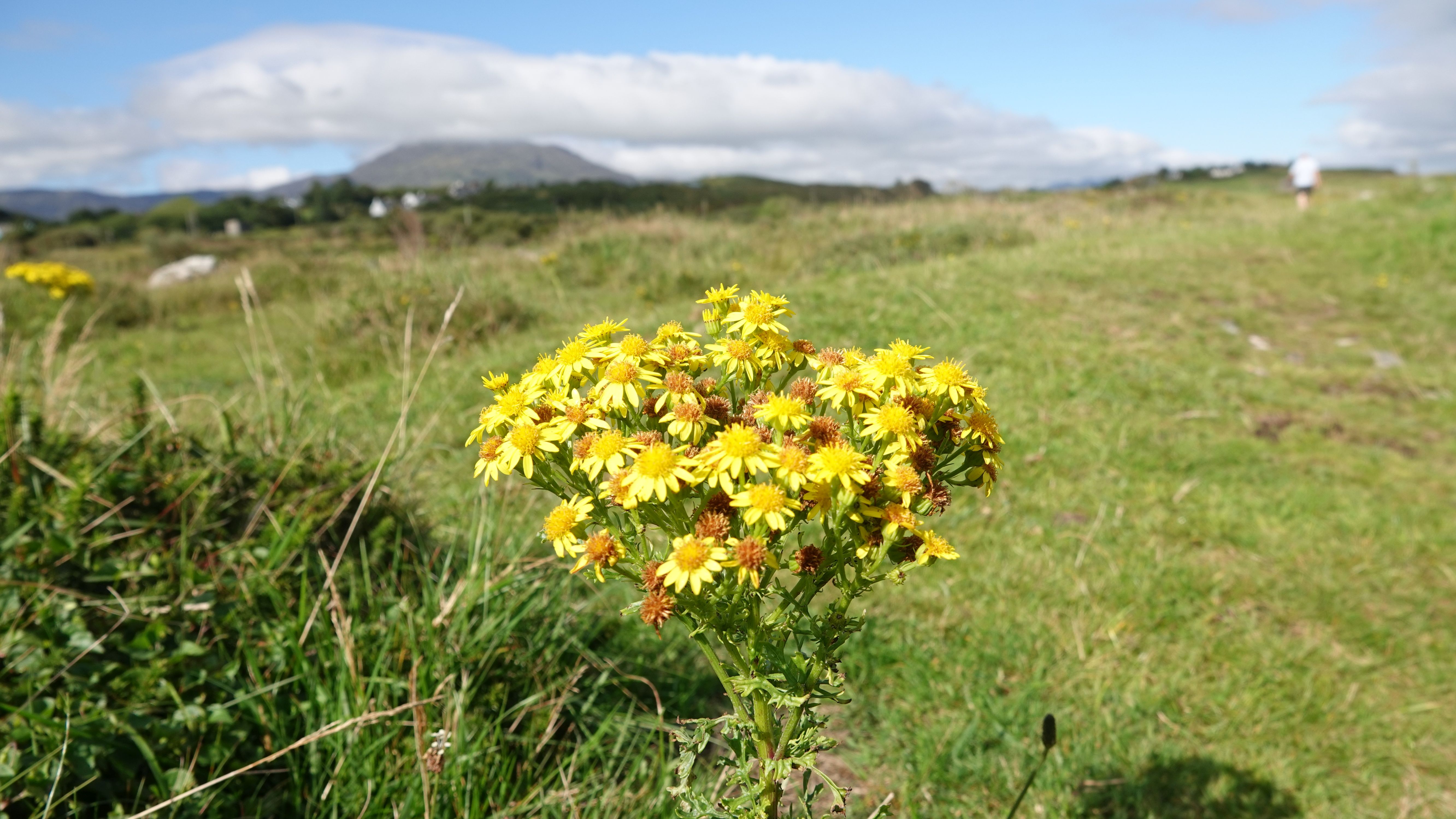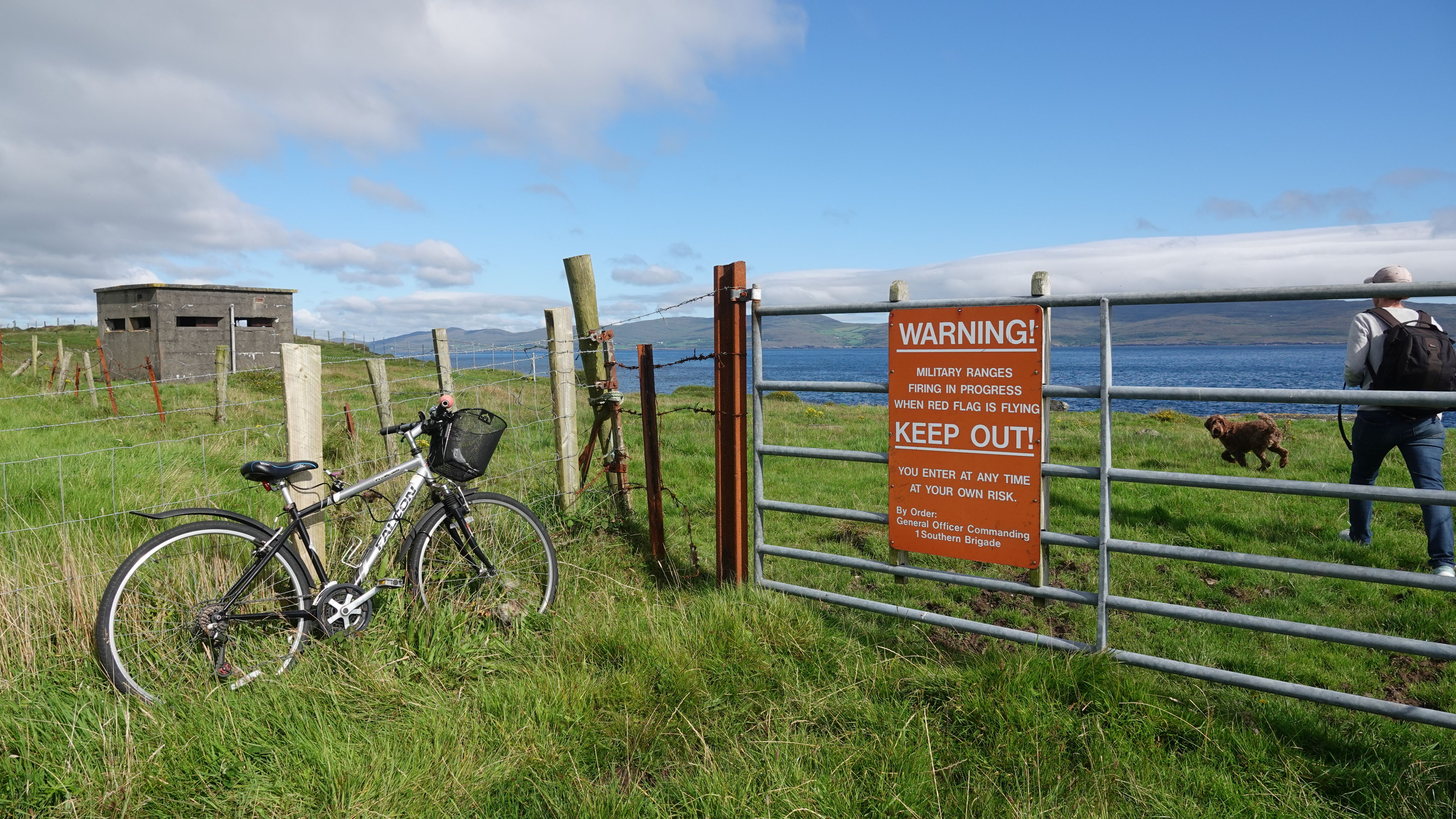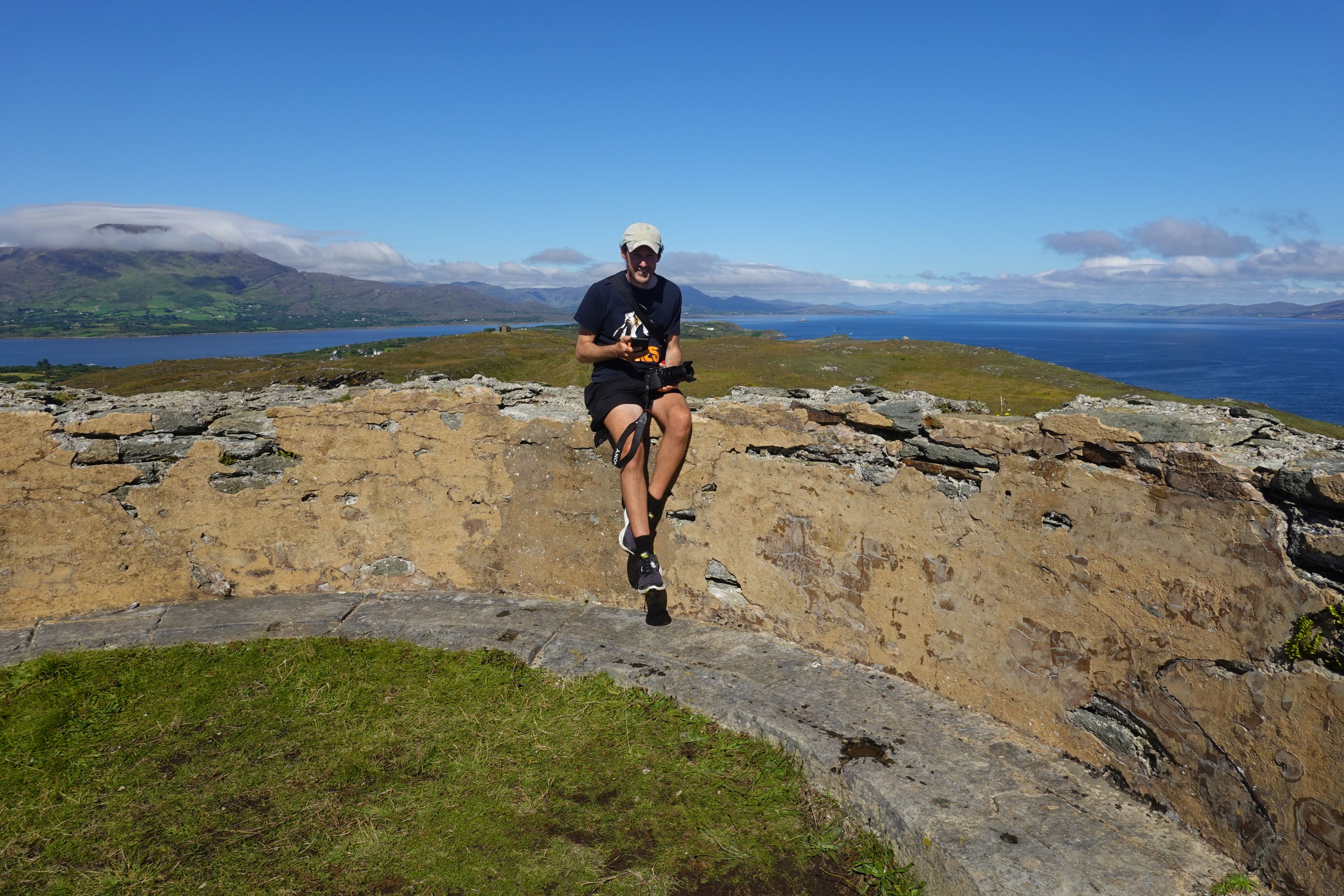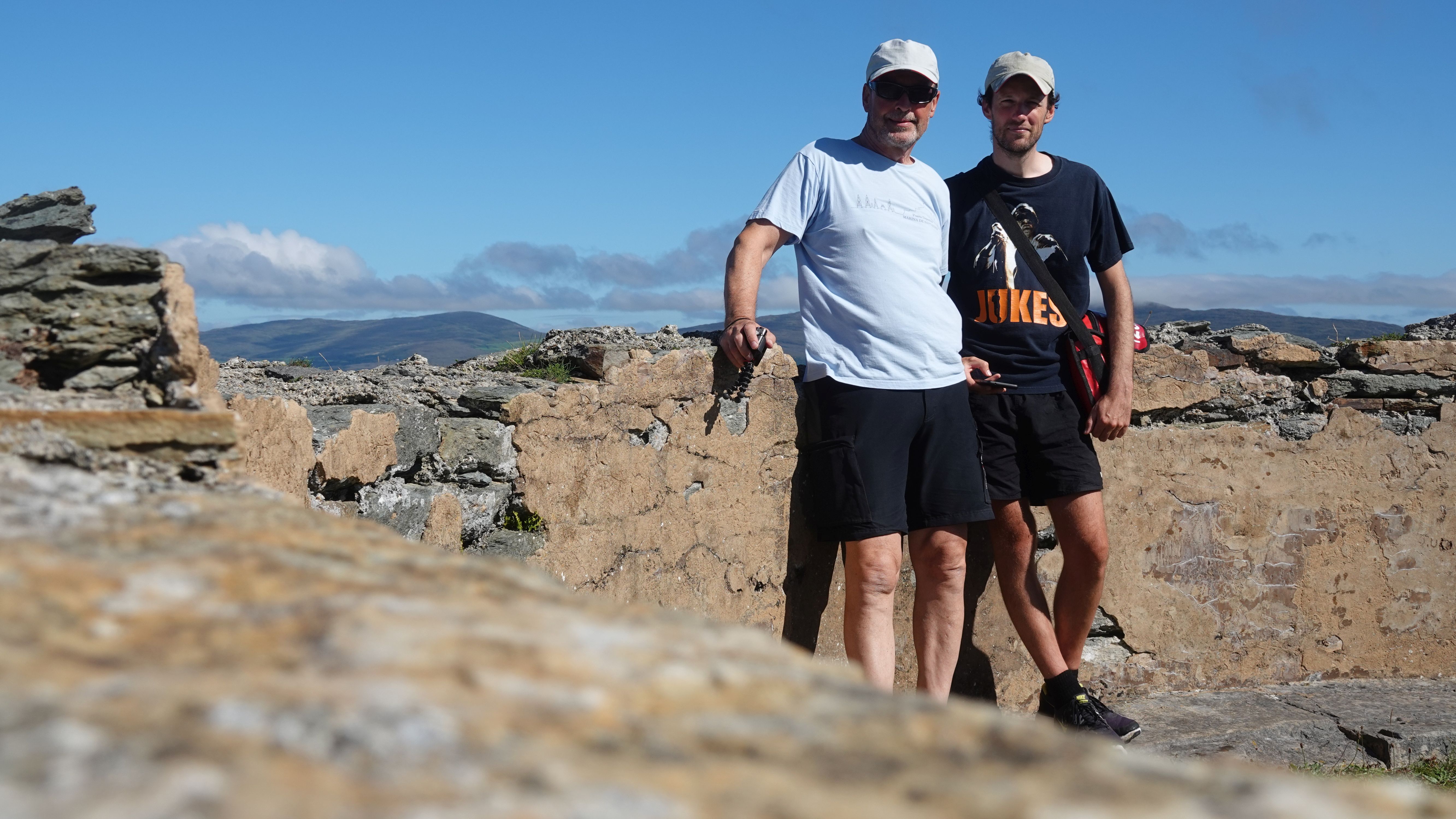 Mit den beiden Trocknern am Laufen begeben wir uns am Nachmittag auf eine kleine Wanderung zu einem der beiden Martello-Türme auf Bere Island. Martello-Türme sind wie kleine Festungen, die von den Briten als Verteidigung gegen Napoleon gebaut wurden. Mit eigener Regenwasserauffangeinrichtung konnten in einem solchen Turm die Verteidiger auch einer längeren Belagerung standhalten. Zwei der vier auf Bere Island gebauten Türme stehen noch und können besichtigt werden. Unser Turm liegt auf zweiundneunzig Metern höhe, etwa zwei Kilometer vom Hafen.