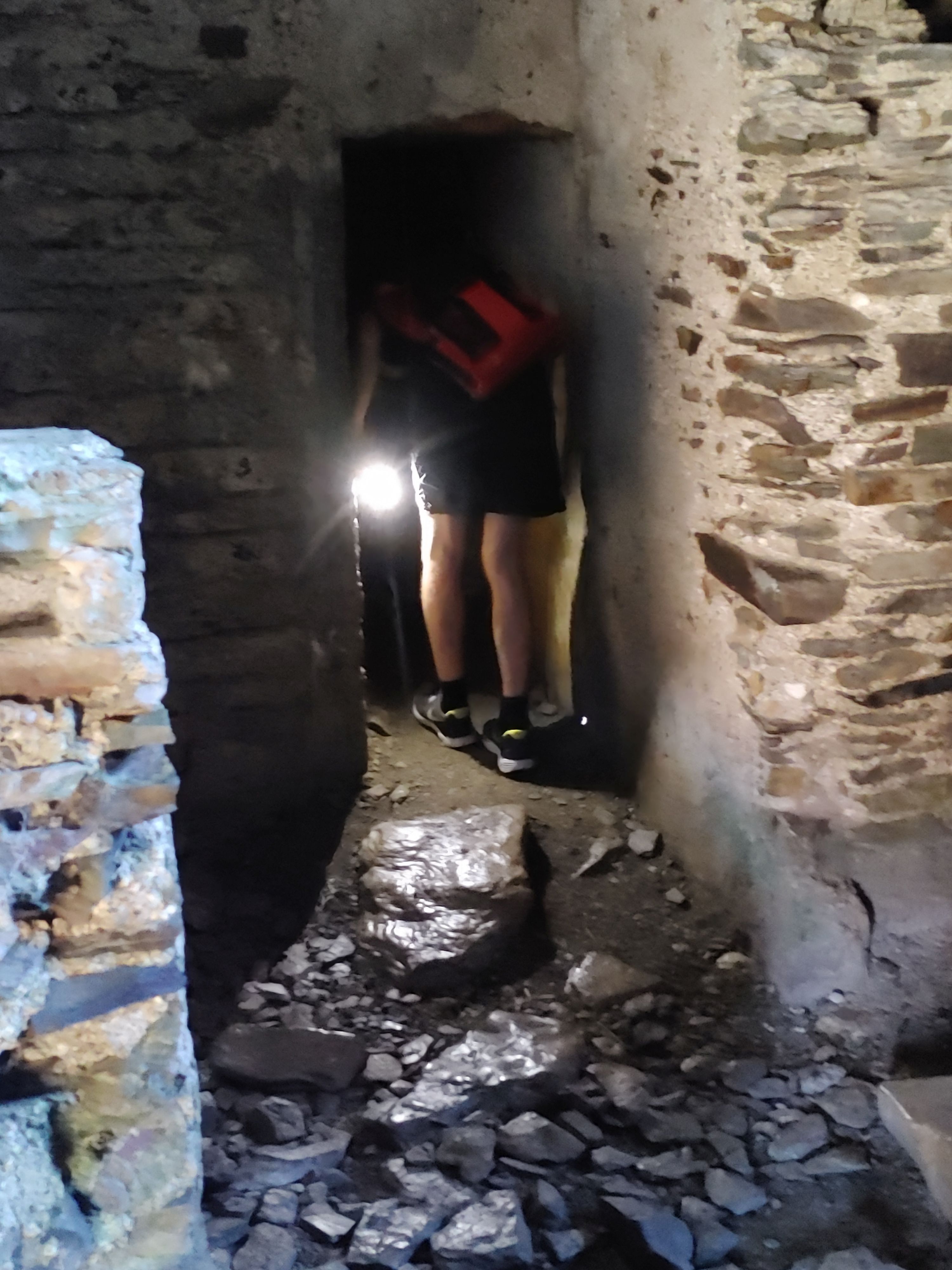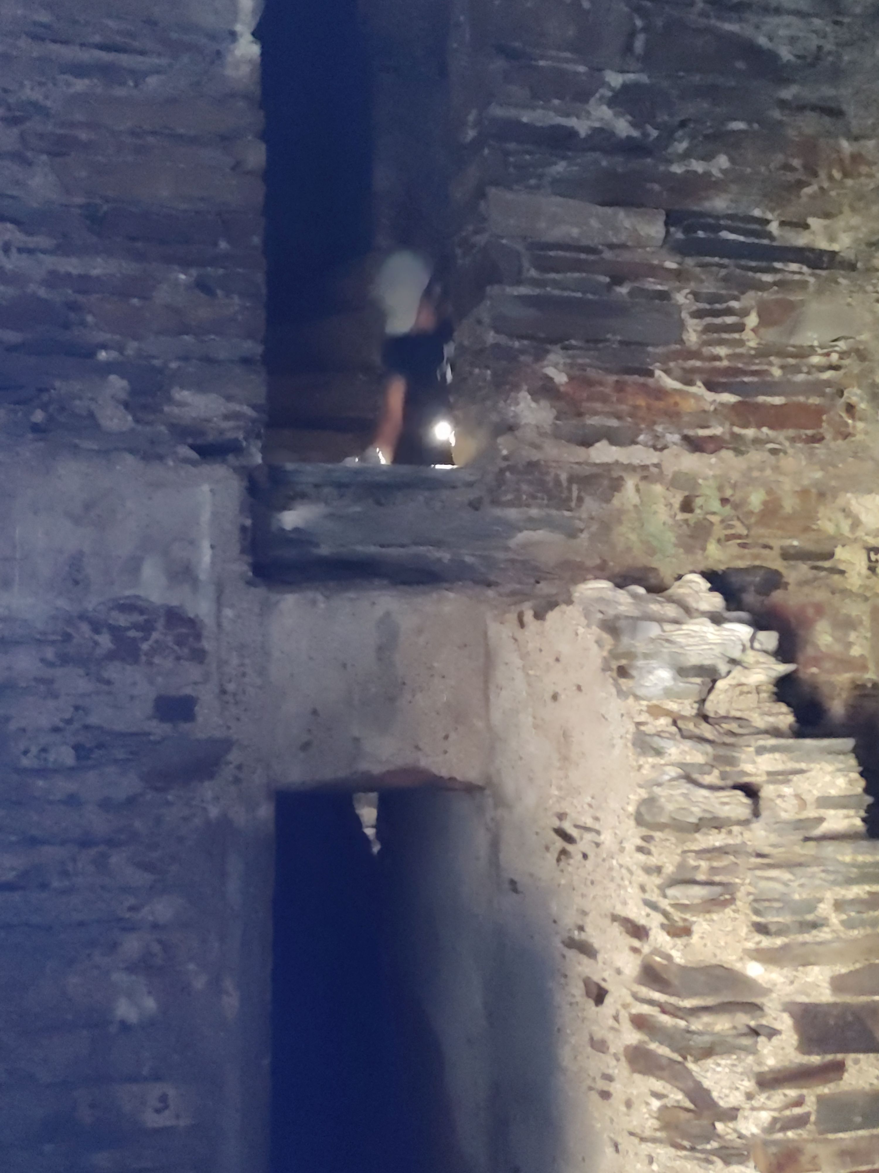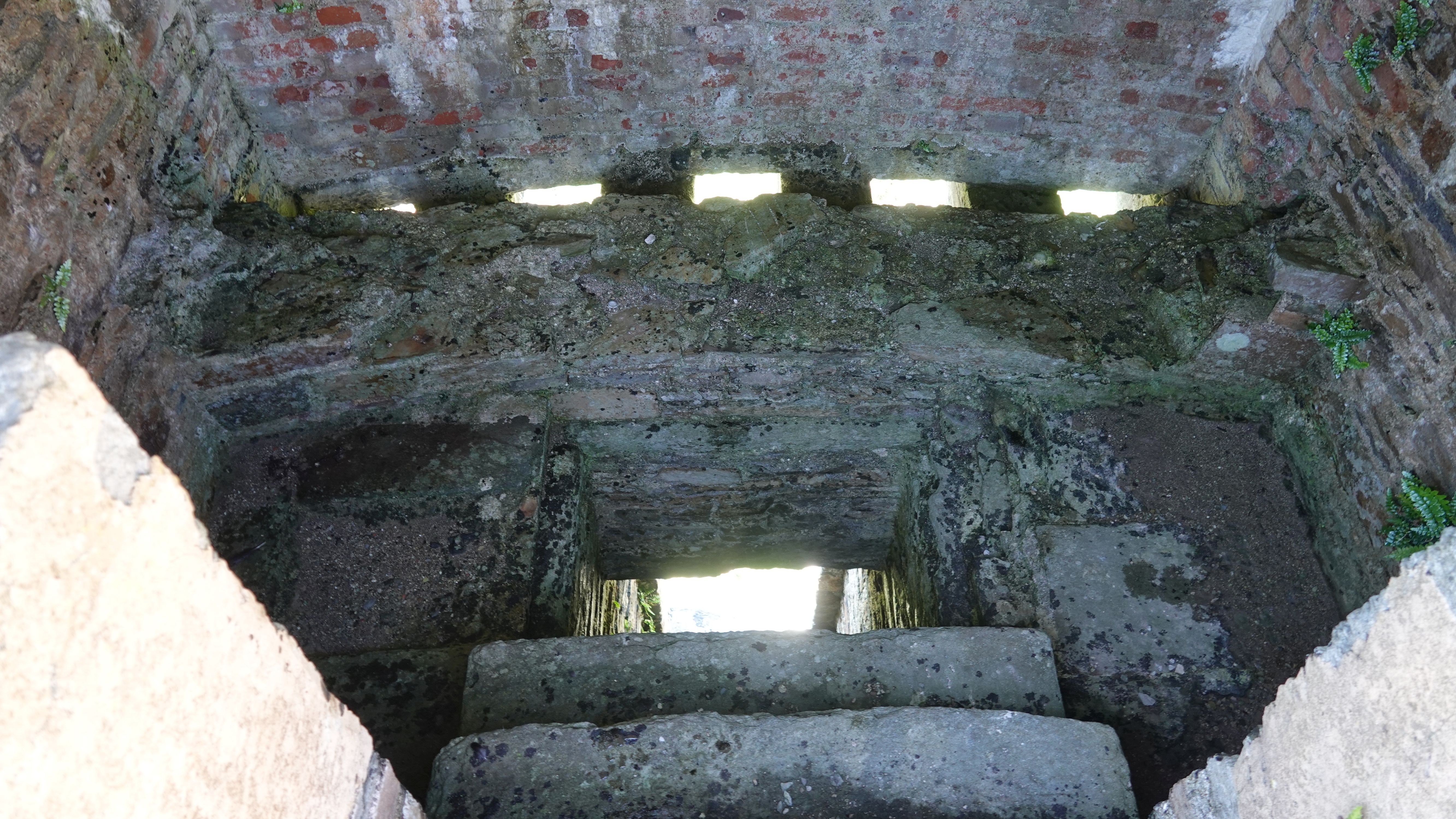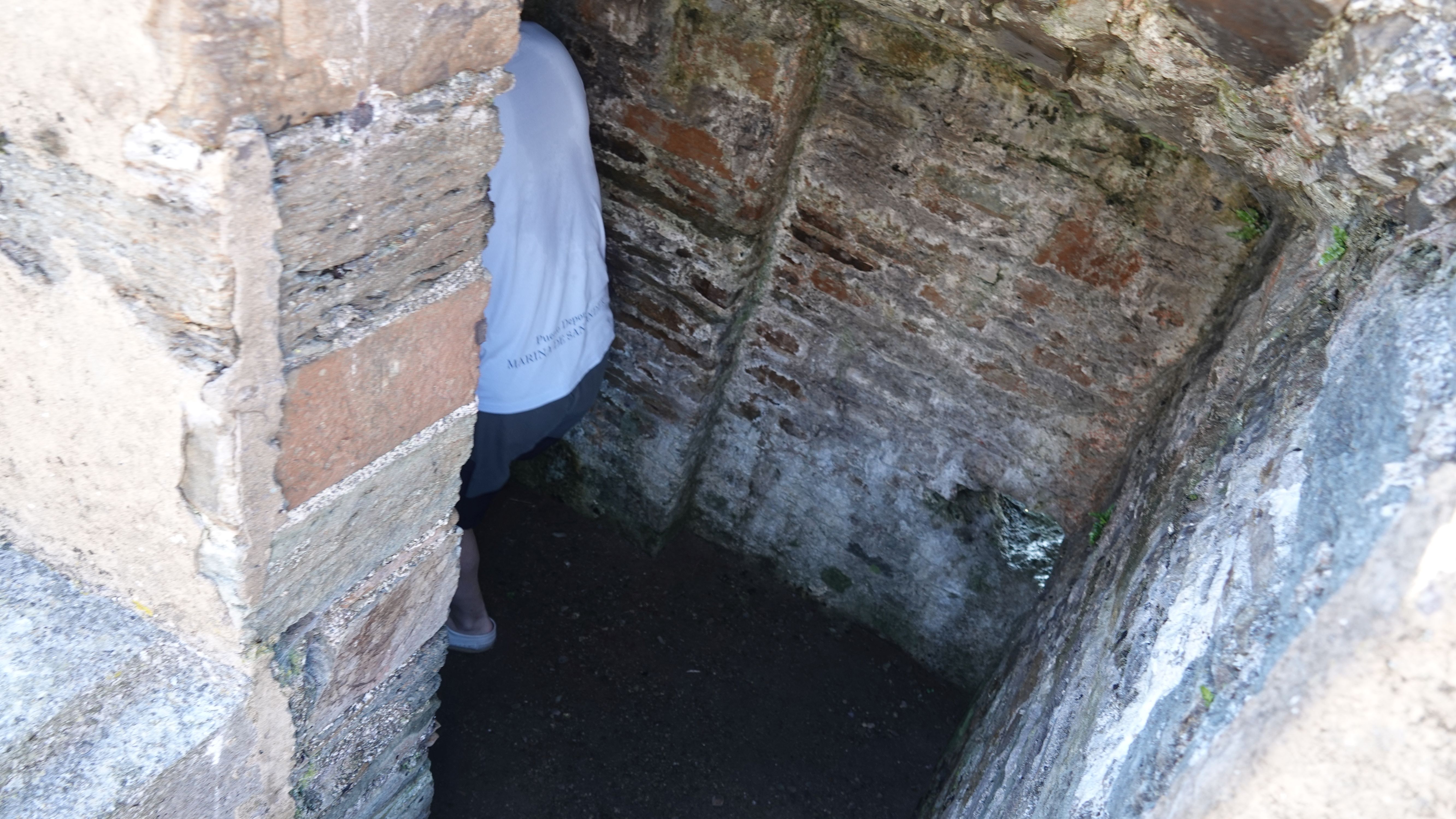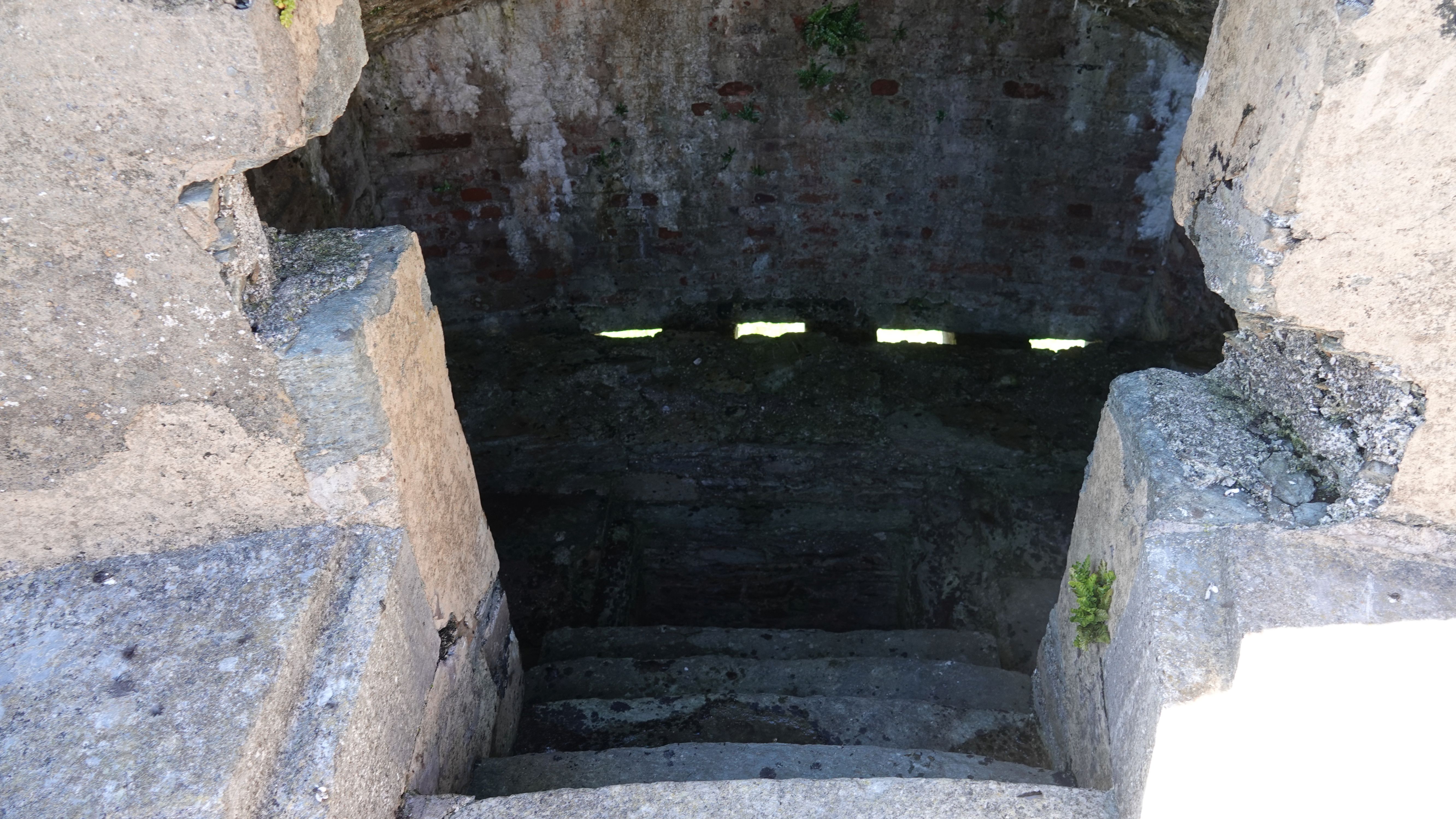 Unterwegs naschen wir immer wieder Brombeeren, die hier überall an den Straßen- und Wegesränden wachsen. Durch einen kleinen Spalt in der Mauer gelangen wir in den Martello-Turm. Dann geht es über eine enge, feuchte Wendeltreppe hinauf auf die Verteidigungsanlage.