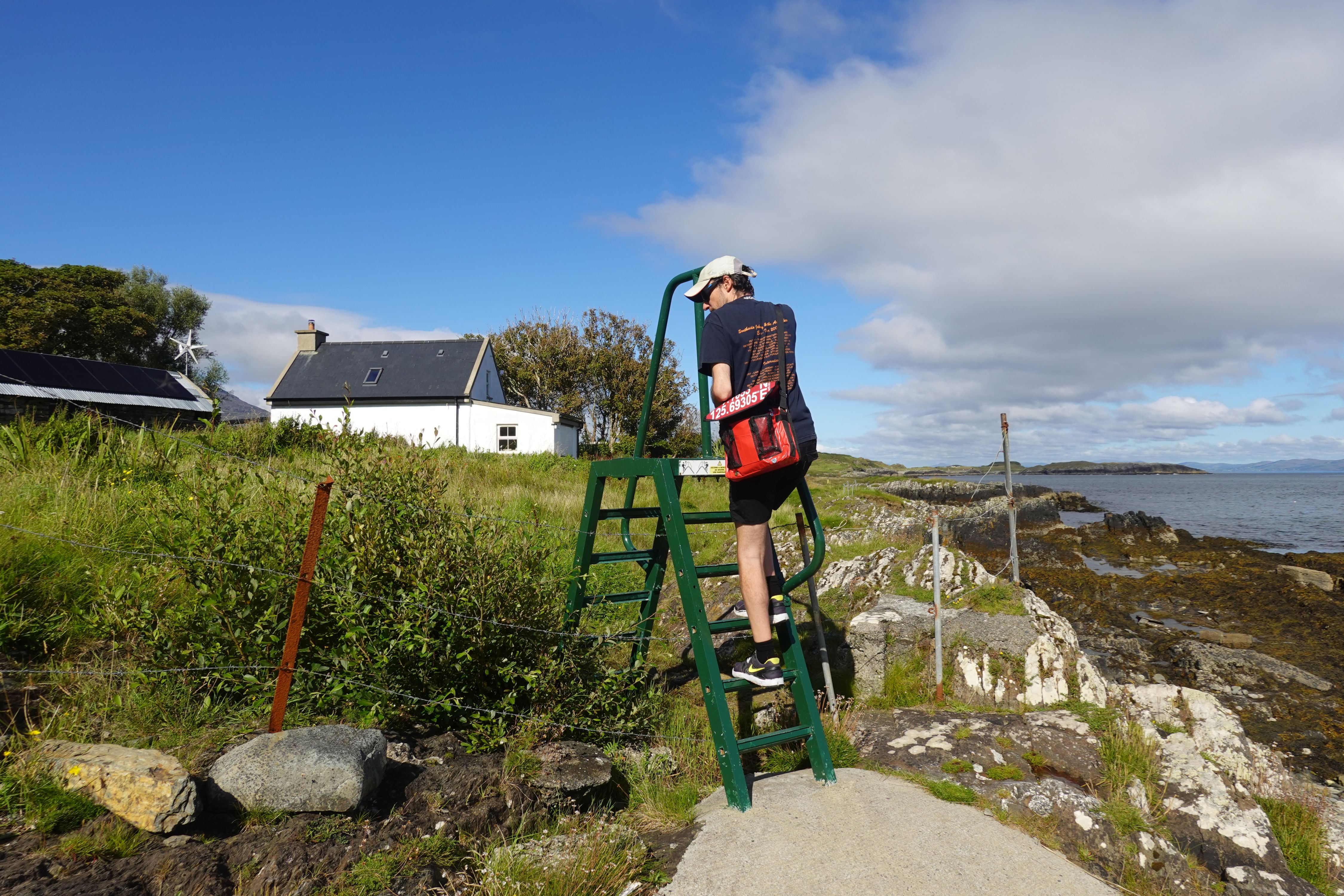 Montagfrüh bauen wir als erstes die gebrochen Schubstange von der Windpilot ab. Das geht zum Glück, ohne die gesamte Anlage abzubauen. Ich musste nur bis zu den Knien in das eiskalte Wasser um an die Schrauben anzukommen. Am Vormittag mache ich dann den Check-In bei Rachel. Bezahlung bei Abfahrt, aber jetzt sind nicht mehr nur "the Germans" auf ihrer Liste sondern haben einen Namen. Einen Schweißer finden wir vermutlich nicht auf der Insel, sollen aber mit Rachels Mann über Reparaturmöglichkeiten sprechen. Patrick bietet an die Schubstange zu einem Schweißer auf dem Festland zu bringen. Als wir ein paar Minuten später ins Dorf laufen steht er mit Schweißgerät in der Werkstatt. Die Kleinigkeit macht er dann wohl doch selbst.