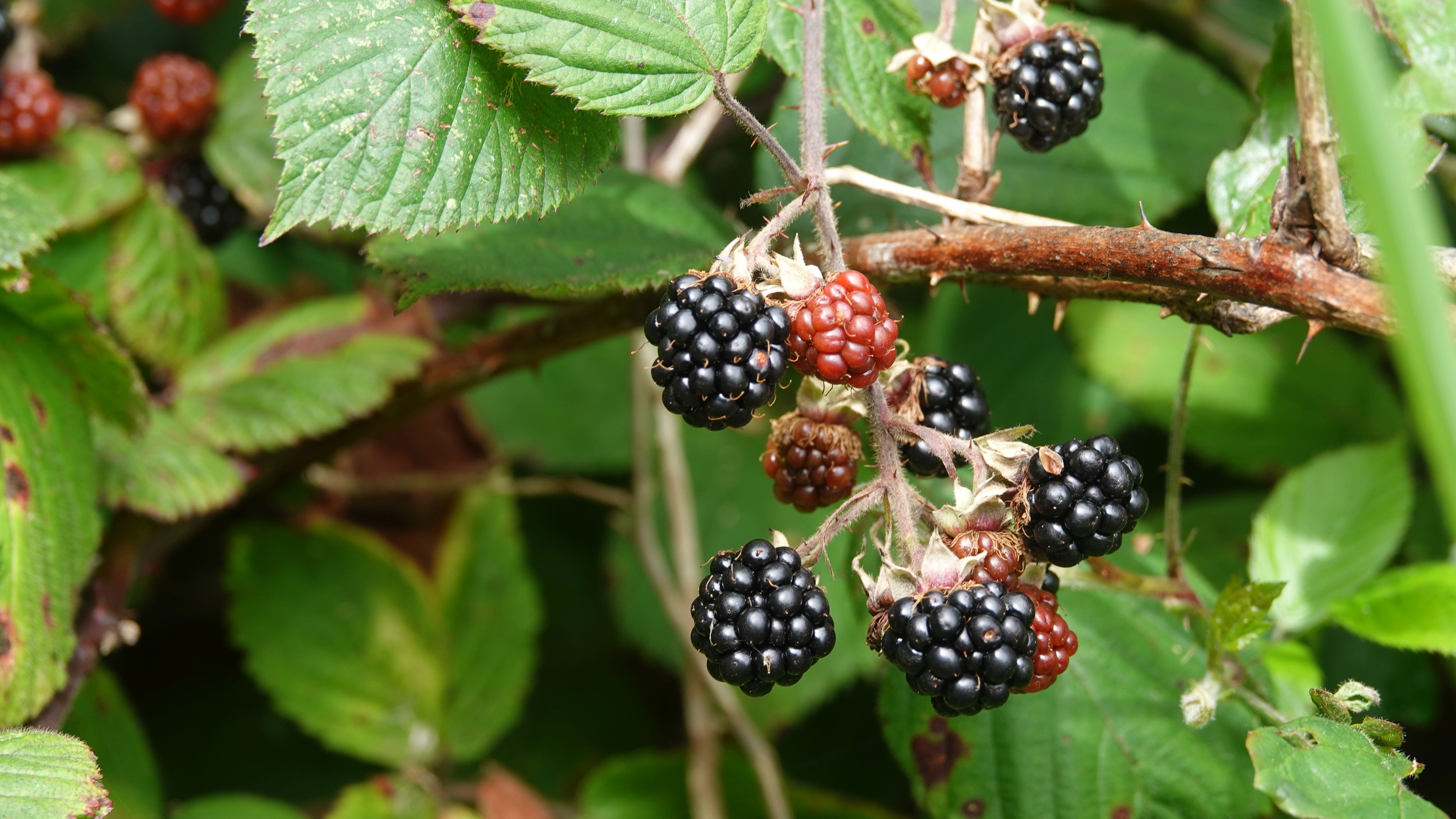 Heute laufen wir in der anderen Richtung die Küste entlang und füllen unterwegs zwei Tupperdosen mit Brombeeren.