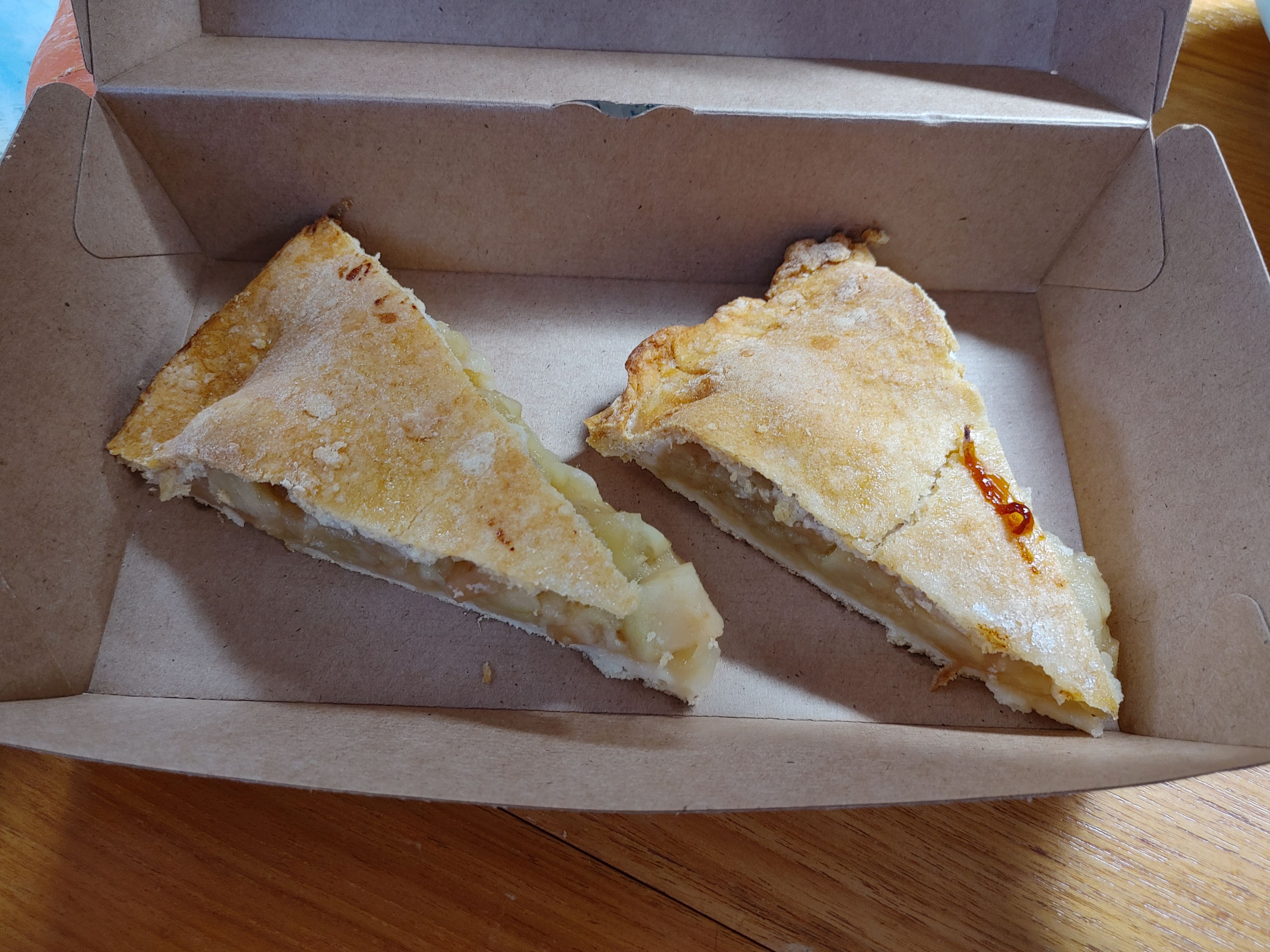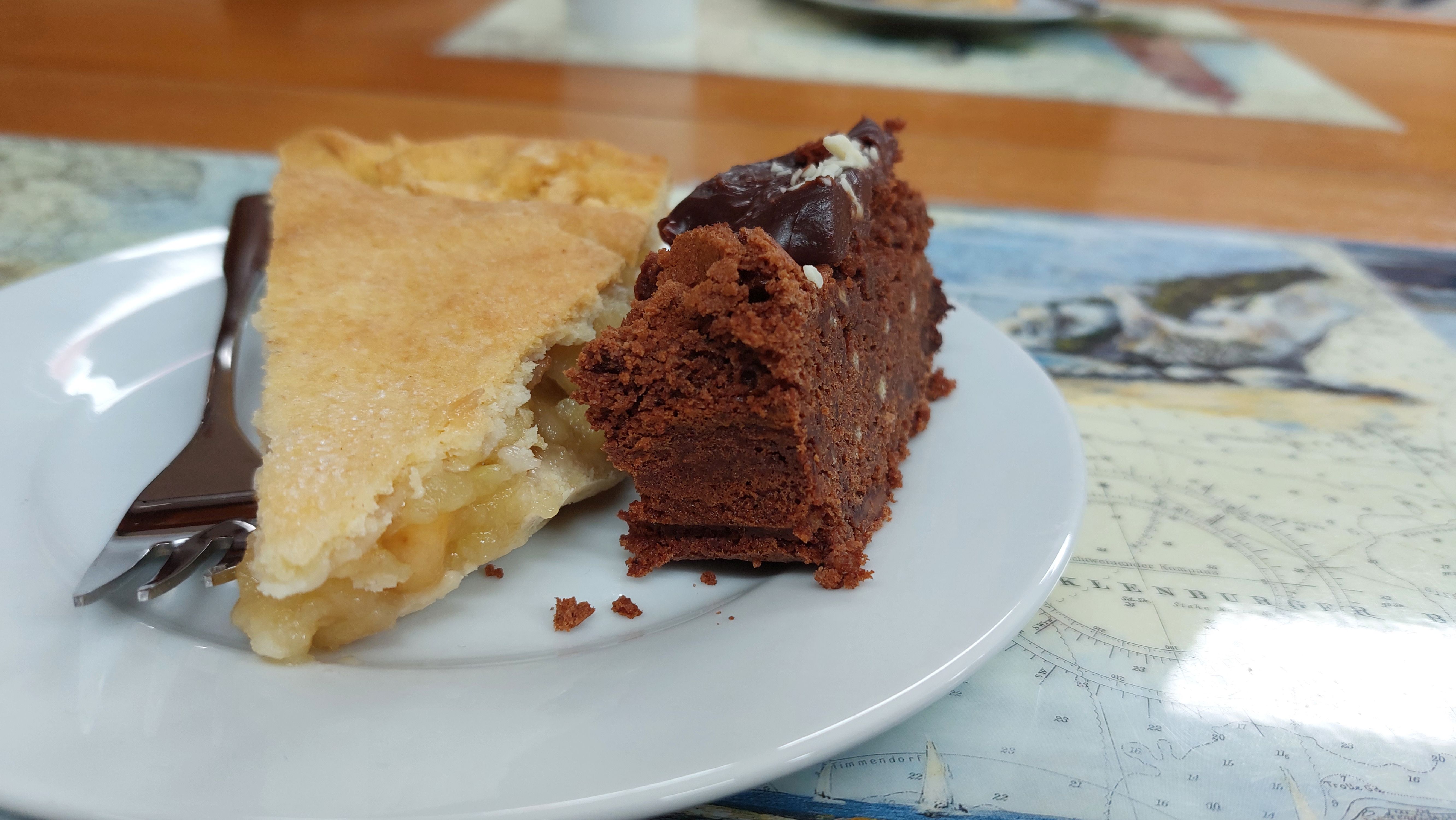 Wir holen nur ein paar Stücken Kuchen für heute Nachmittag. Frischen gedeckten Apfelkuchen und Rhabarber-Crumble. Zurück am Hafen steht Patrick bereits mit der reparierten Schubstange vorm Steg. Meine Frage nach Kosten winkt er nur ab.