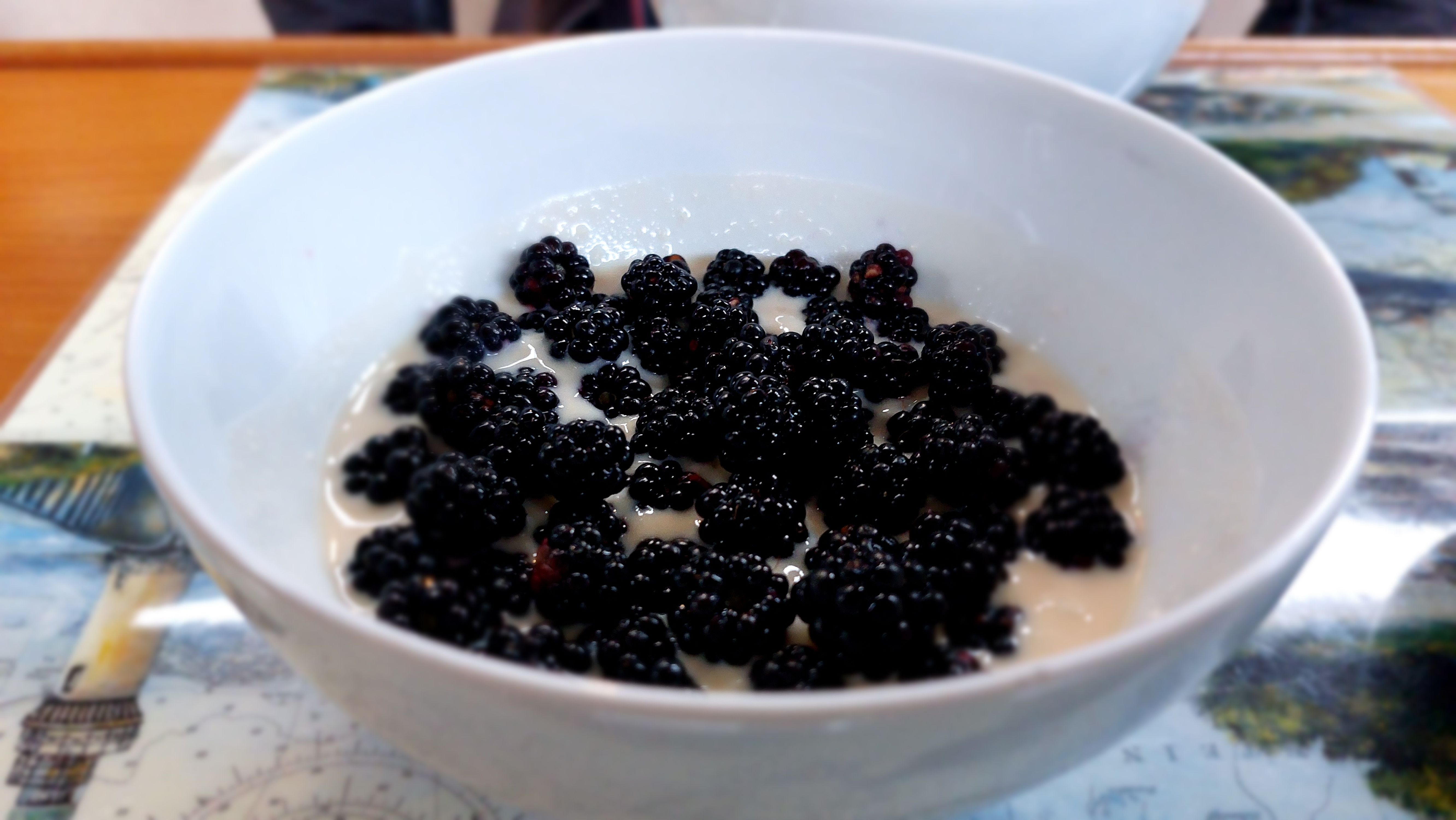 Nach Kuchen und Kaffee an Bord ziehe ich alleine noch einmal los und hab in zwanzig Minuten eine Schüssel mit Brombeeren gefüllt.