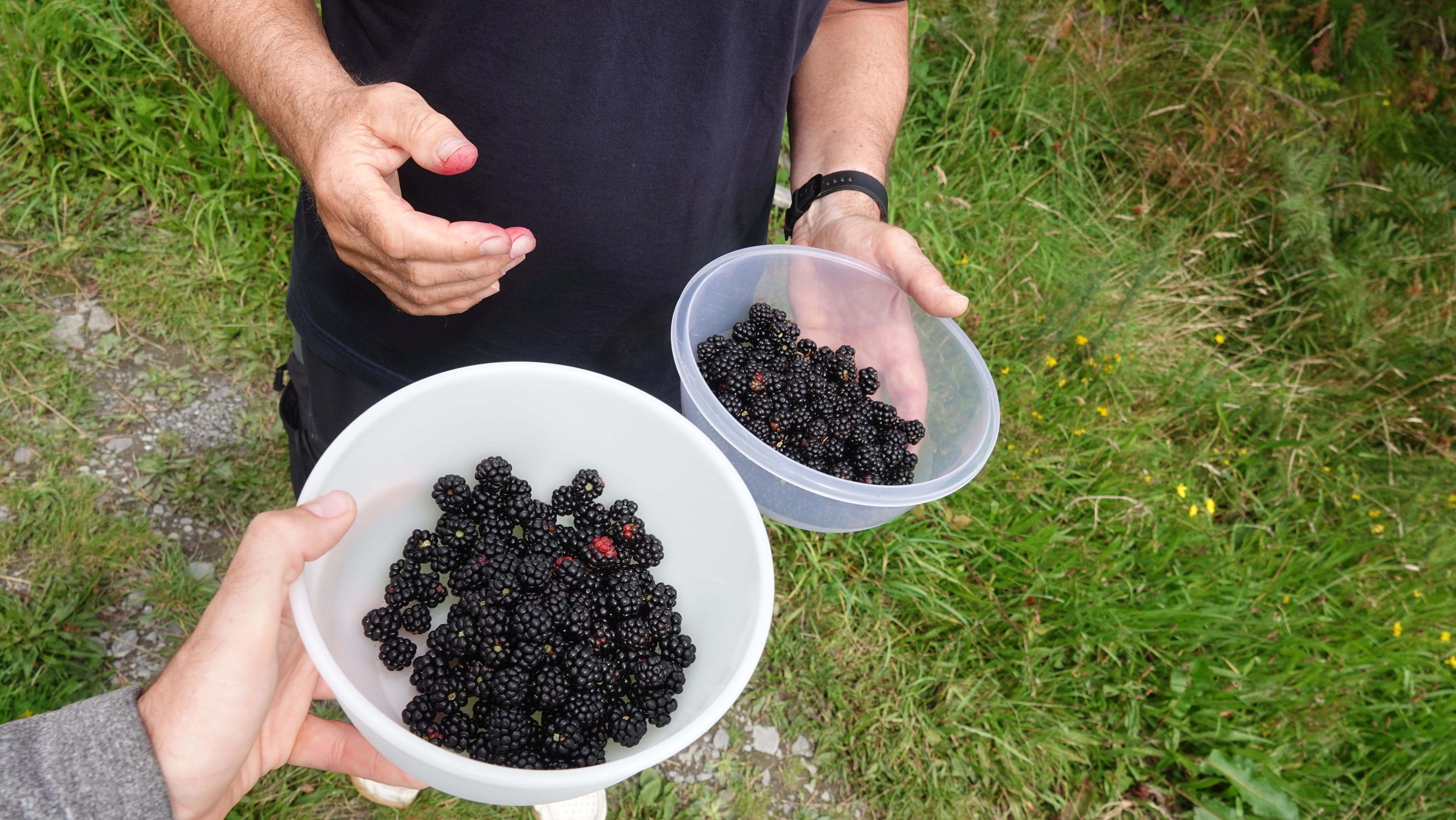 Unterwegs pflücken wir wieder Unmengen an Brombeeren.