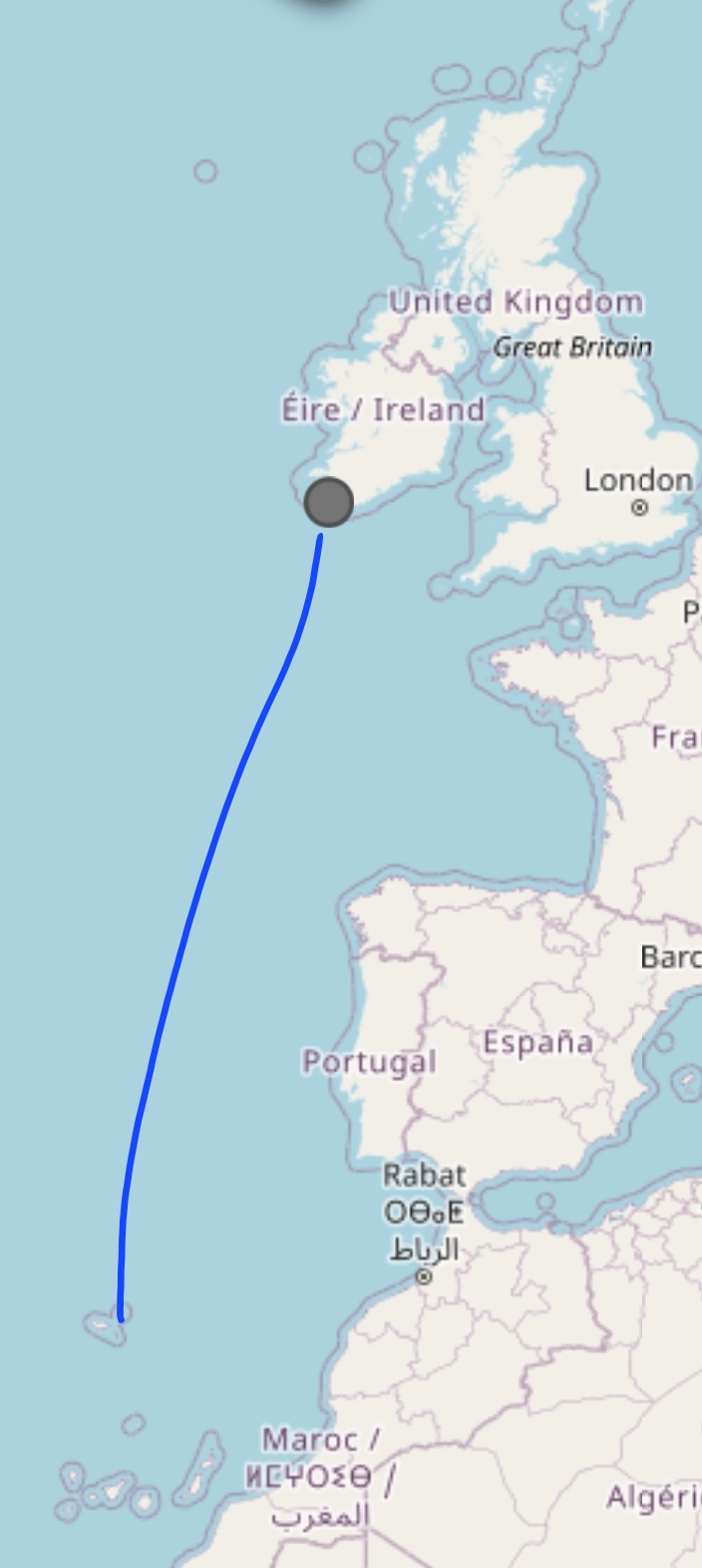 Nach zwei Wochen warten, Wetterkarten studieren, Routen durchrechnen und ein paar kurzen Schlägen in County Cork starten wir heute die lange Fahrt von Irland nach Porto Santo.