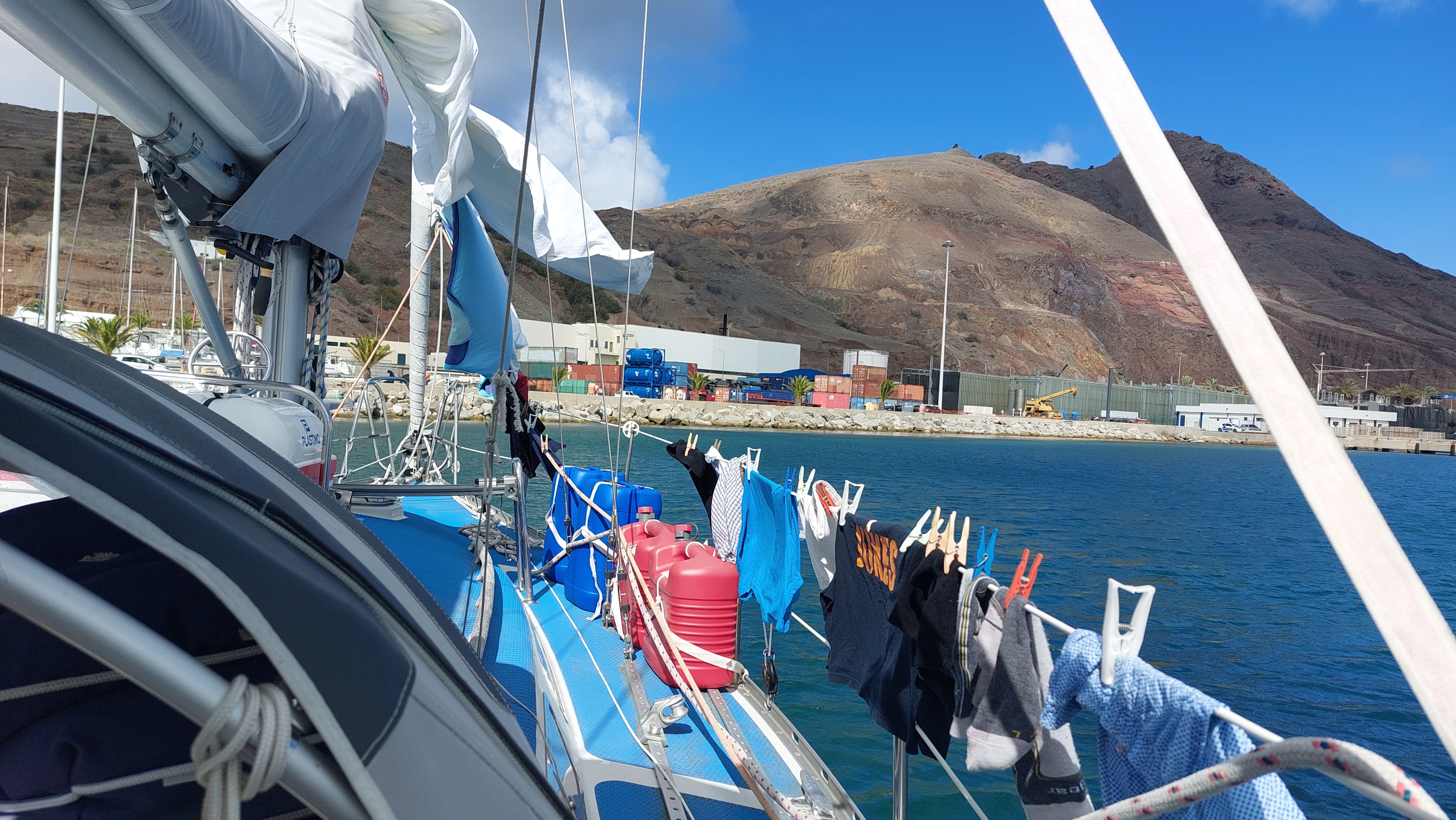 Es spielt sich bald eine Art Routine ein. Jeden zweiten Tag laufe ich nach einer Runde Schwimmen die zwei Kilometer nach Vila Baleira. Dort kaufe ich beim Pingo Doce einen frischen Laib Pão de Rio Maior, das köstliche portugiesische Landbrot, und was ich sonst so an frischem brauche. Zweihundert Meter weiter bei Nata Dourada gibt es Pasteis de Nata für den Nachmittag. Nach einem kleinen Bummel durch den Ort gönne ich mir häufig noch ein Bolo do Caco als Frühstück / Mittag und esse das am Strand. Zurück geht es den Strand entlang durch die Brandung. Je nach Tide schleppe ich meinen Rucksack dabei schon mal durch hüfthohes Wasser und erreiche den Hafen klitschnass und total versandet. Eine kurze Stegdusche, um den Sand abzuspülen bevor es ins Dinghy und zurück zur Lua geht. Nachdem alles ausgepackt und verstaut ist steht eine weitere Runde im Wasser an um den Schweiß abzuspülen.