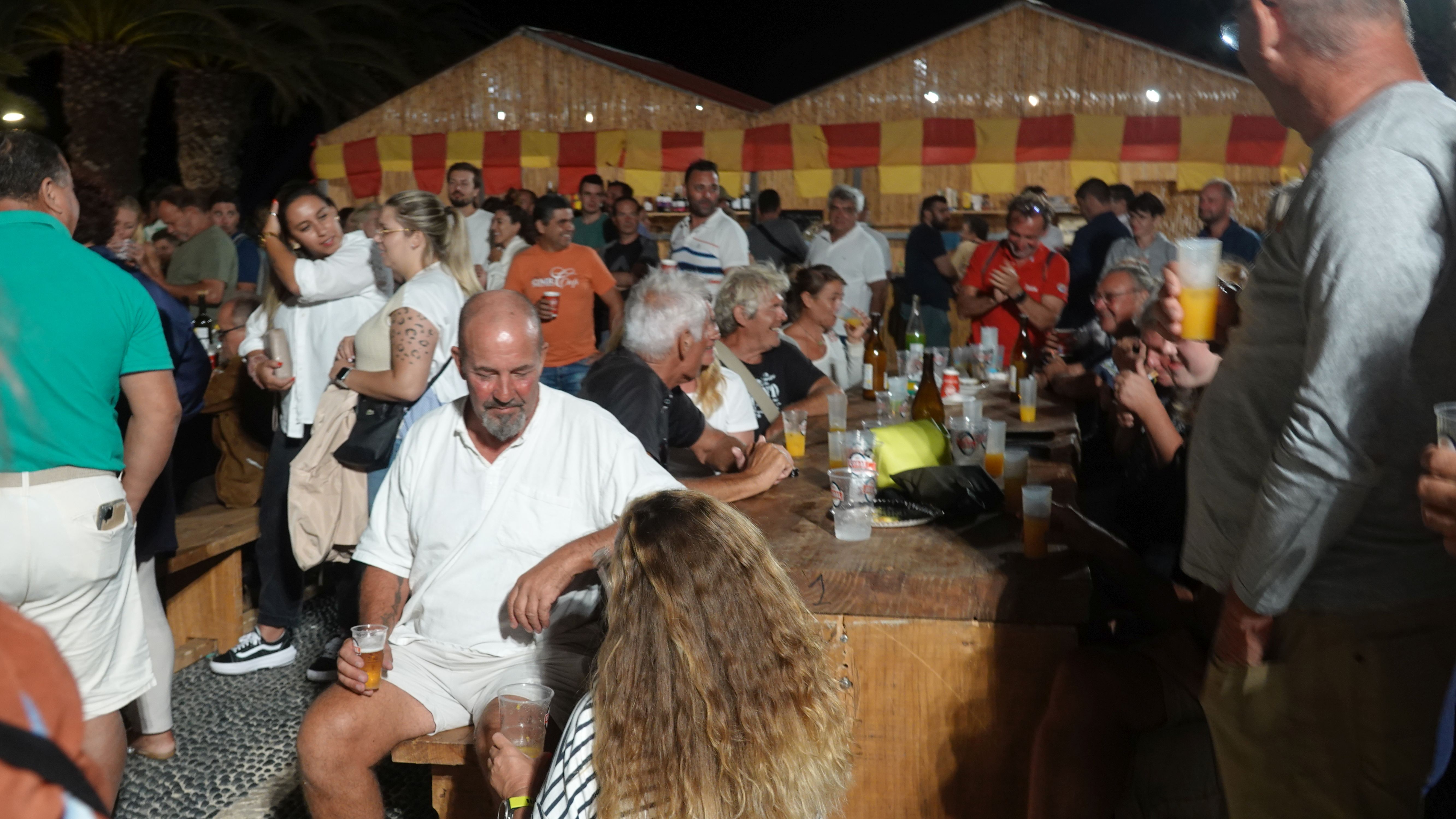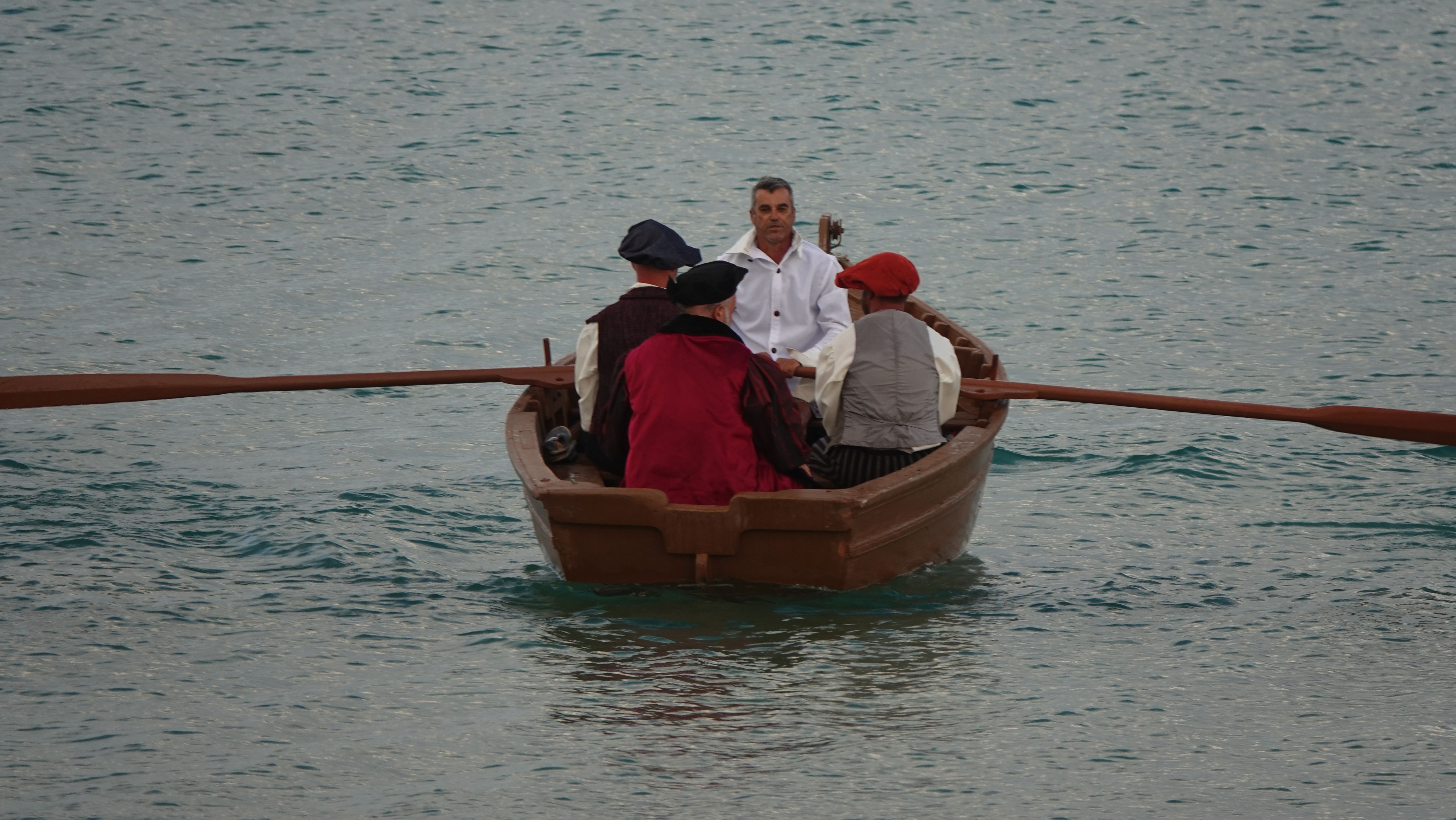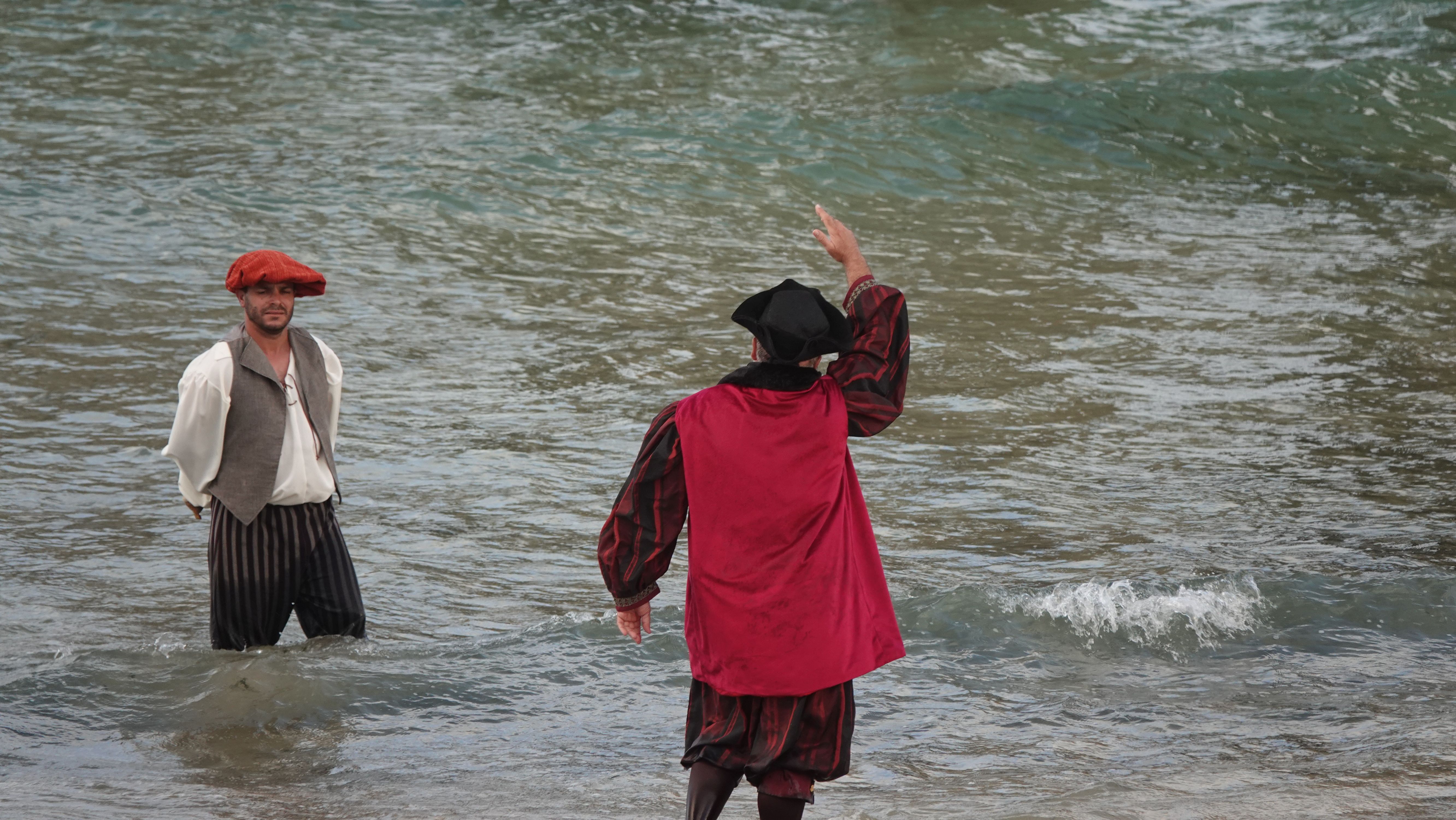 Nach einer kurzen Szene am Strand ziehen die Darsteller in einer Prozession ins Dorf. Wir folgen und nehmen einen Seglertisch auf dem Dorfplatz in Beschlag.