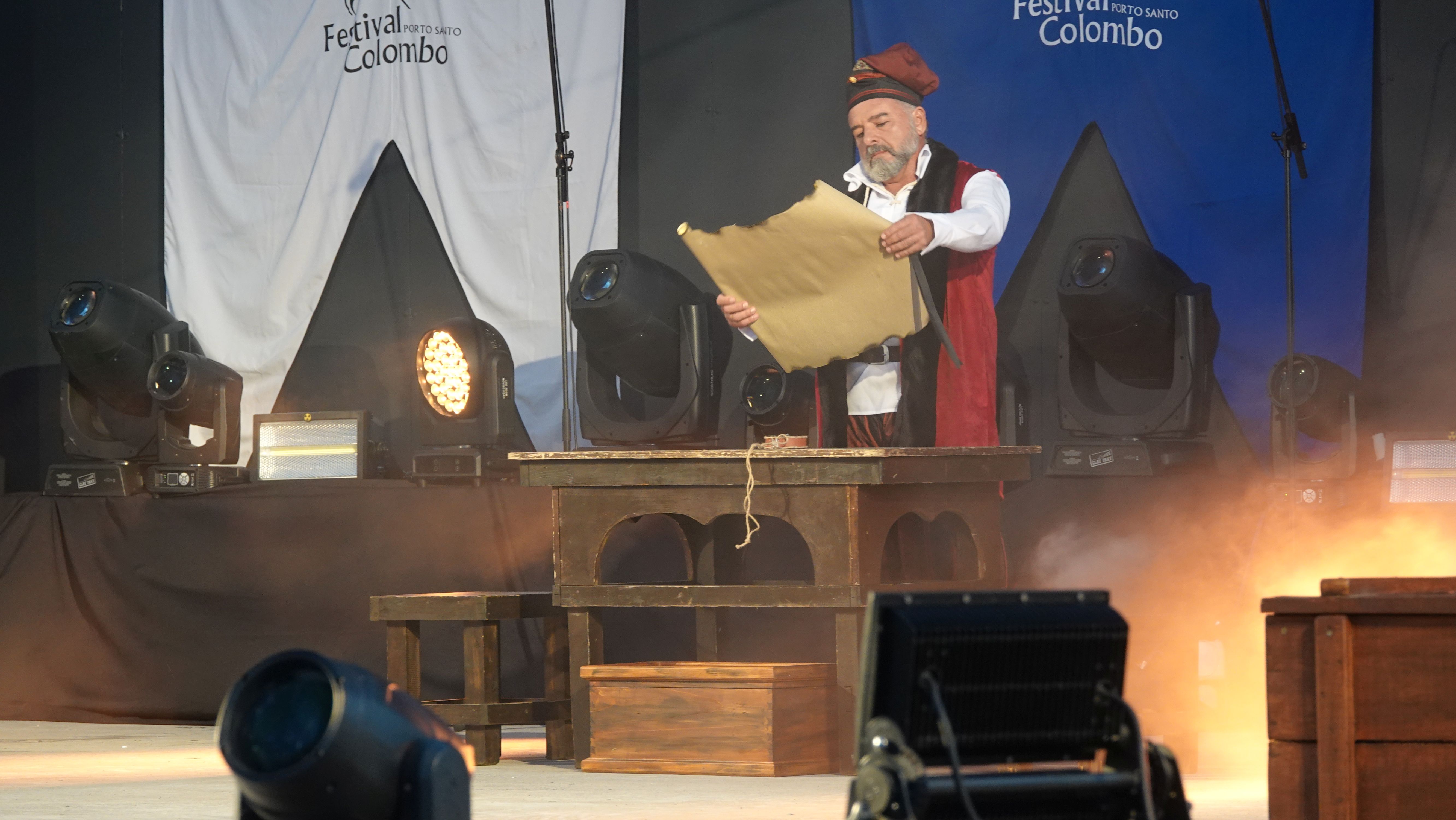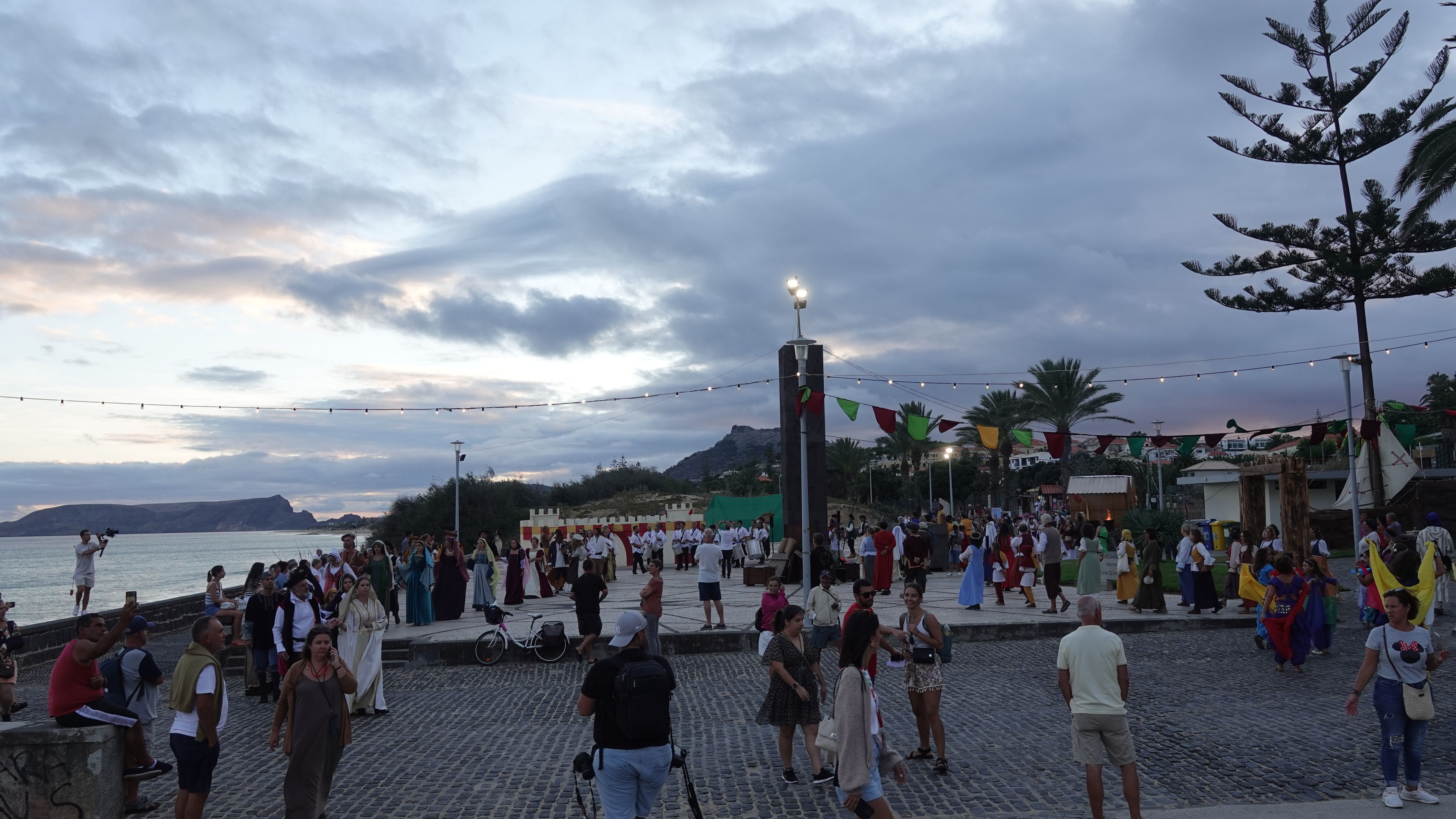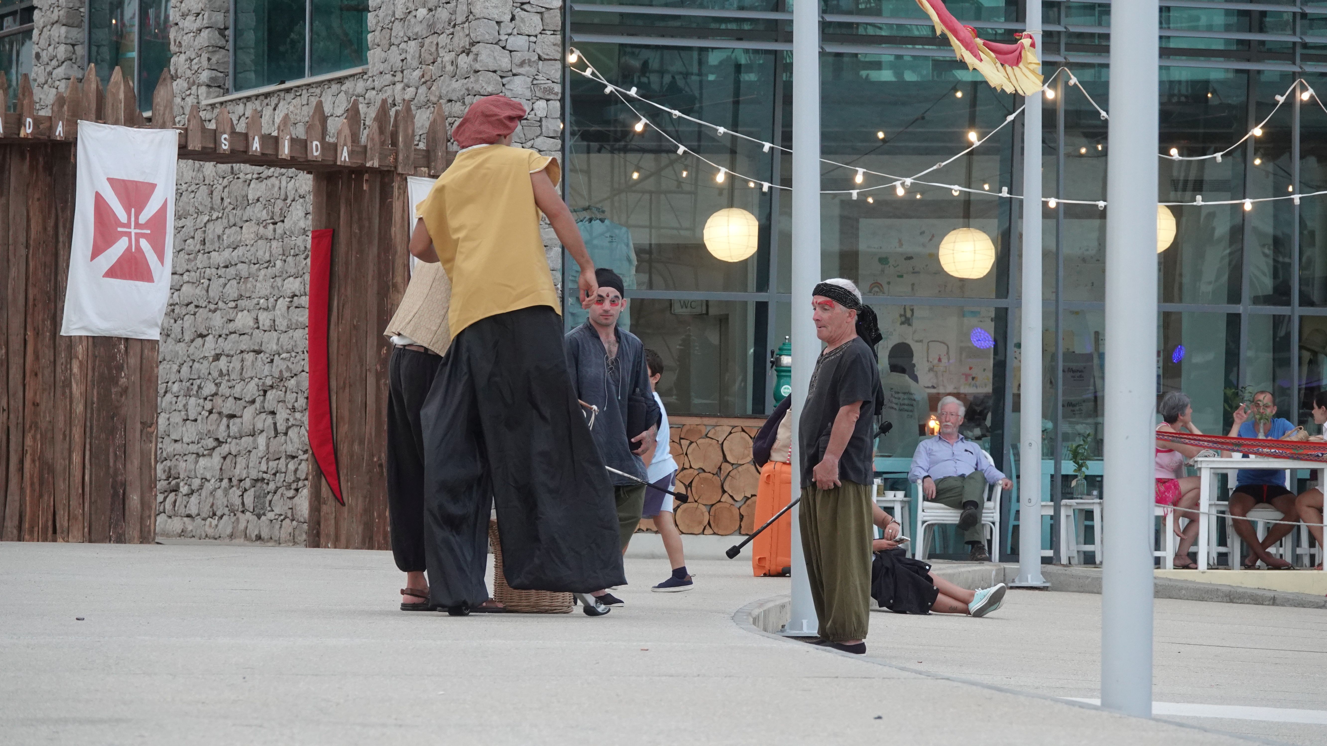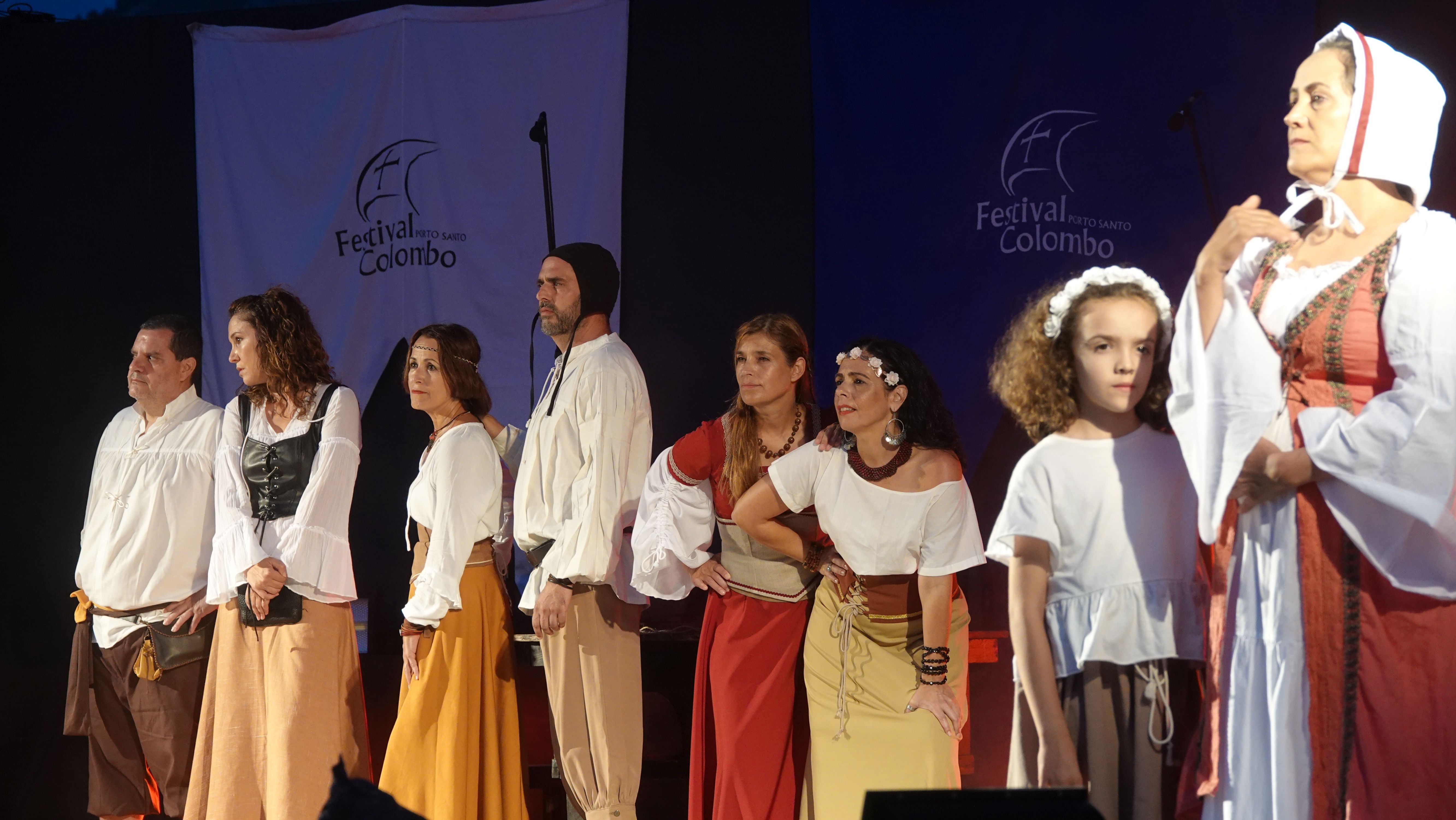Es beginnt mit einer Prozession durch das Dorfzentrum herunter zur Seebrücke und der Bühne an der Promenade. Dort wird ein Theaterstück Columbus's Legacy aufgeführt. Es ist wie eine Reihe lebendiger Gemälde. Die Darsteller nehmen feste Posen auf der Bühne ein, während aus dem Off der Dialog gesprochen wird. Das ganze auf Portugiesisch mit kurzen englischen Einleitungen vor den Akten. Soweit ich folgen kann, ist das Stück eine Reflektion des alternden Kolumbus über sein Leben als Entdecker und die nicht unbedingt positiven Auswirkungen seiner Taten auf politischer Ebene, auf die Völker, die er "entdeckt" und erobert hat, und auf sein Familienleben.