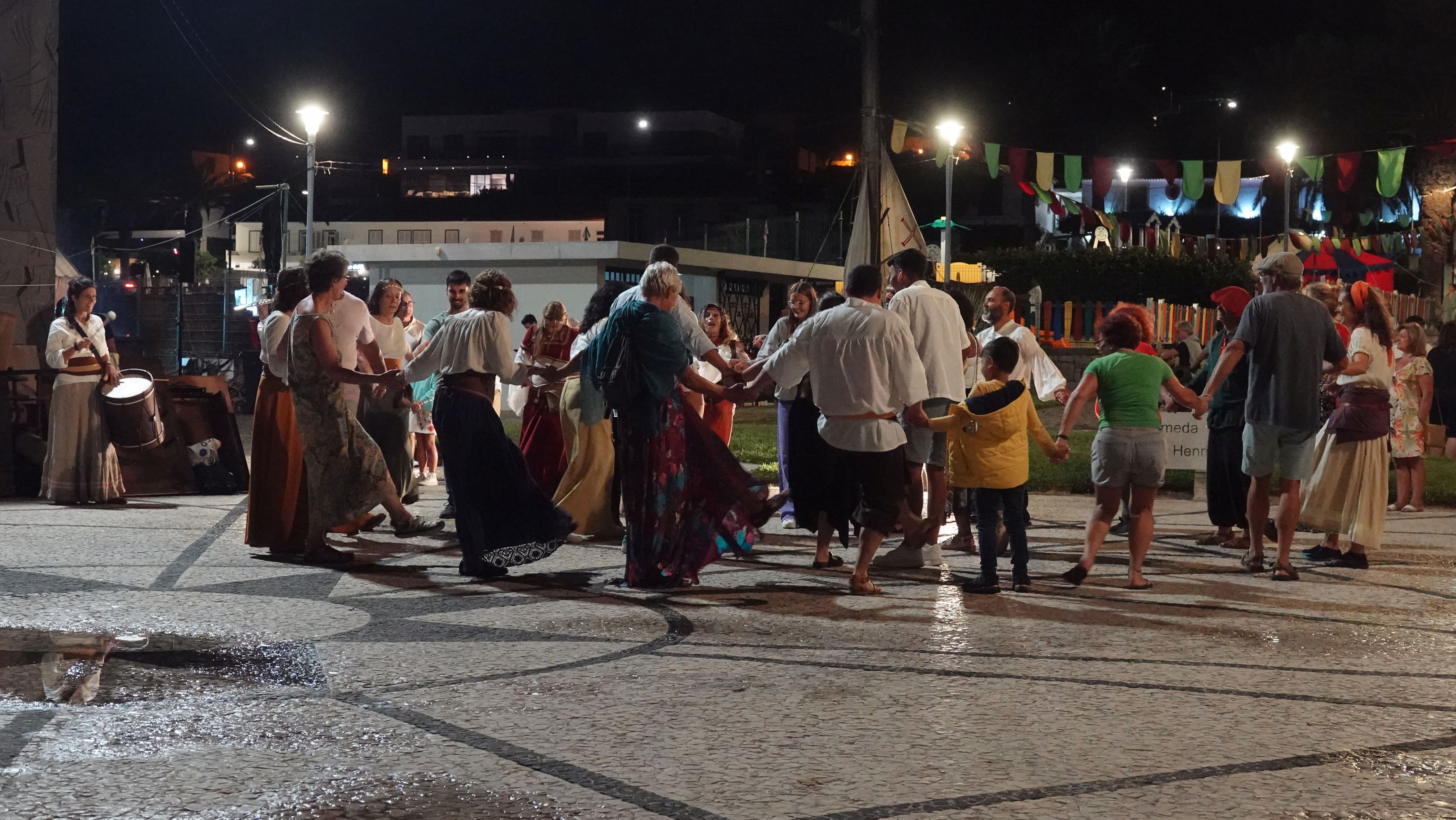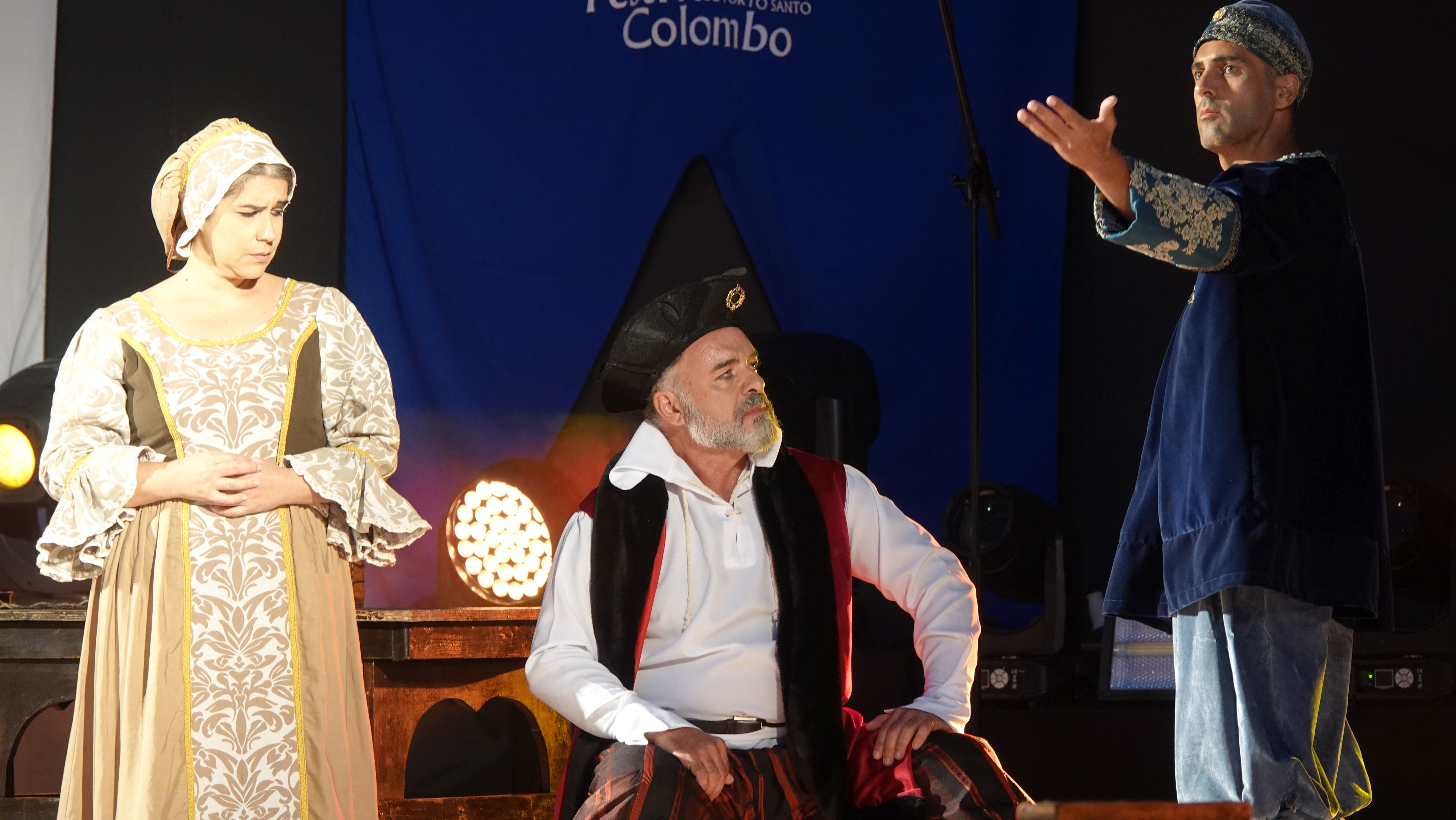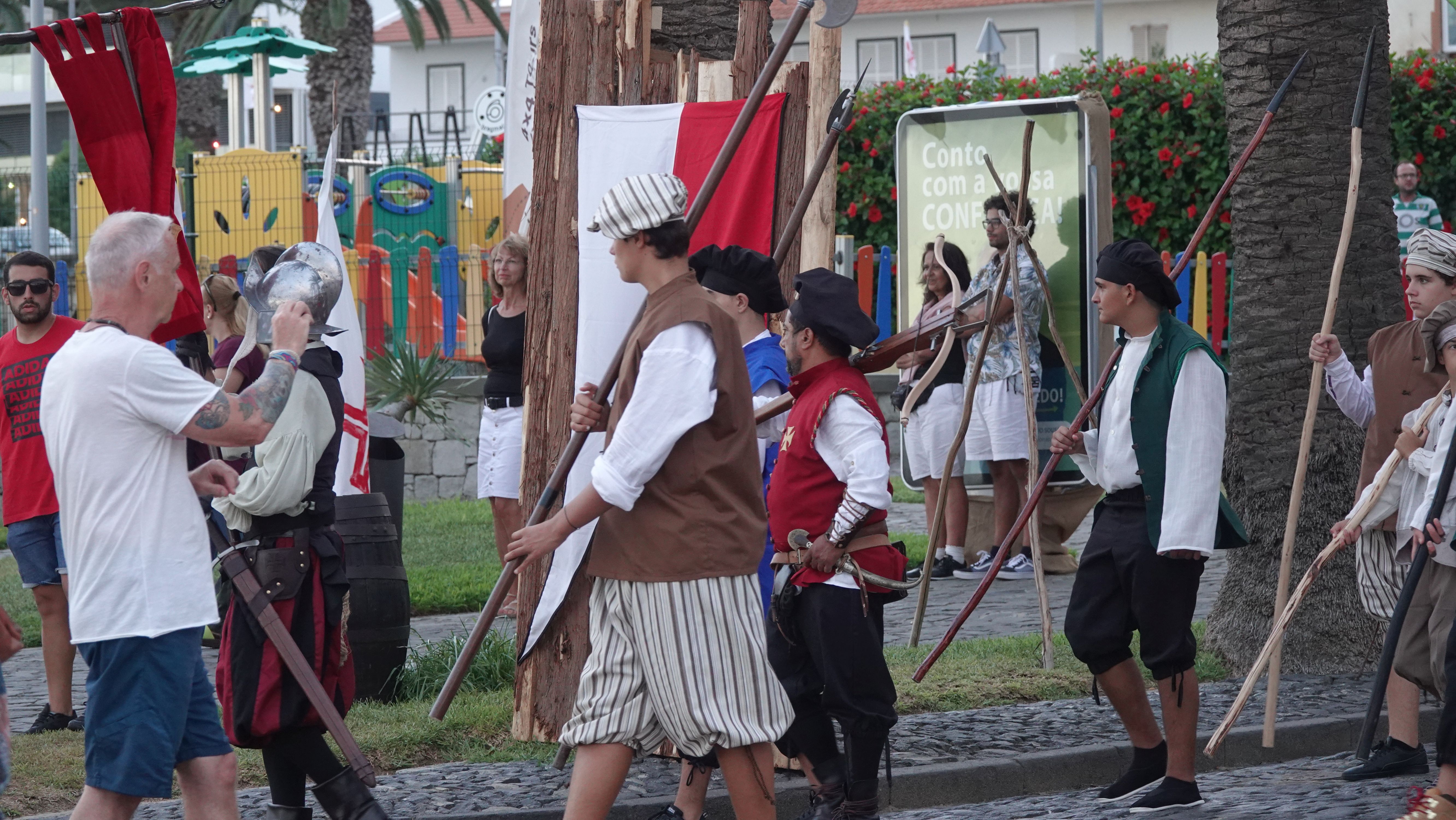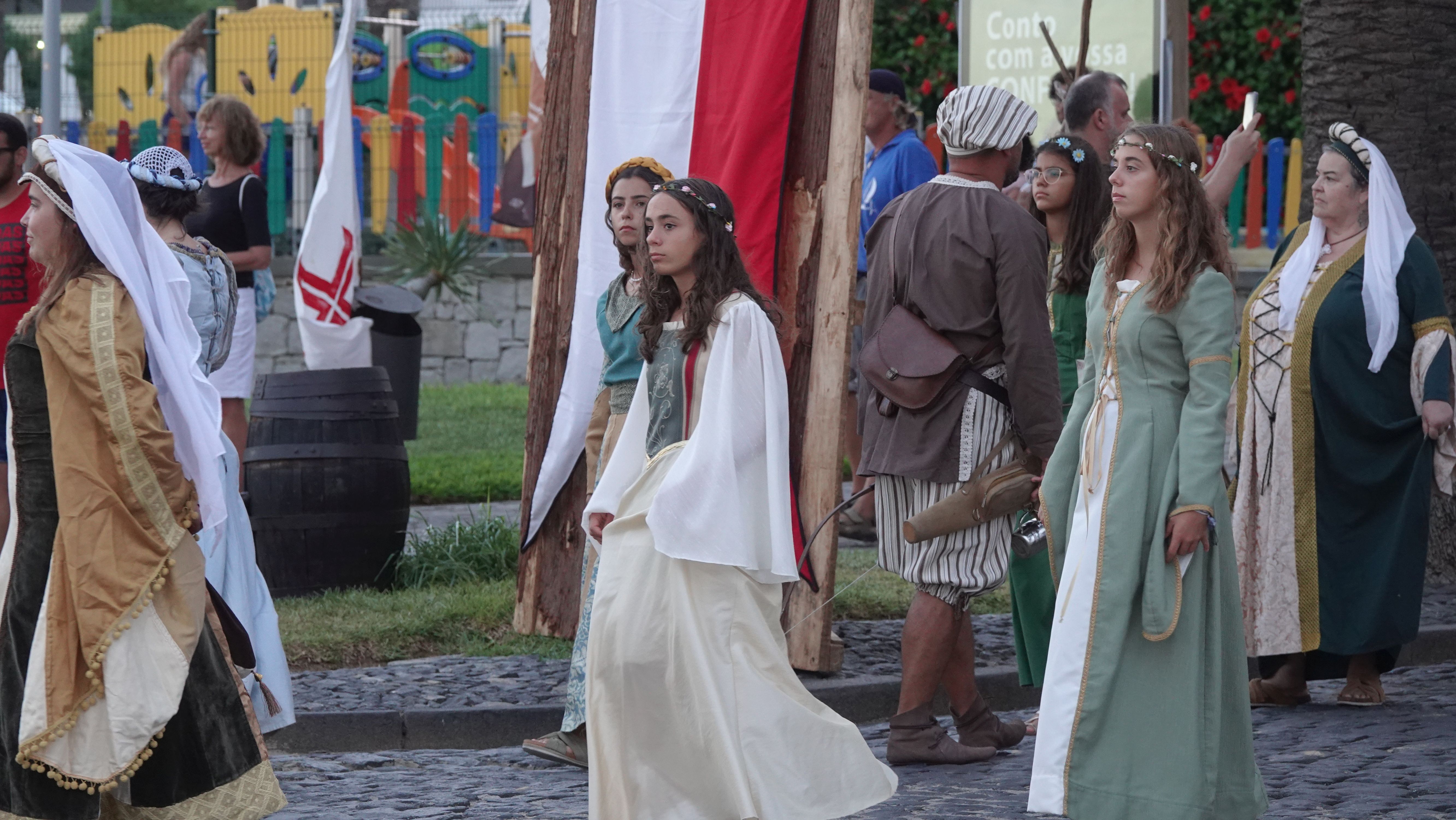 Es beginnt mit einer Prozession durch das Dorfzentrum herunter zur Seebrücke und der Bühne an der Promenade. Dort wird ein Theaterstück Columbus's Legacy aufgeführt. Es ist wie eine Reihe lebendiger Gemälde. Die Darsteller nehmen feste Posen auf der Bühne ein, während aus dem Off der Dialog gesprochen wird. Das ganze auf Portugiesisch mit kurzen englischen Einleitungen vor den Akten. Soweit ich folgen kann, ist das Stück eine Reflektion des alternden Kolumbus über sein Leben als Entdecker und die nicht unbedingt positiven Auswirkungen seiner Taten auf politischer Ebene, auf die Völker, die er "entdeckt" und erobert hat, und auf sein Familienleben.