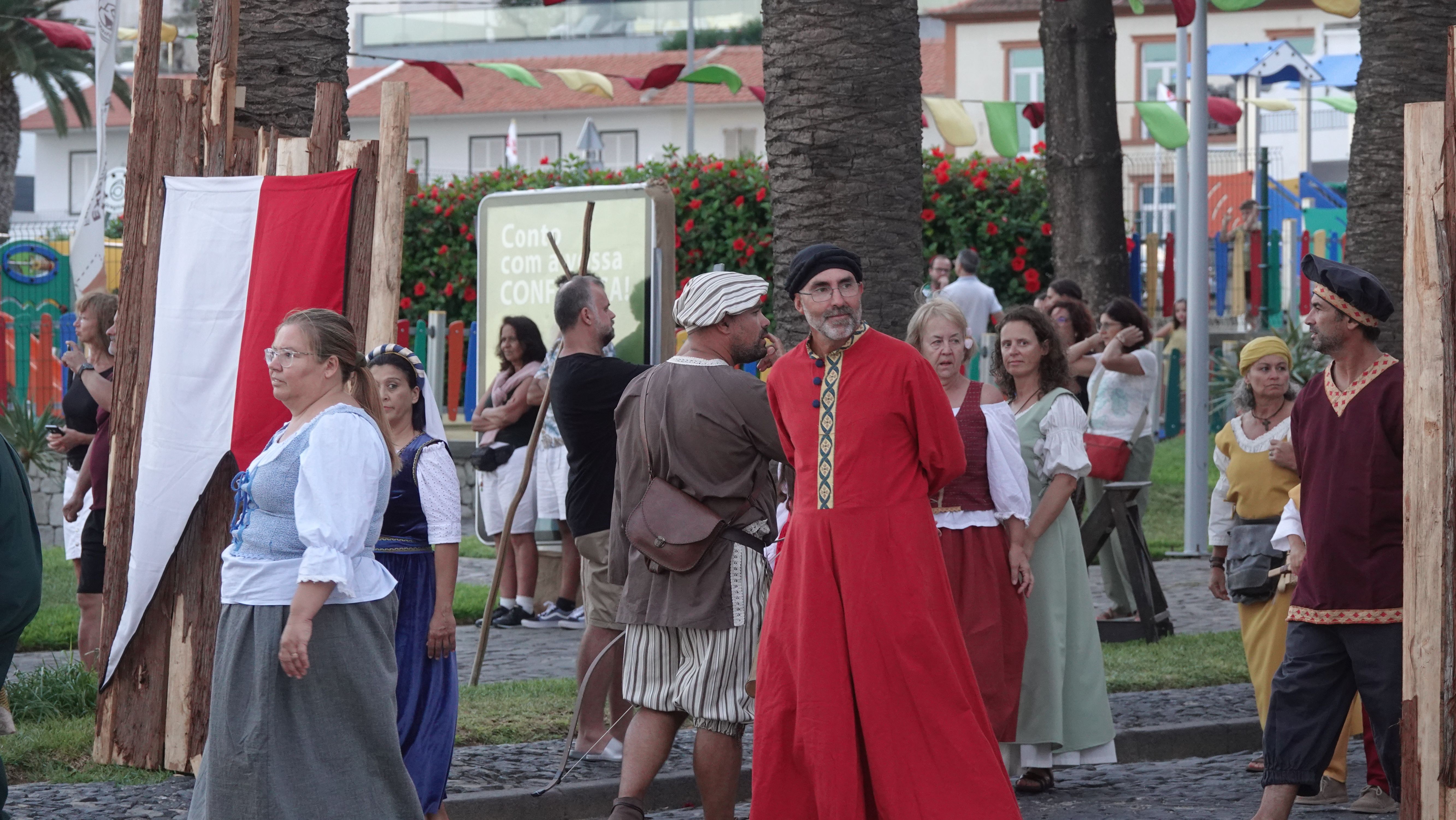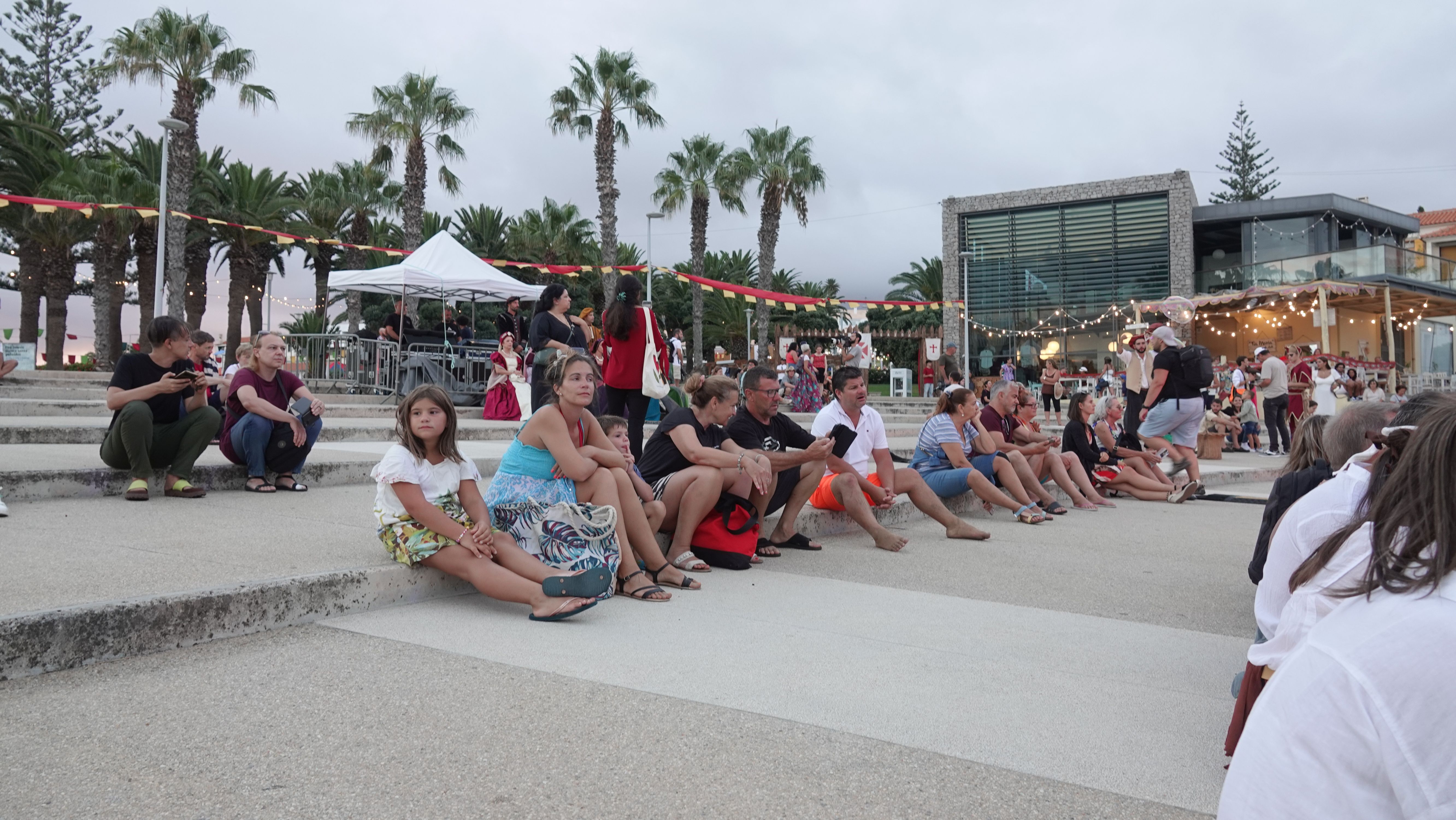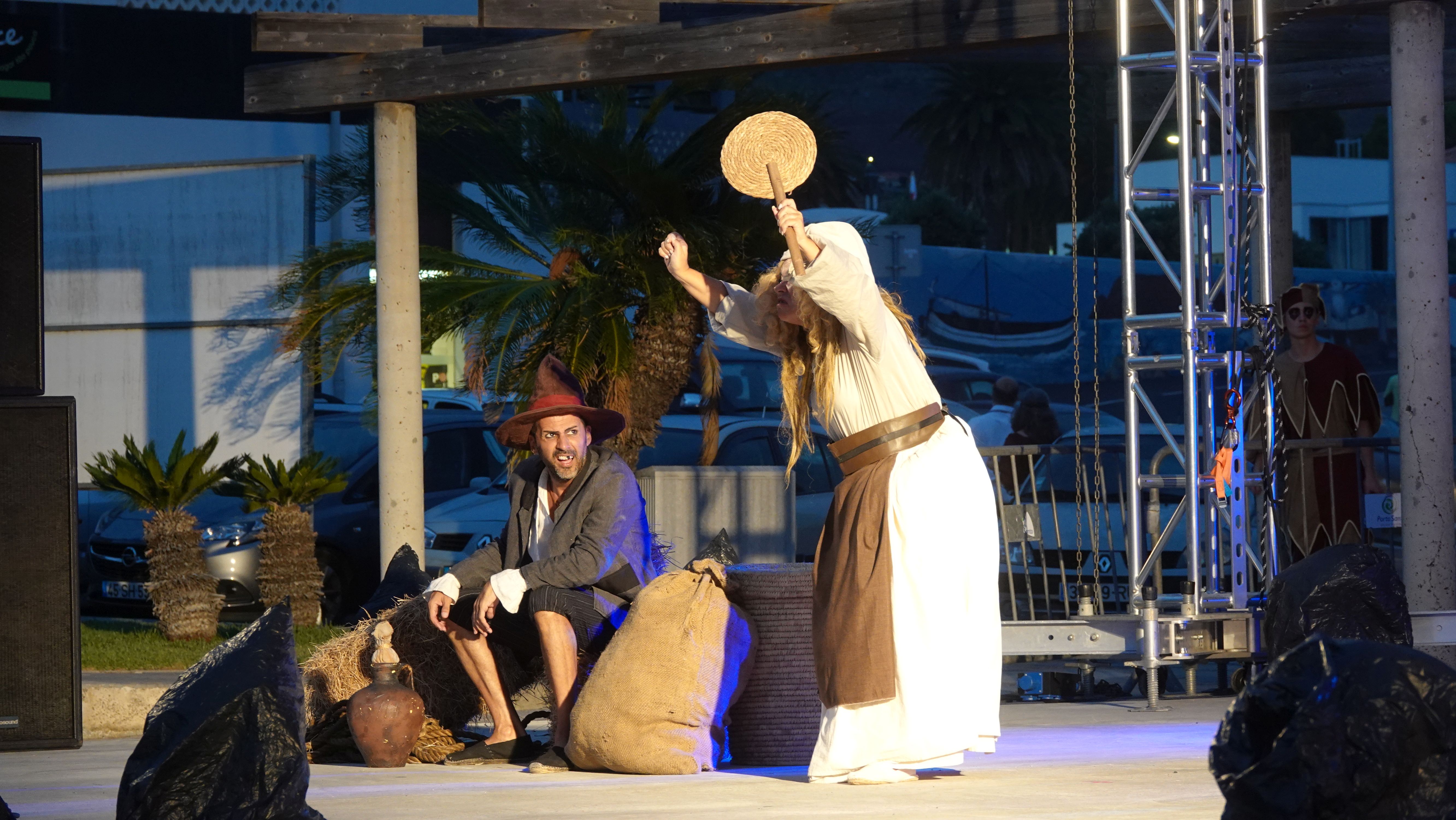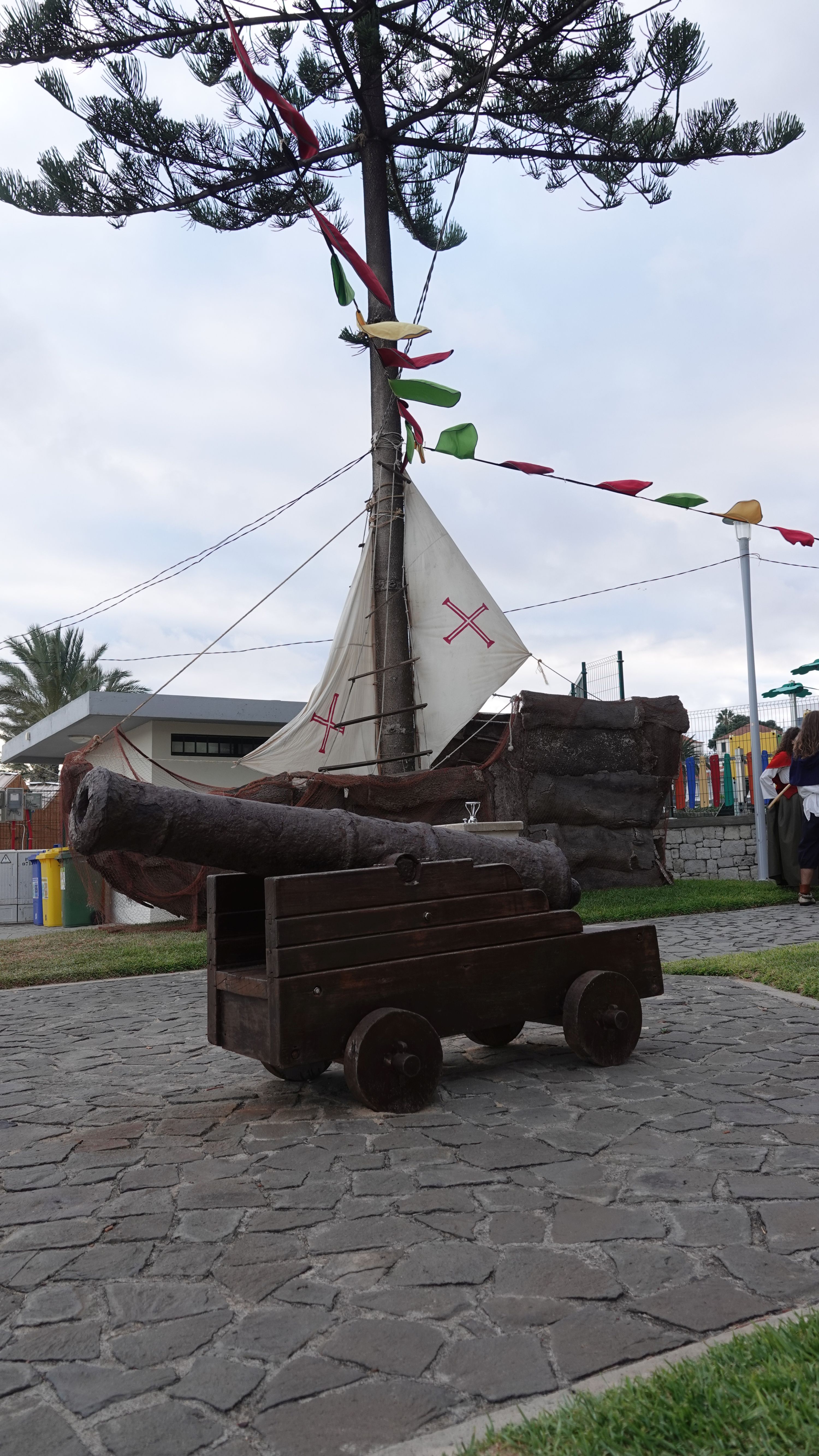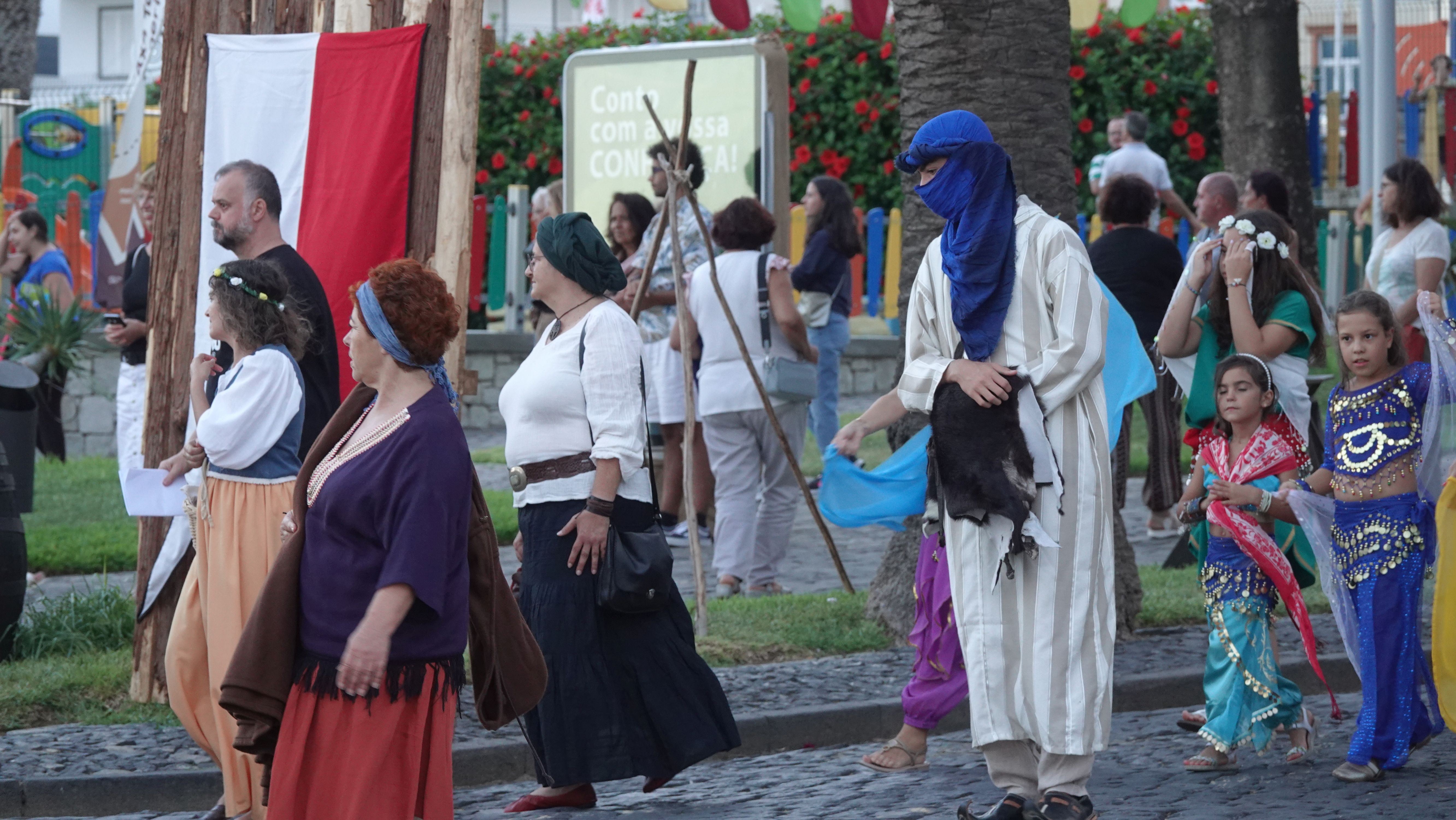 Es beginnt mit einer Prozession durch das Dorfzentrum herunter zur Seebrücke und der Bühne an der Promenade. Dort wird ein Theaterstück Columbus's Legacy aufgeführt. Es ist wie eine Reihe lebendiger Gemälde. Die Darsteller nehmen feste Posen auf der Bühne ein, während aus dem Off der Dialog gesprochen wird. Das ganze auf Portugiesisch mit kurzen englischen Einleitungen vor den Akten. Soweit ich folgen kann, ist das Stück eine Reflektion des alternden Kolumbus über sein Leben als Entdecker und die nicht unbedingt positiven Auswirkungen seiner Taten auf politischer Ebene, auf die Völker, die er "entdeckt" und erobert hat, und auf sein Familienleben.