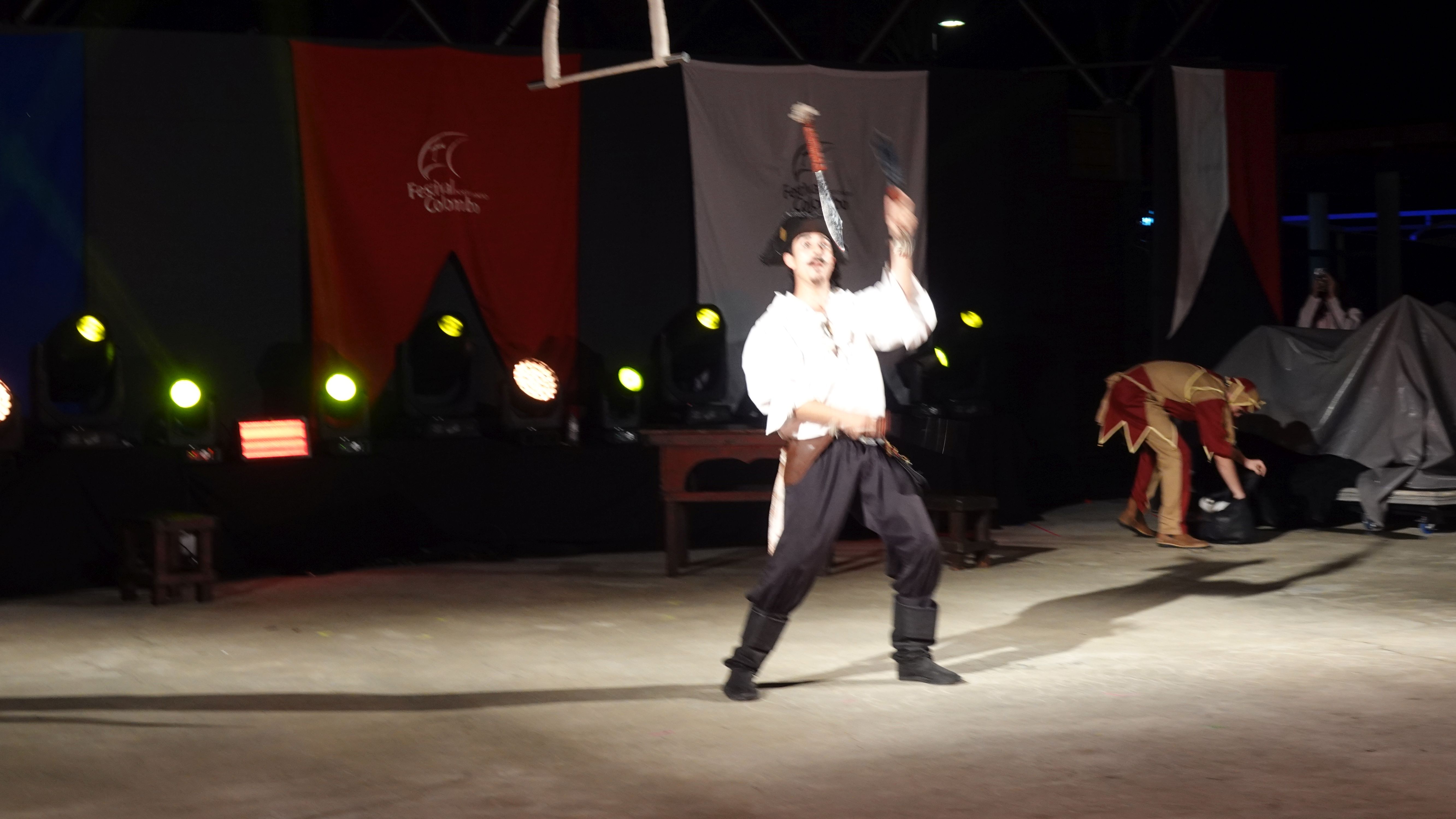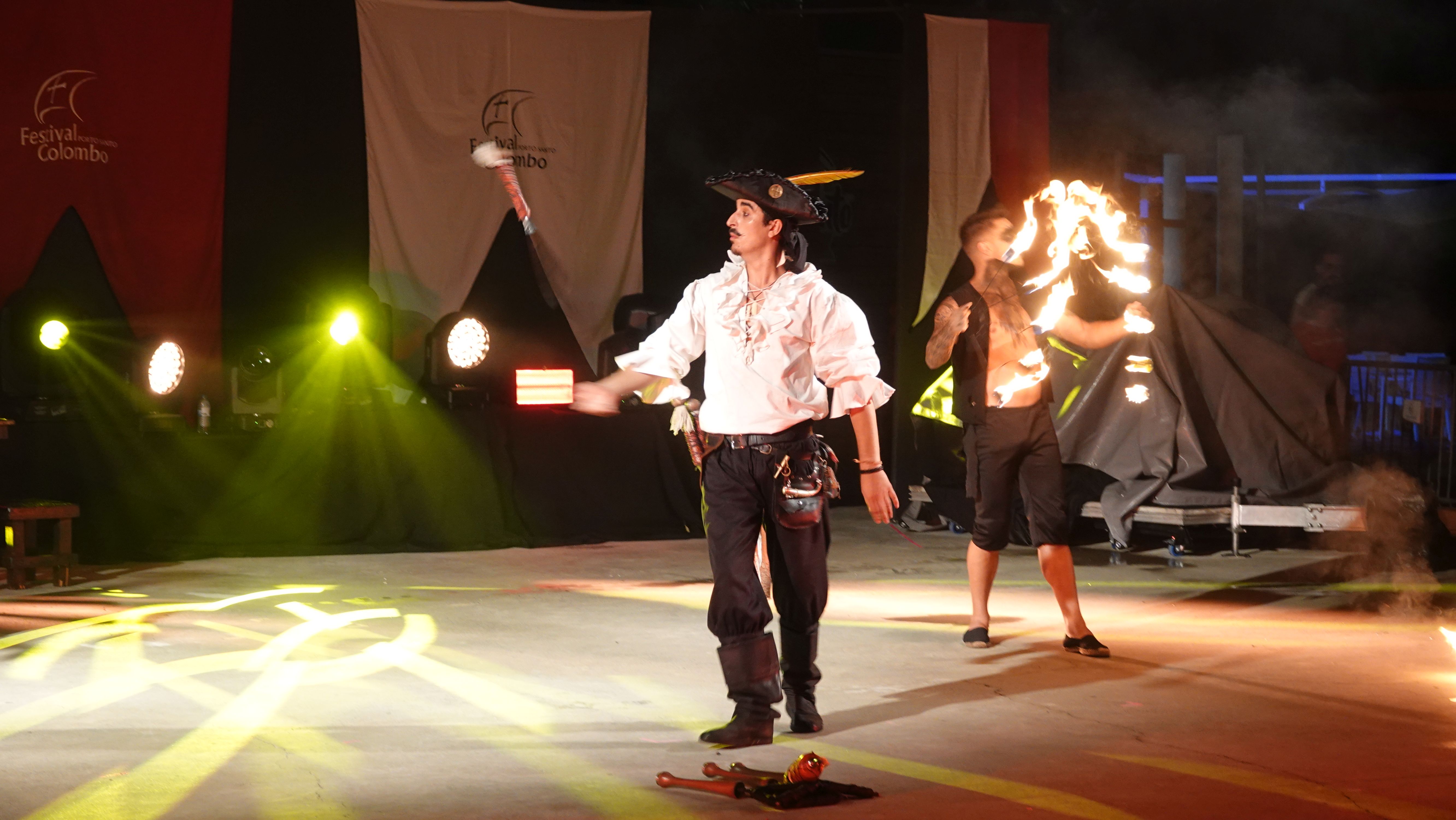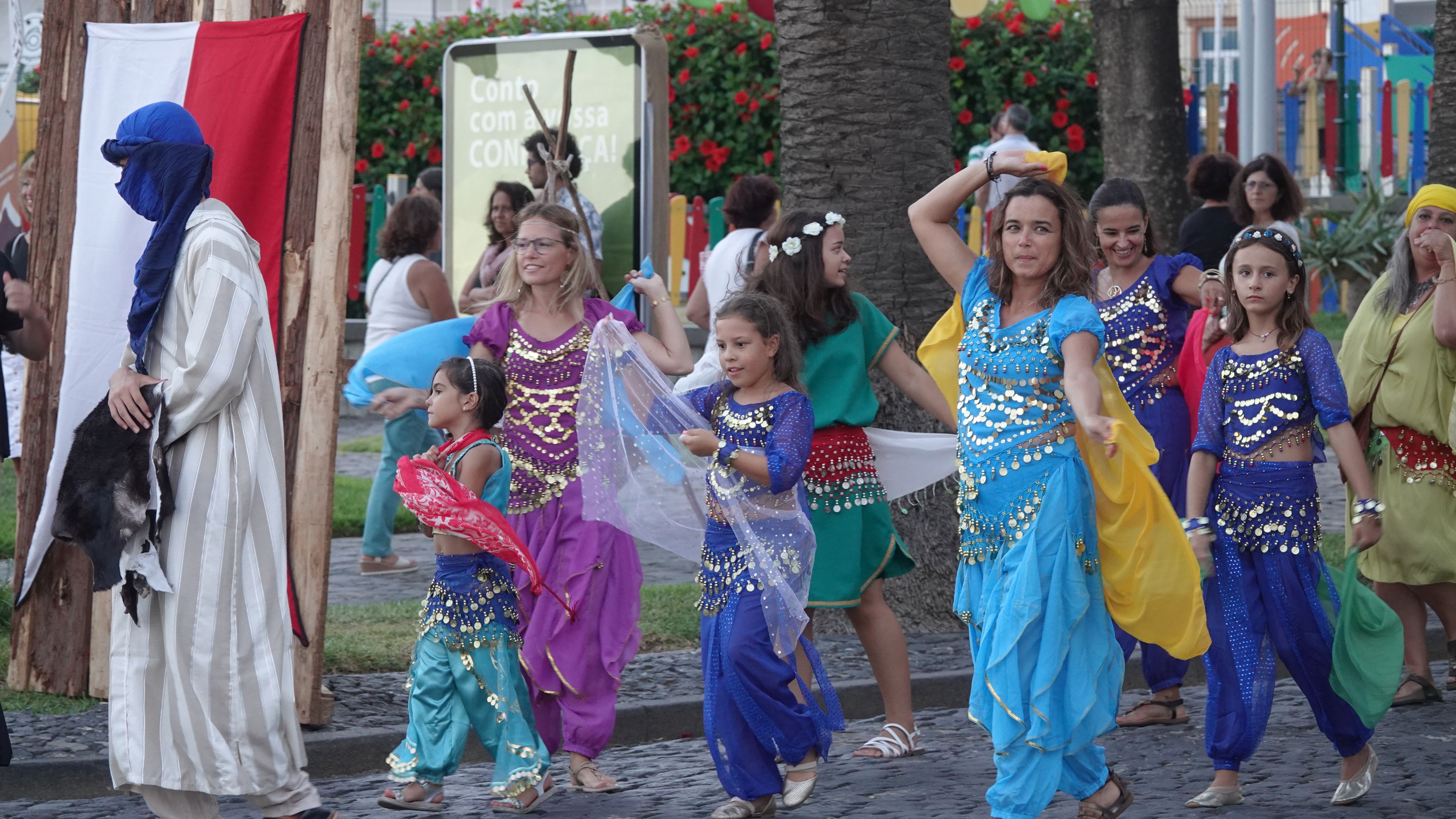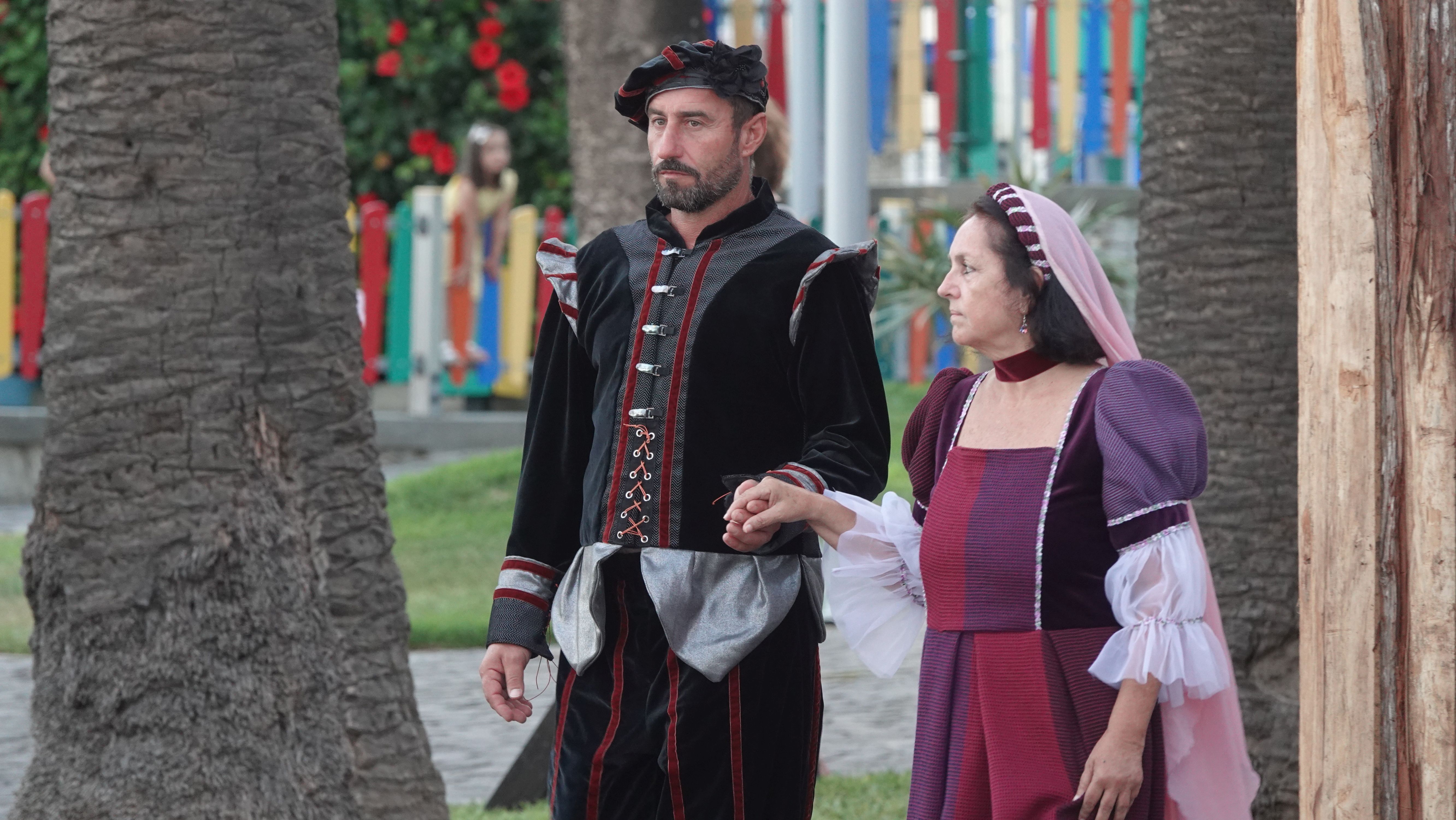 Es beginnt mit einer Prozession durch das Dorfzentrum herunter zur Seebrücke und der Bühne an der Promenade. Dort wird ein Theaterstück Columbus's Legacy aufgeführt. Es ist wie eine Reihe lebendiger Gemälde. Die Darsteller nehmen feste Posen auf der Bühne ein, während aus dem Off der Dialog gesprochen wird. Das ganze auf Portugiesisch mit kurzen englischen Einleitungen vor den Akten. Soweit ich folgen kann, ist das Stück eine Reflektion des alternden Kolumbus über sein Leben als Entdecker und die nicht unbedingt positiven Auswirkungen seiner Taten auf politischer Ebene, auf die Völker, die er "entdeckt" und erobert hat, und auf sein Familienleben.