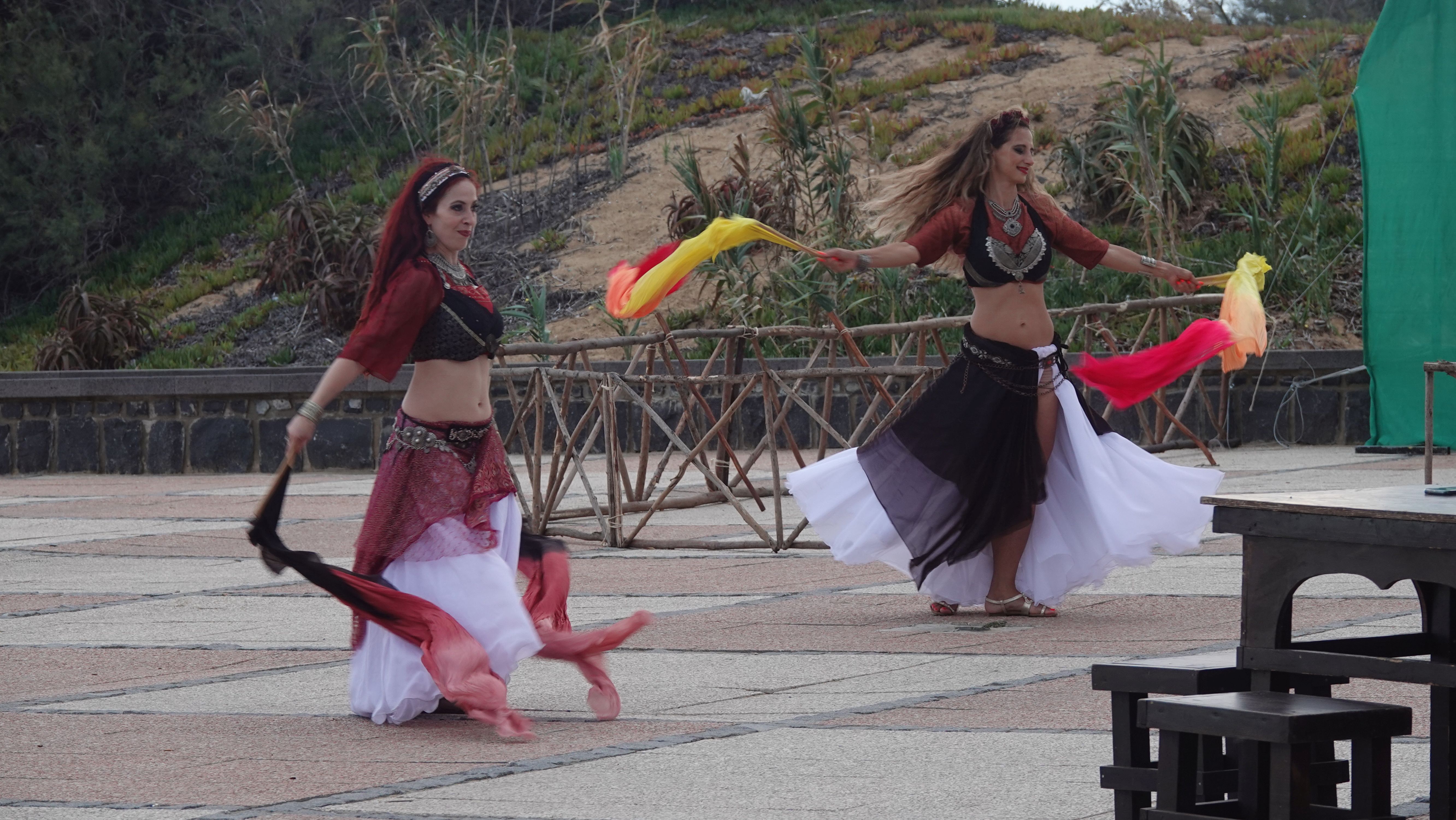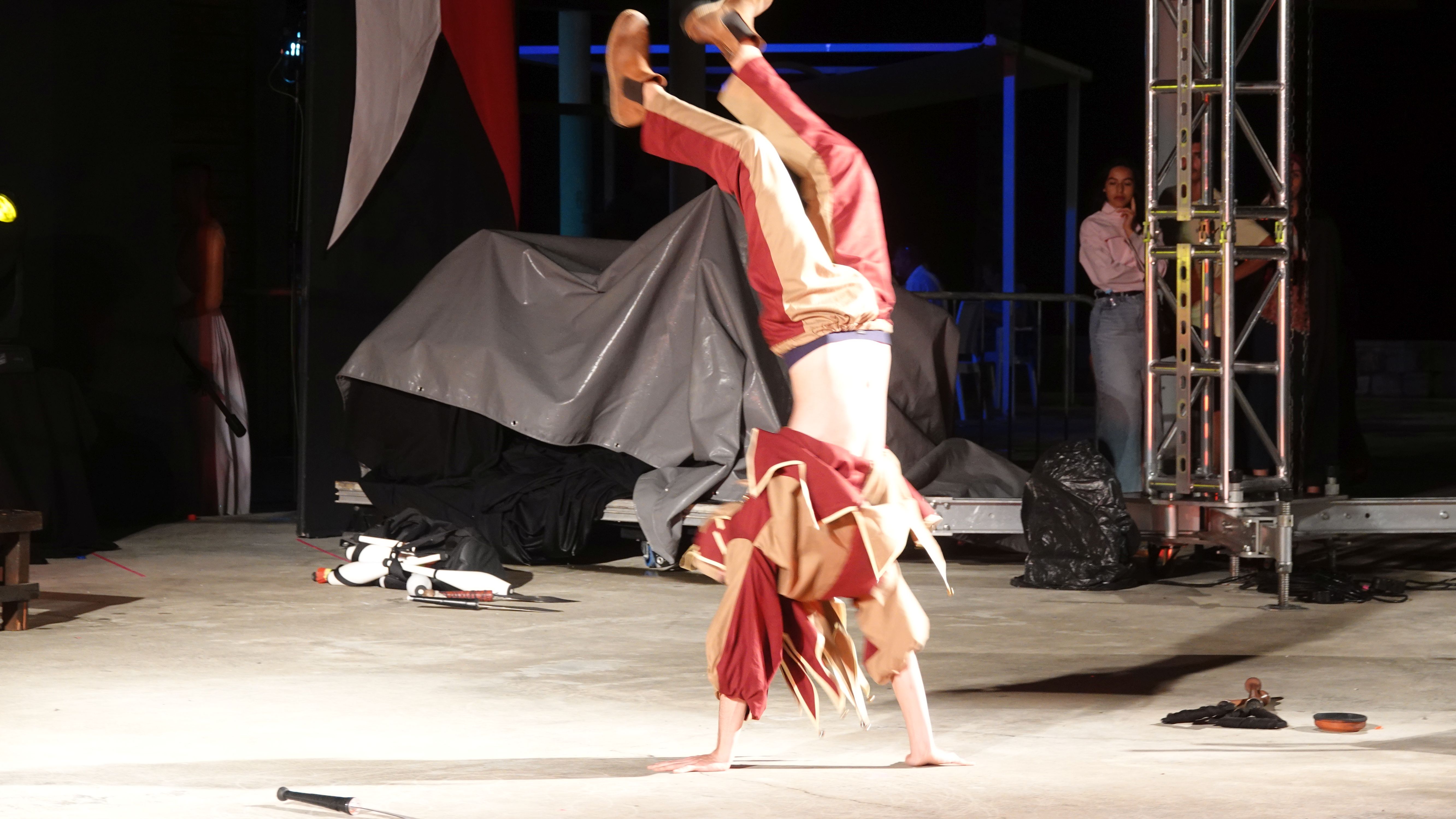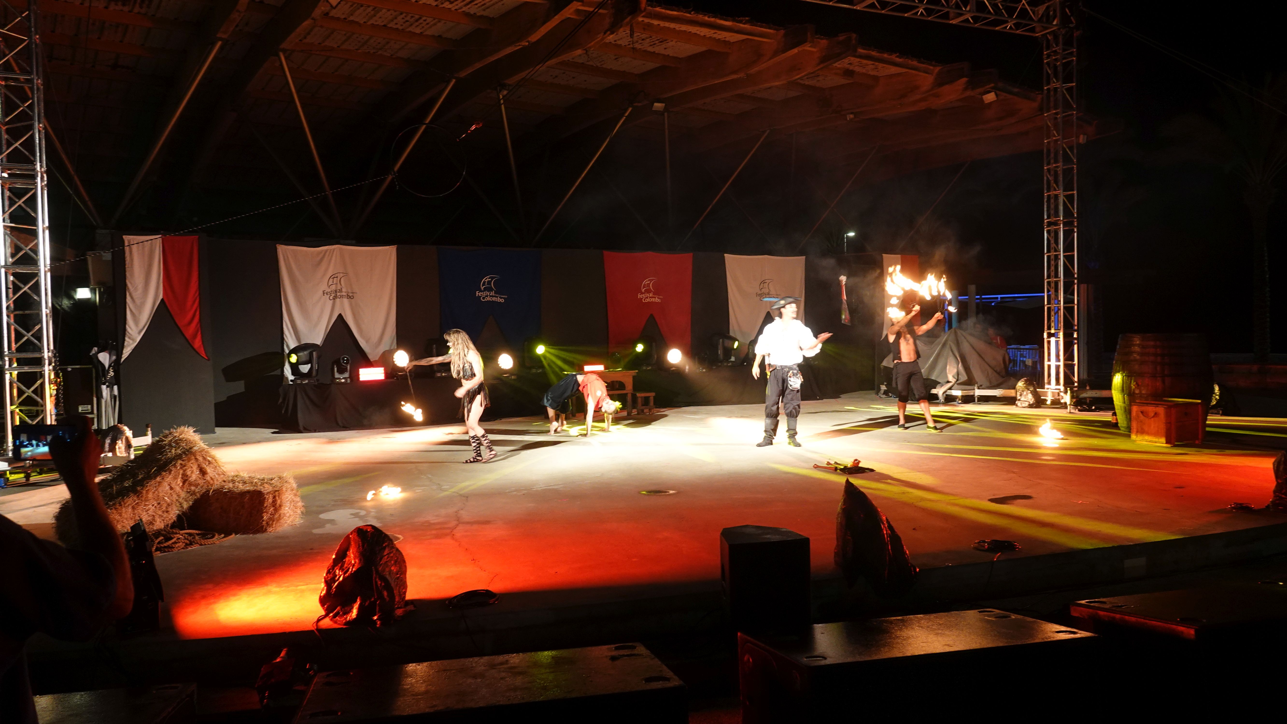Trotz des Wetters gibt es den restlichen Abend wieder Musik, Akrobatik, Feuerspucker, Tanz...