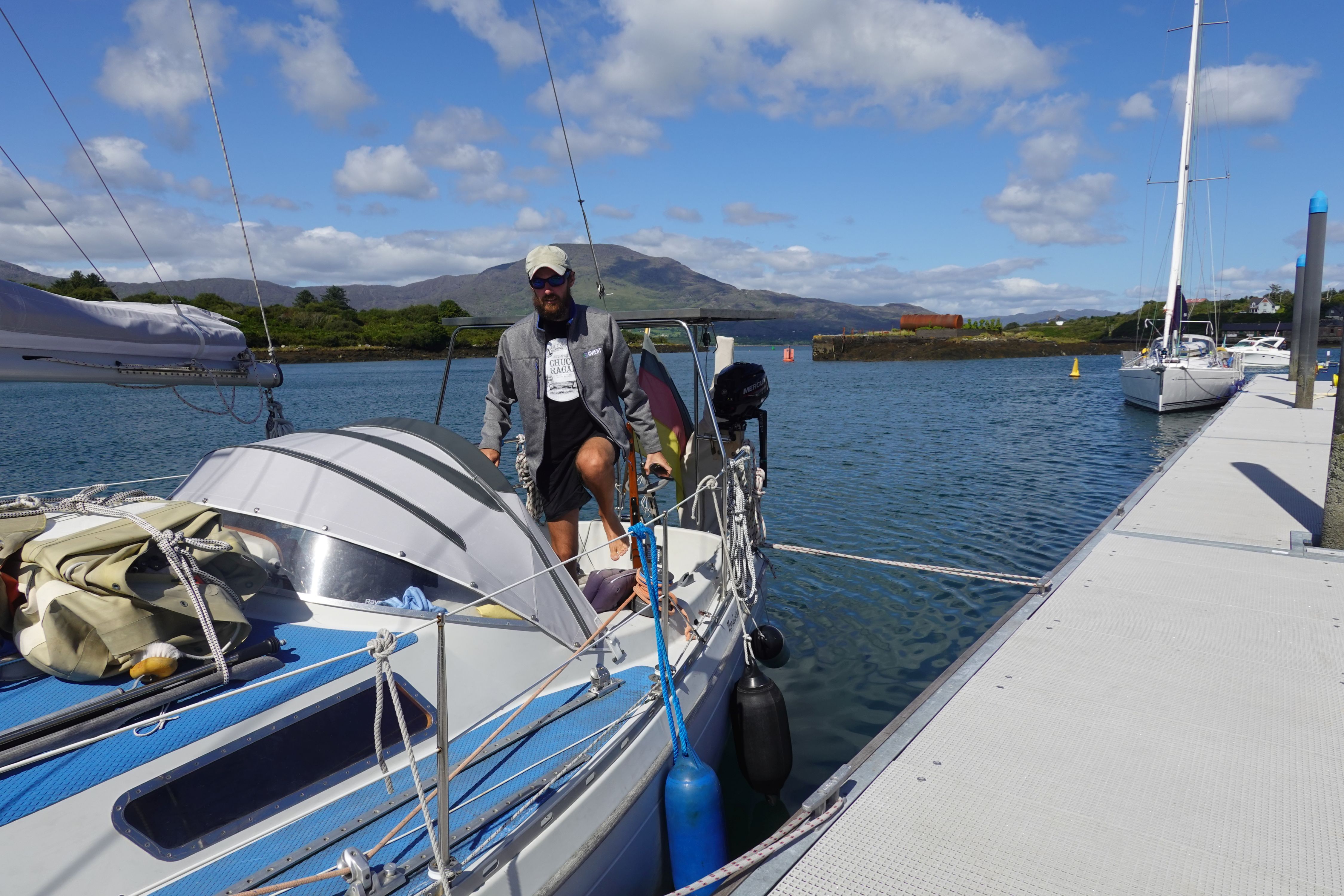 Es geht noch knapp fünf Meilen den Bere Island Sound entlang nach Osten bis zum Hafen. Hier auf glattem Wasser mache ich meinen Marinaanruf und wir bekommen einen Platz direkt am Steg zugewiesen.