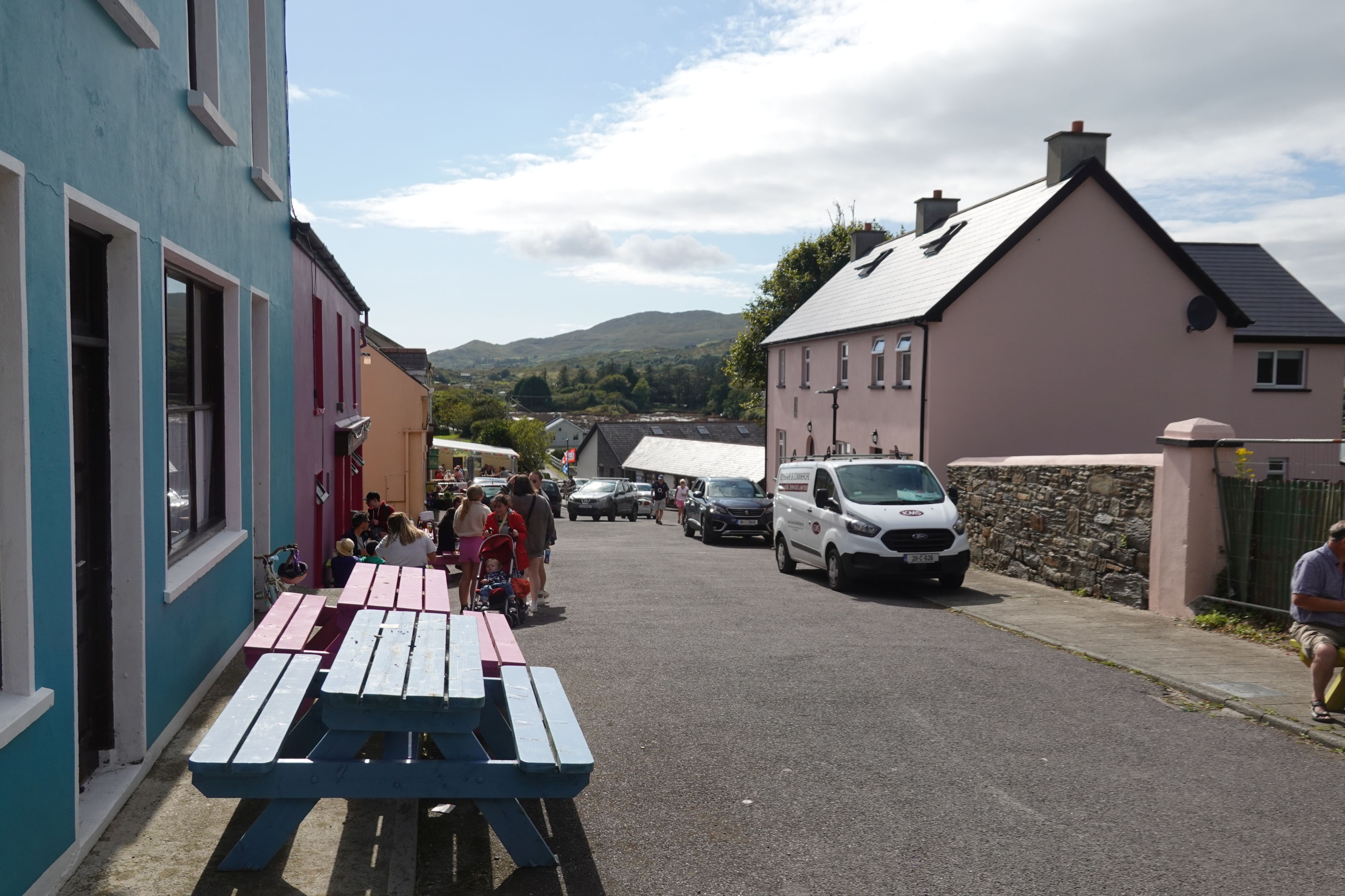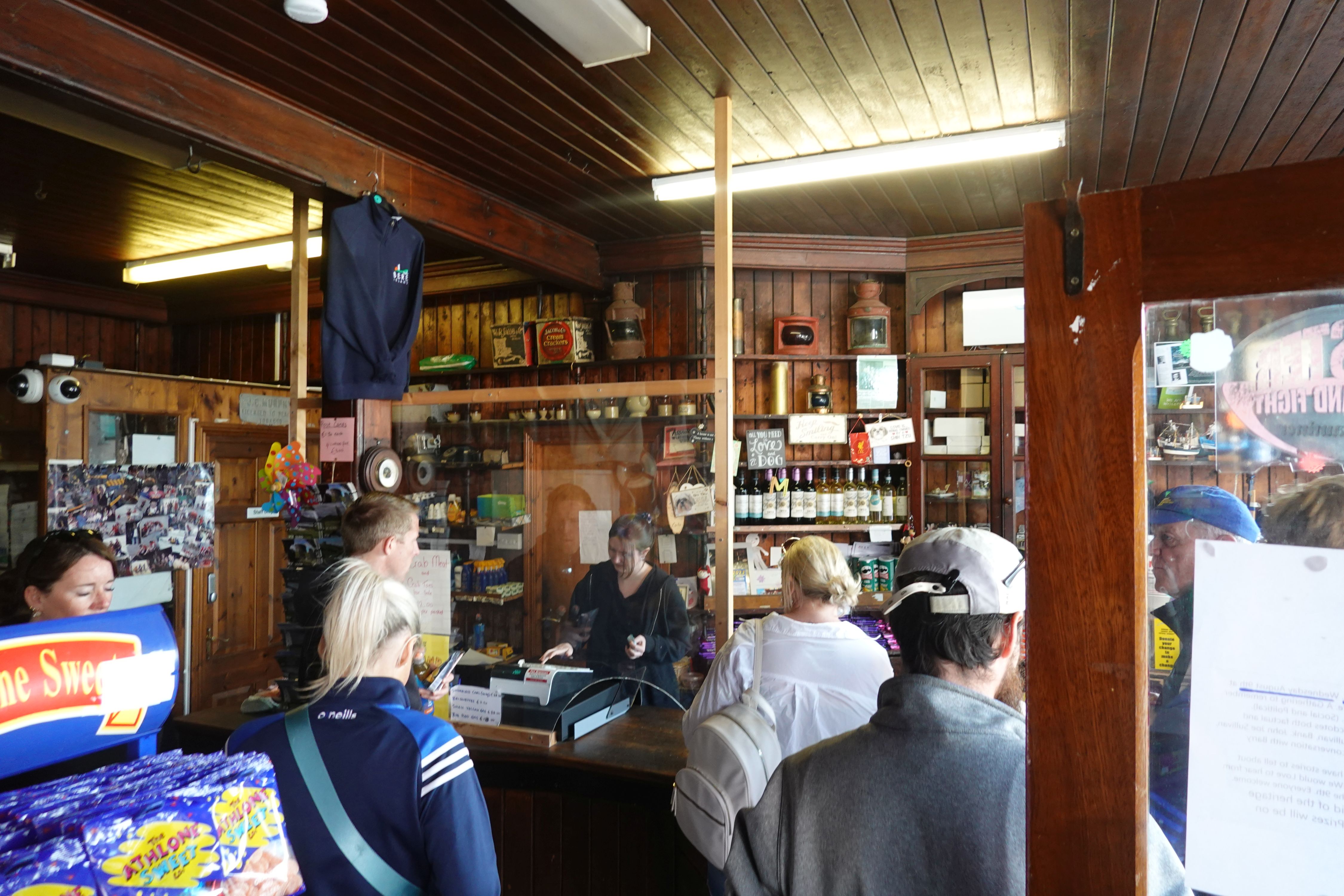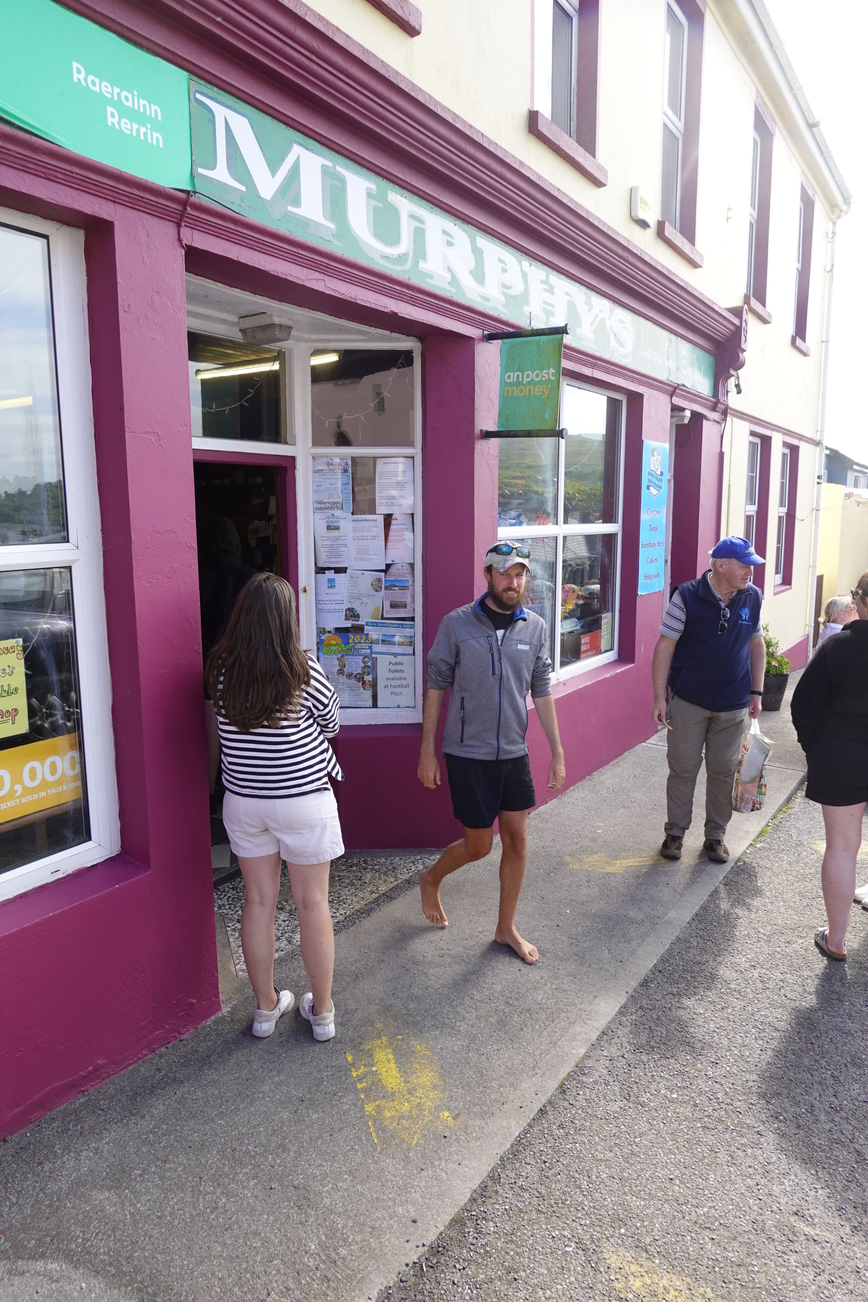 Murphy's Shop, gleichzeitig Post Office und Café / Bistro, ist gut besucht. Es gibt ein bisschen von allem für den täglichen Bedarf. Wir ergattern erstmal nur ein Rosinenbrot fürs Frühstück, kommen dann aber an der Kasse nicht weiter. Das Kartenlesegerät will sich nicht verbinden und Bargeld haben wir nicht dabei. Wir lassen das Brot zurücklegen und laufen noch einmal zum Hafen und zurück. Nach dem Marsch gönnen wir uns dann auch gleich noch ein Eis für den Rückweg.