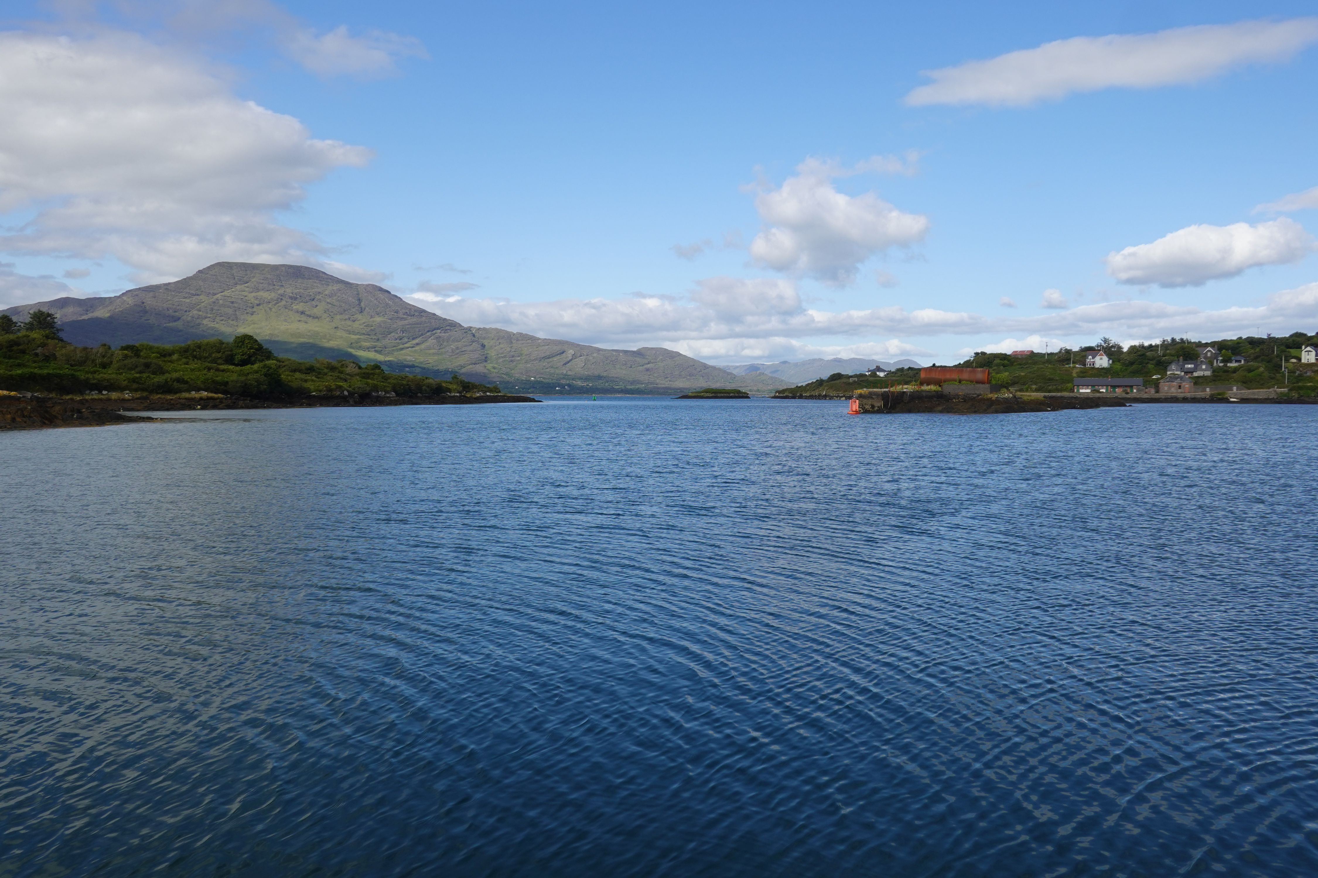 Und damit haben wir unser Ziel für heute. Noch an der Boje setzen wir das Groß, ziehen die Genua dazu sobald wir frei sind und gleiten so leise und langsam aus Crookhaven heraus. Obwohl hier in der Bucht gerade eben genug Bewegung in der Luft ist um Lua zu steuern binden wir gleich wieder das zweite Reff ins Großsegel. Sobald wir zwischen den hohen Bergen hervorkommen dürfte es wieder stürmisch werden.