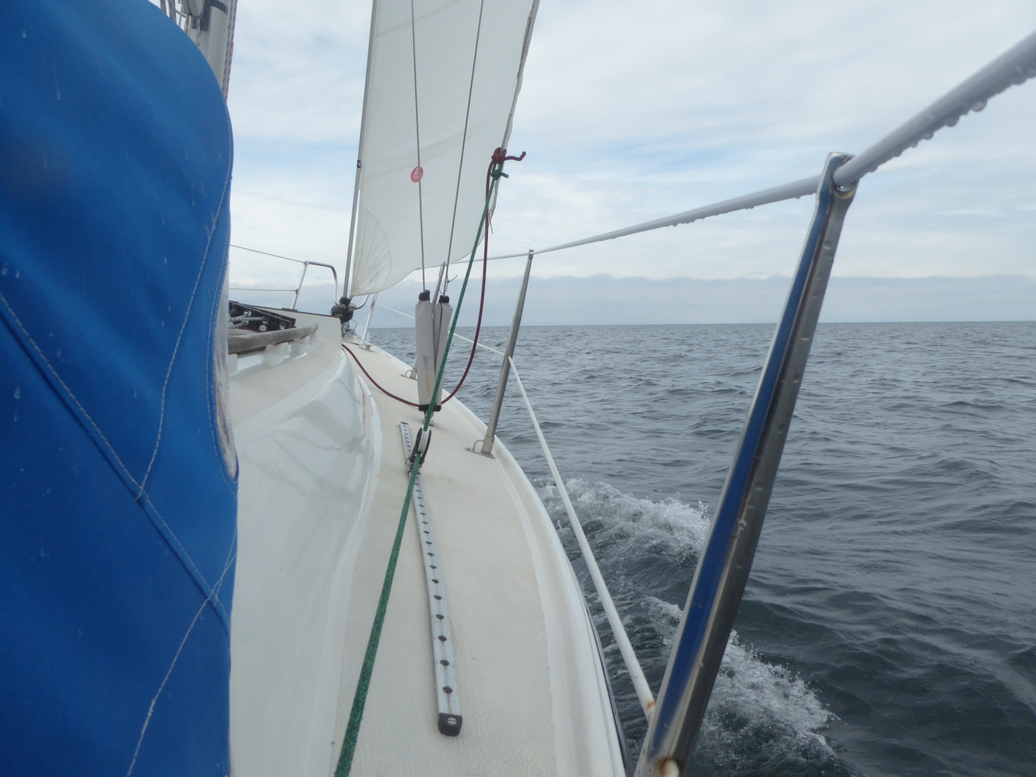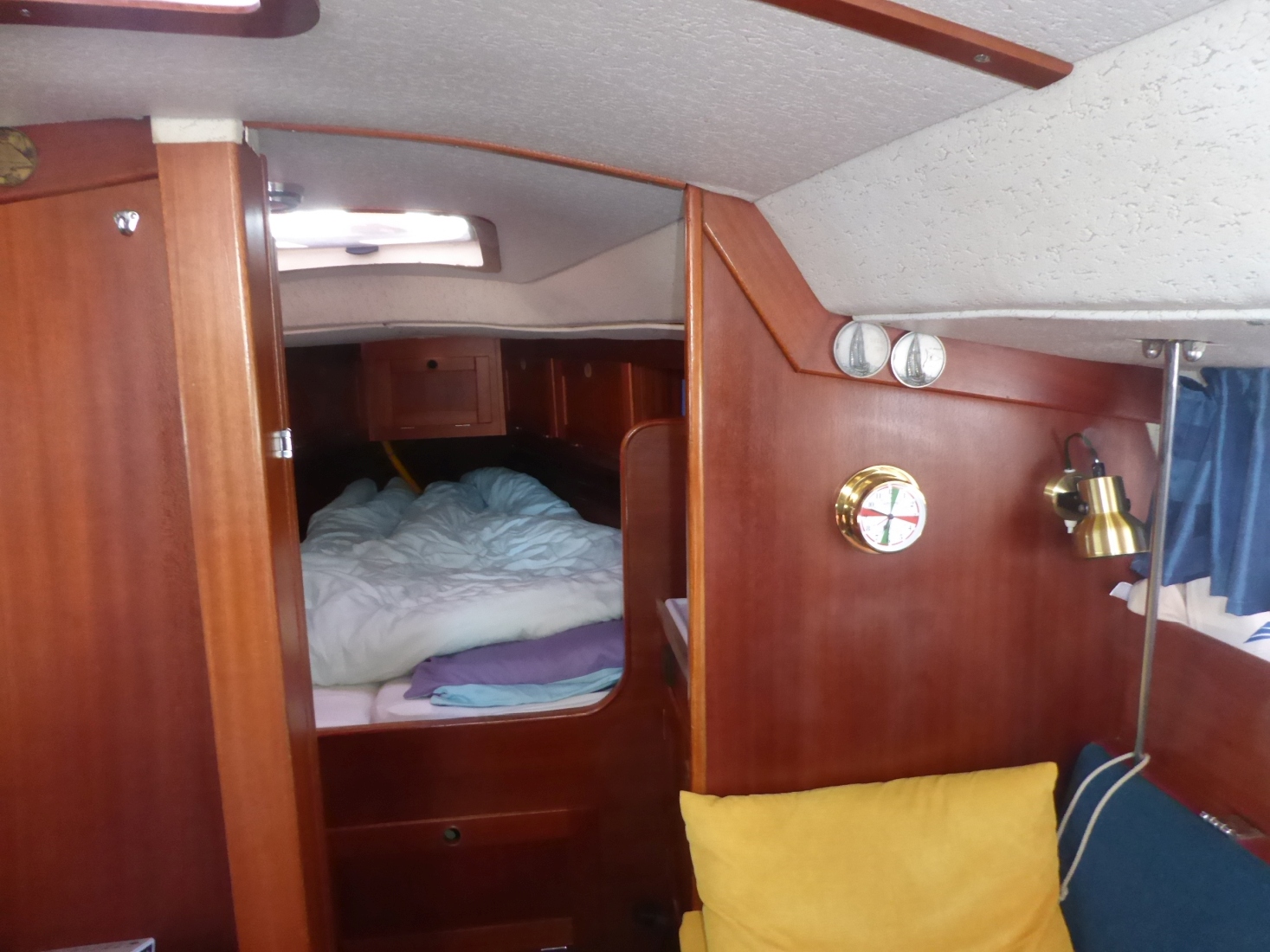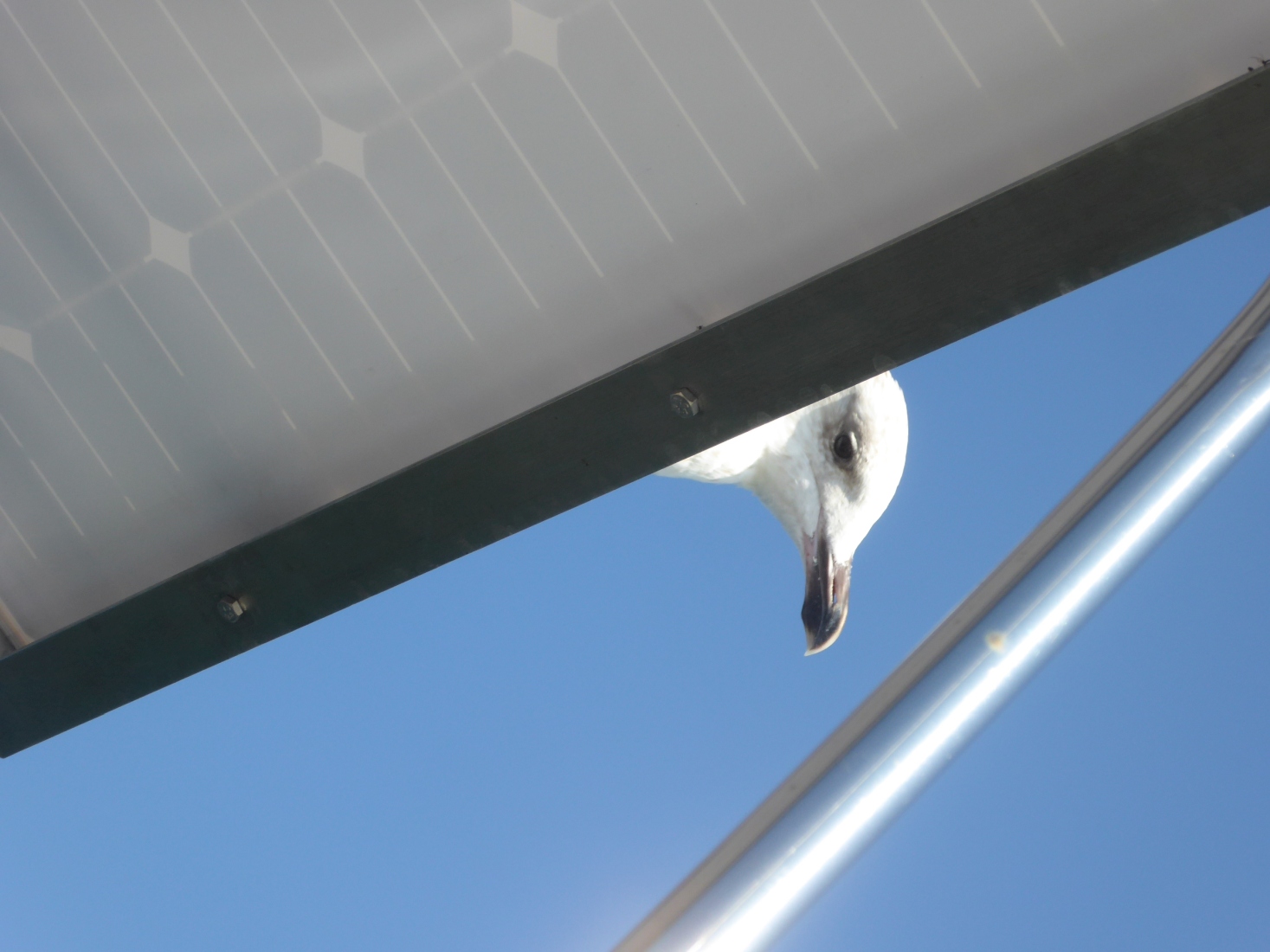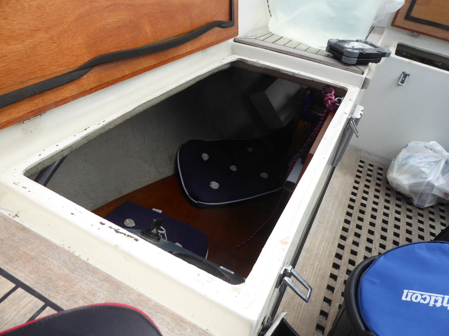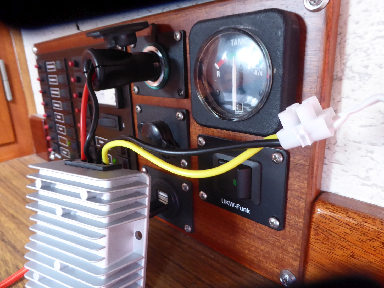Nach dem Frühstück untersuche ich zunächst die Buchse des Autopiloten. Sie lässt sich wackeln, ist aber noch fest im Silikon eingeklebt. Gefahr, dass sie herausfällt oder Wasser durchsickert besteht also nicht. Leider habe ich kein passendes Holz dabei, um eine Verstärkung unter das Buchsenloch zu kleben.