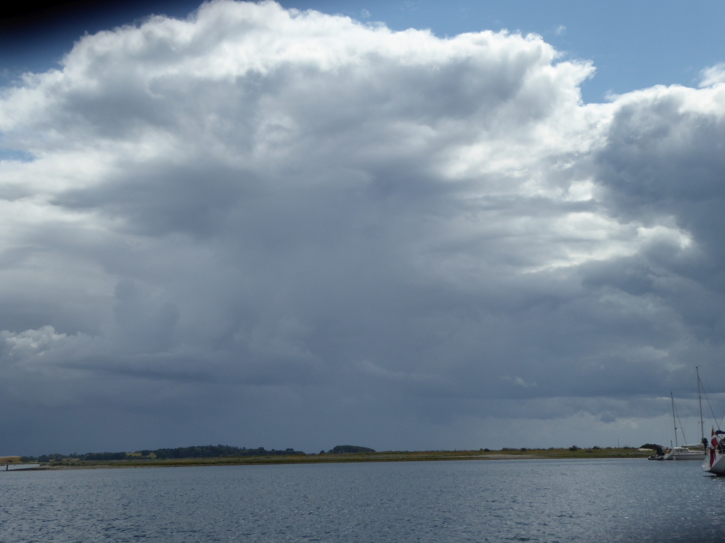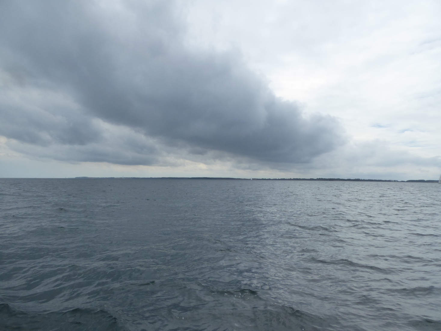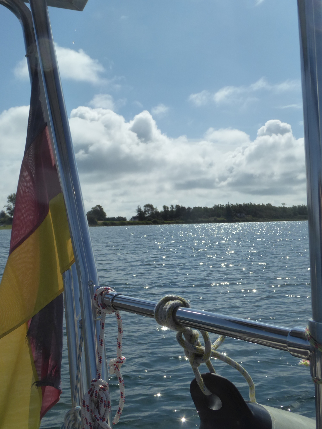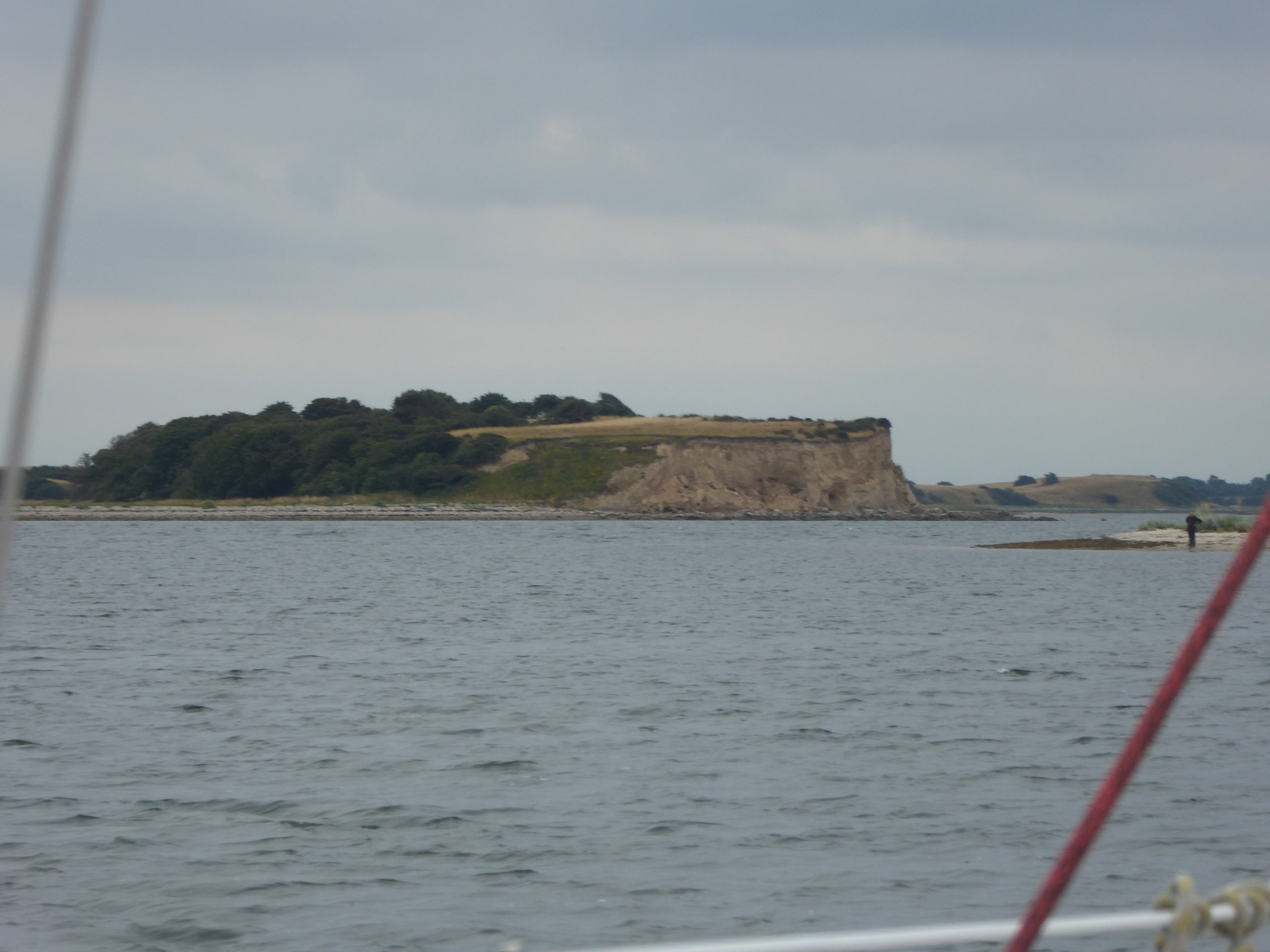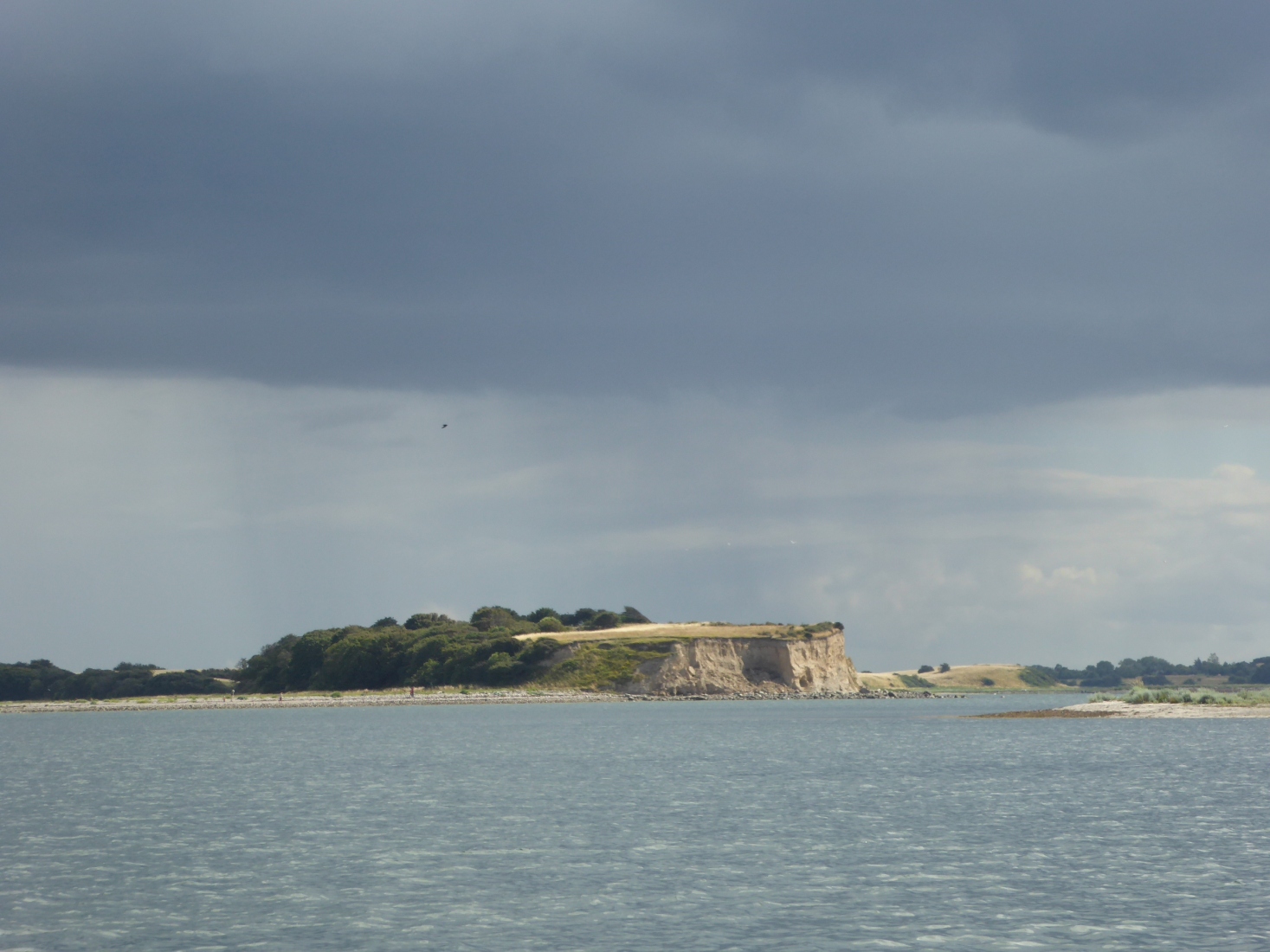 Zum Mogen hat der Wind wie angekündigt auf Südwest gedreht. Es ist grau, kurz vorm Ablegen beginnt es zu nieseln. Regen begleitet mich auch auf dem größten Teil der Strecke. Erst kurz vor der Nordspitze Fynens scheint für eine halbe Stunde ein wenig die Sonne.