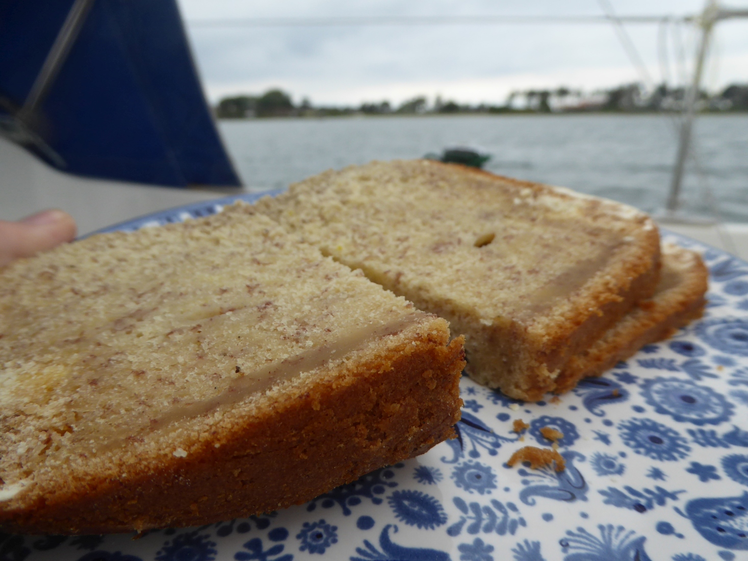 Anschließend gibt es die letzten Scheiben vom Bananenbrot. Jetzt habe