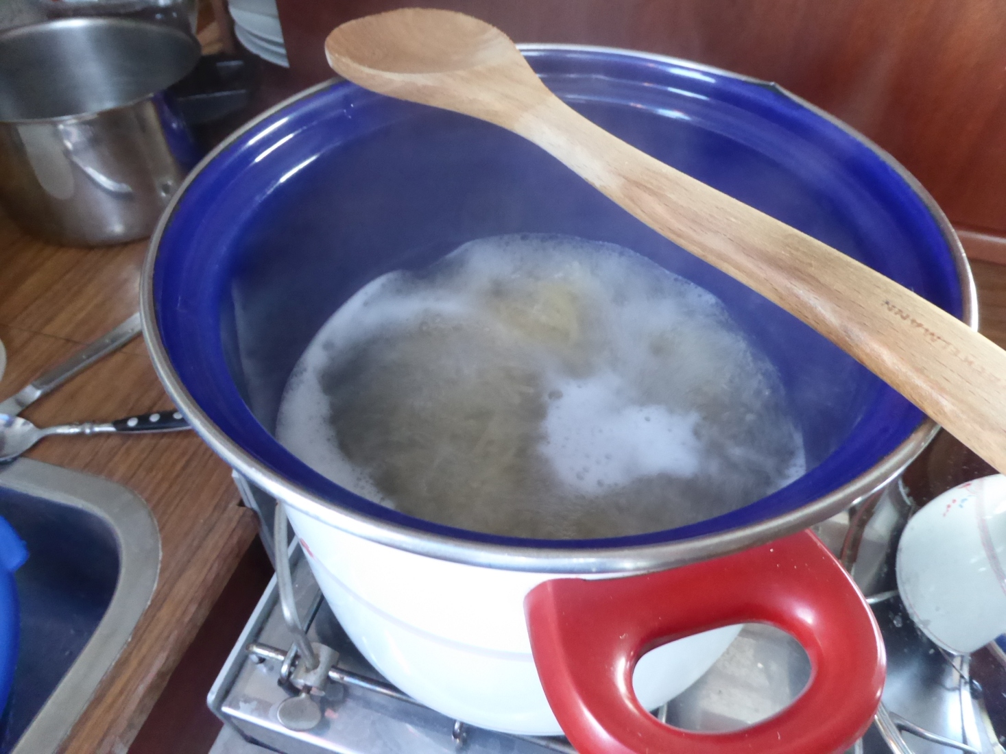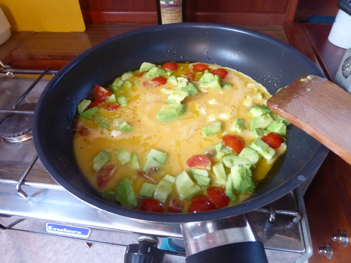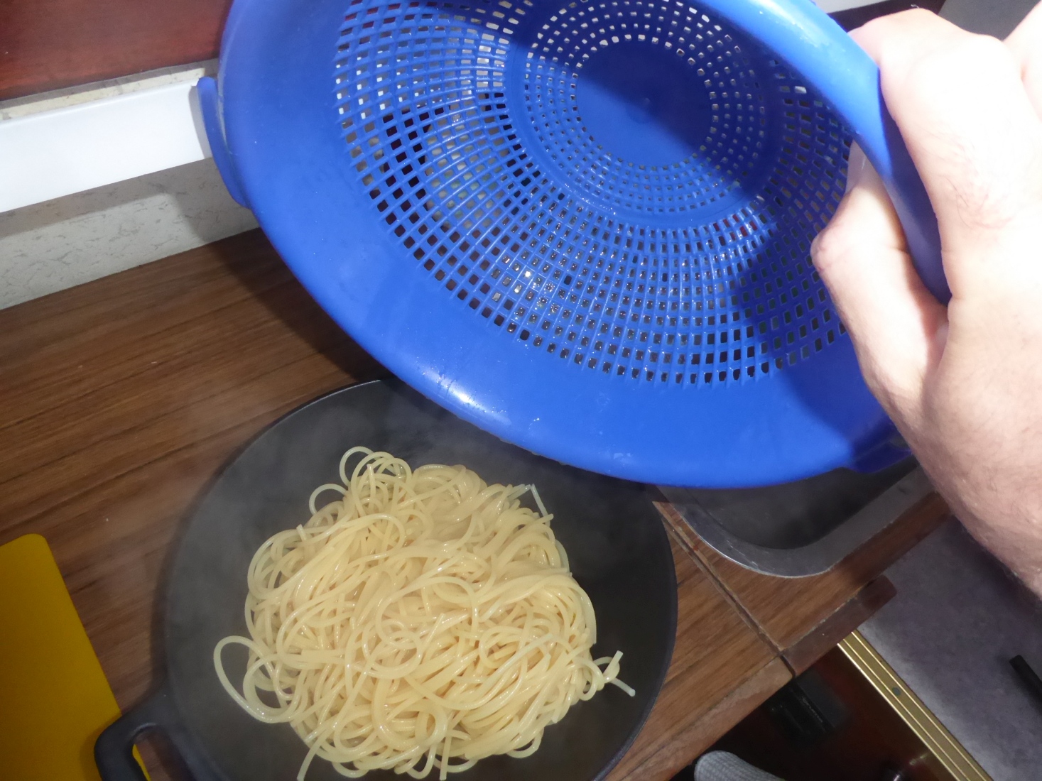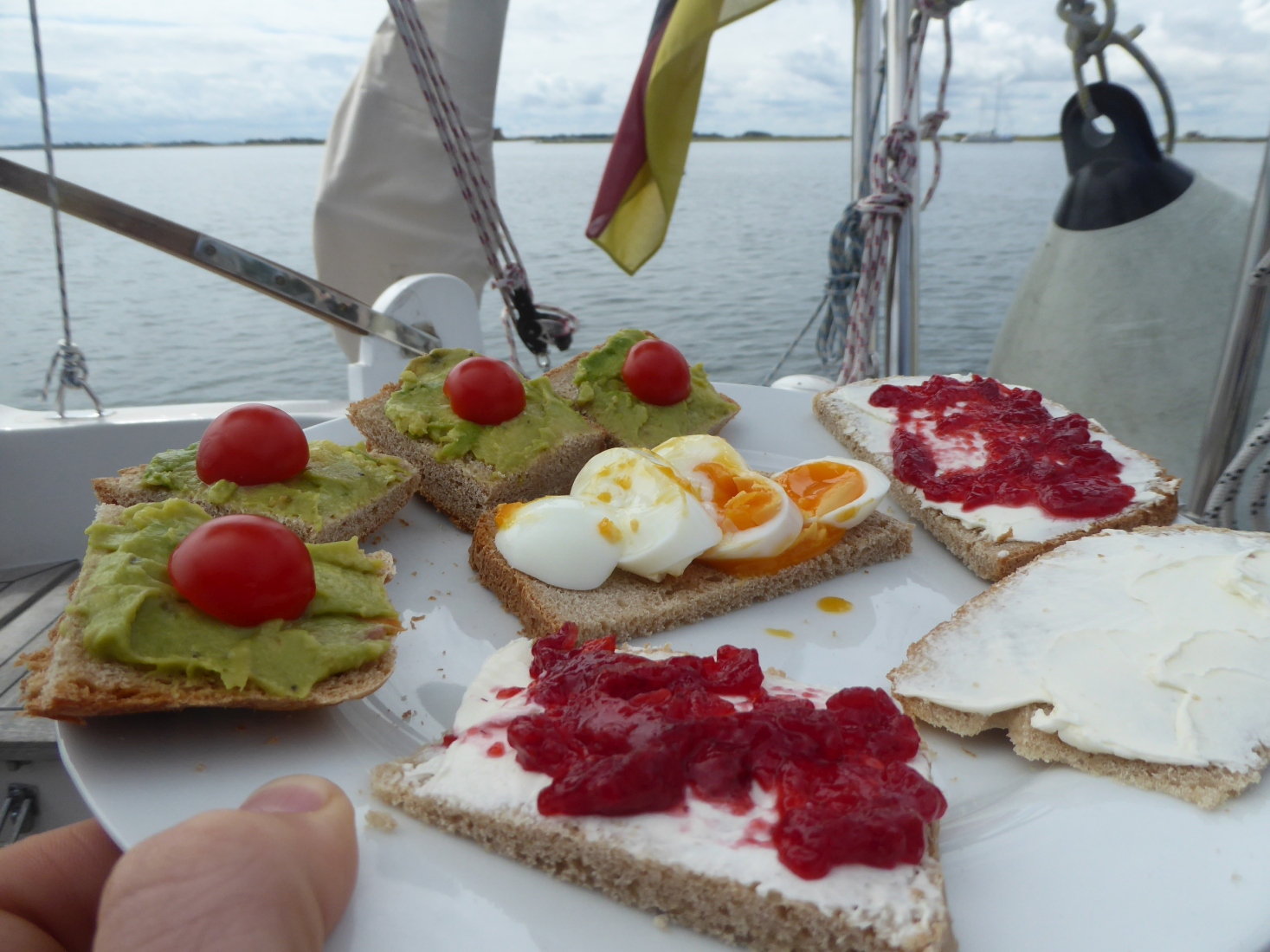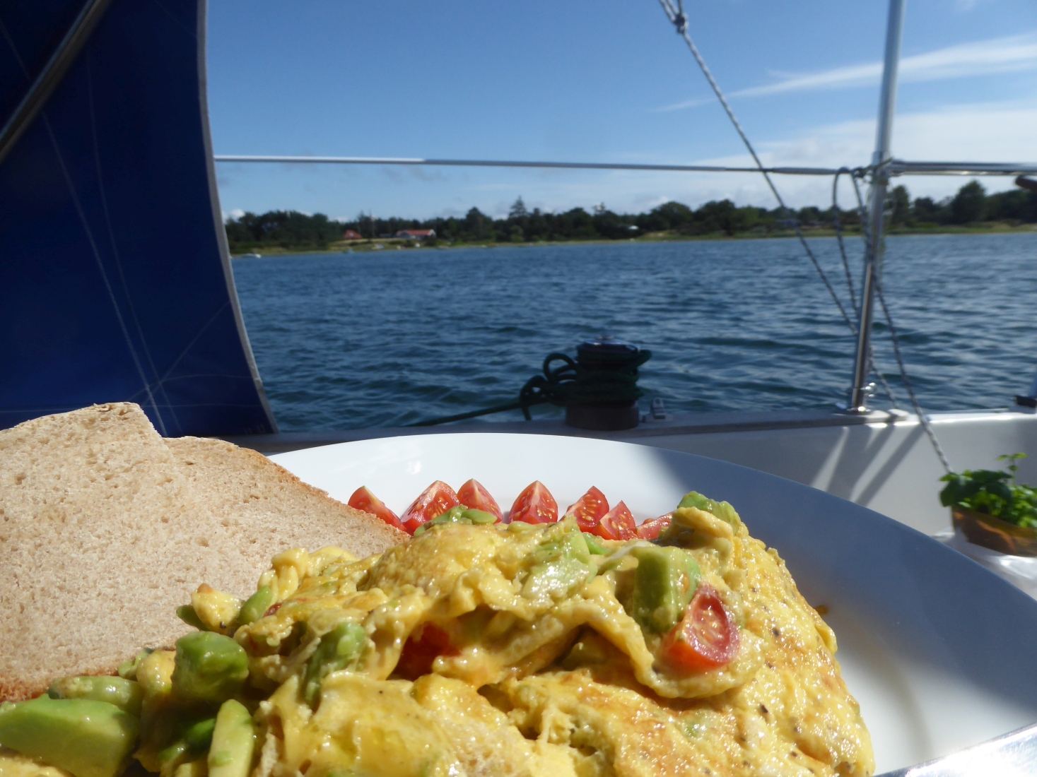 Und das erste Abendessen im Cockpit. Dort sitze ich dann auch noch