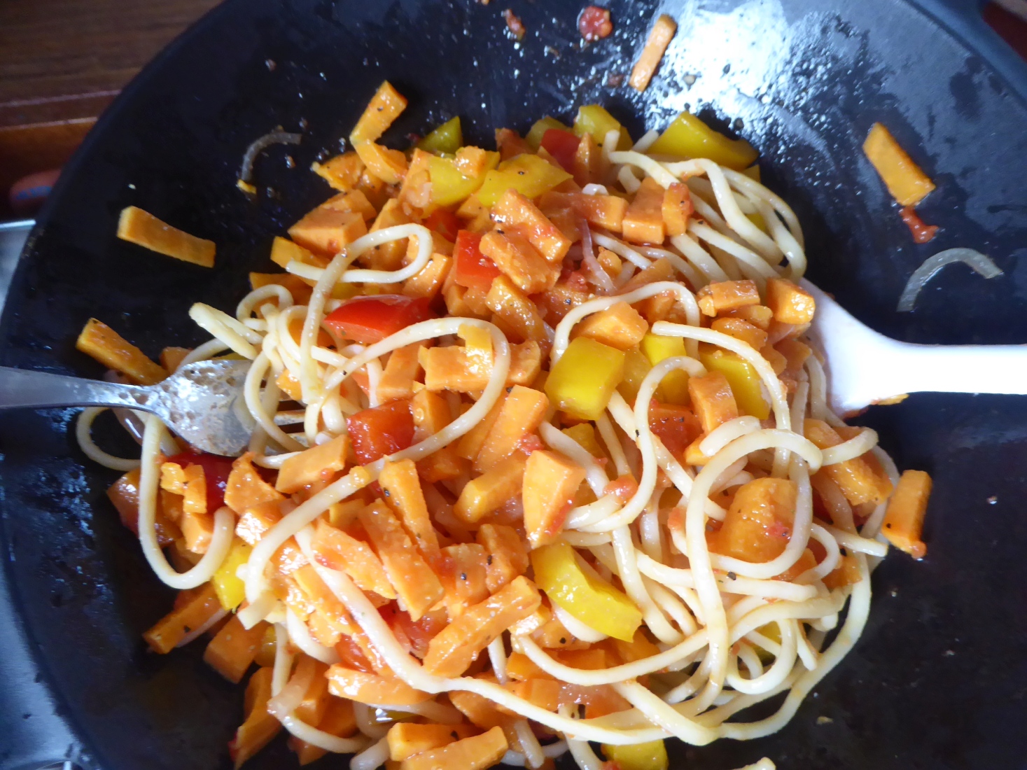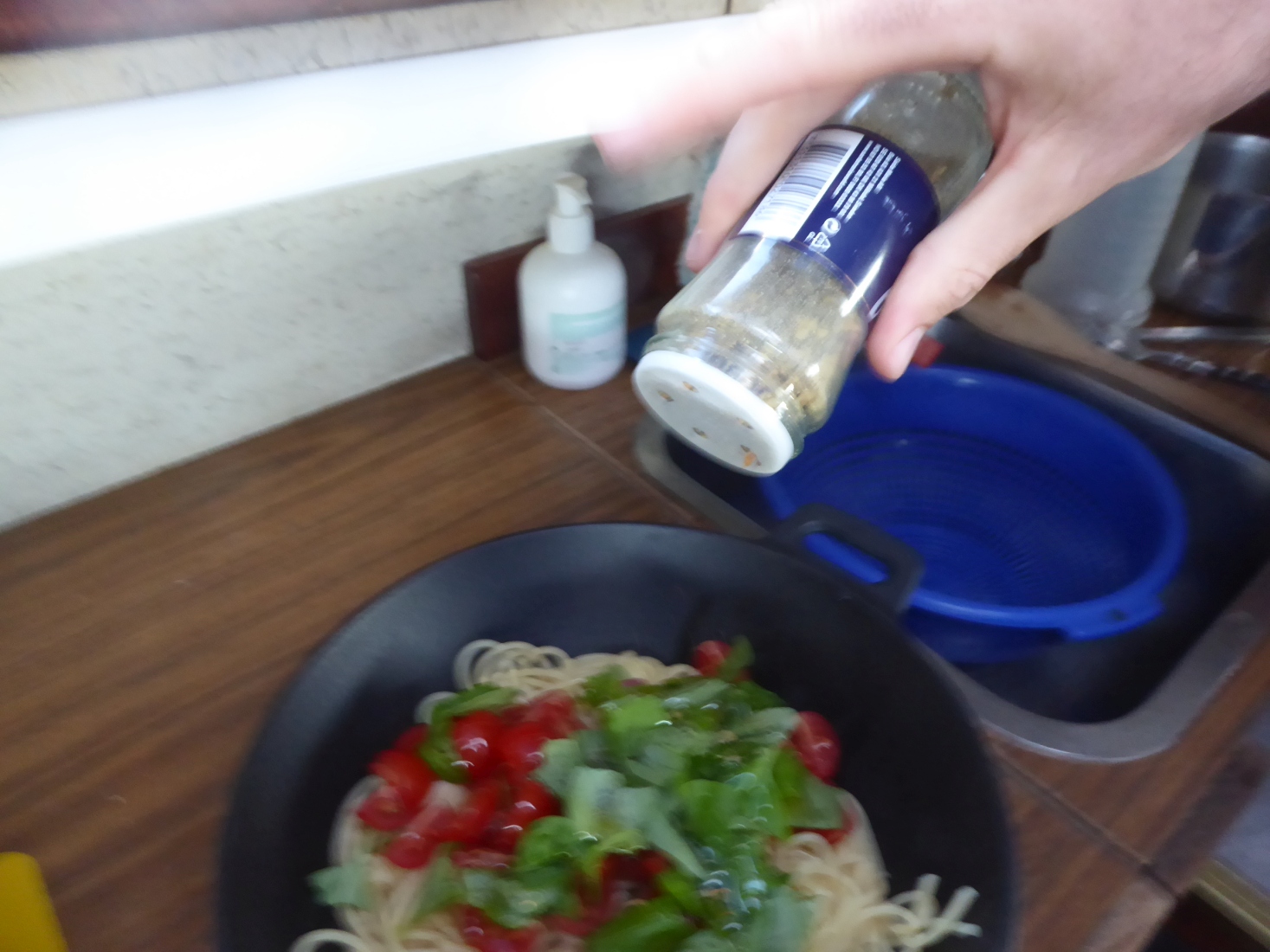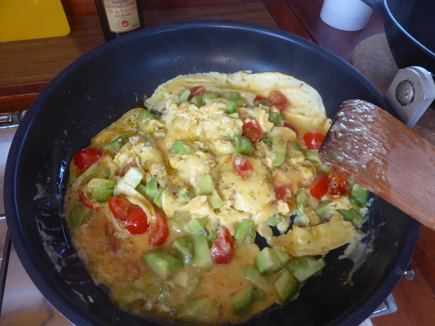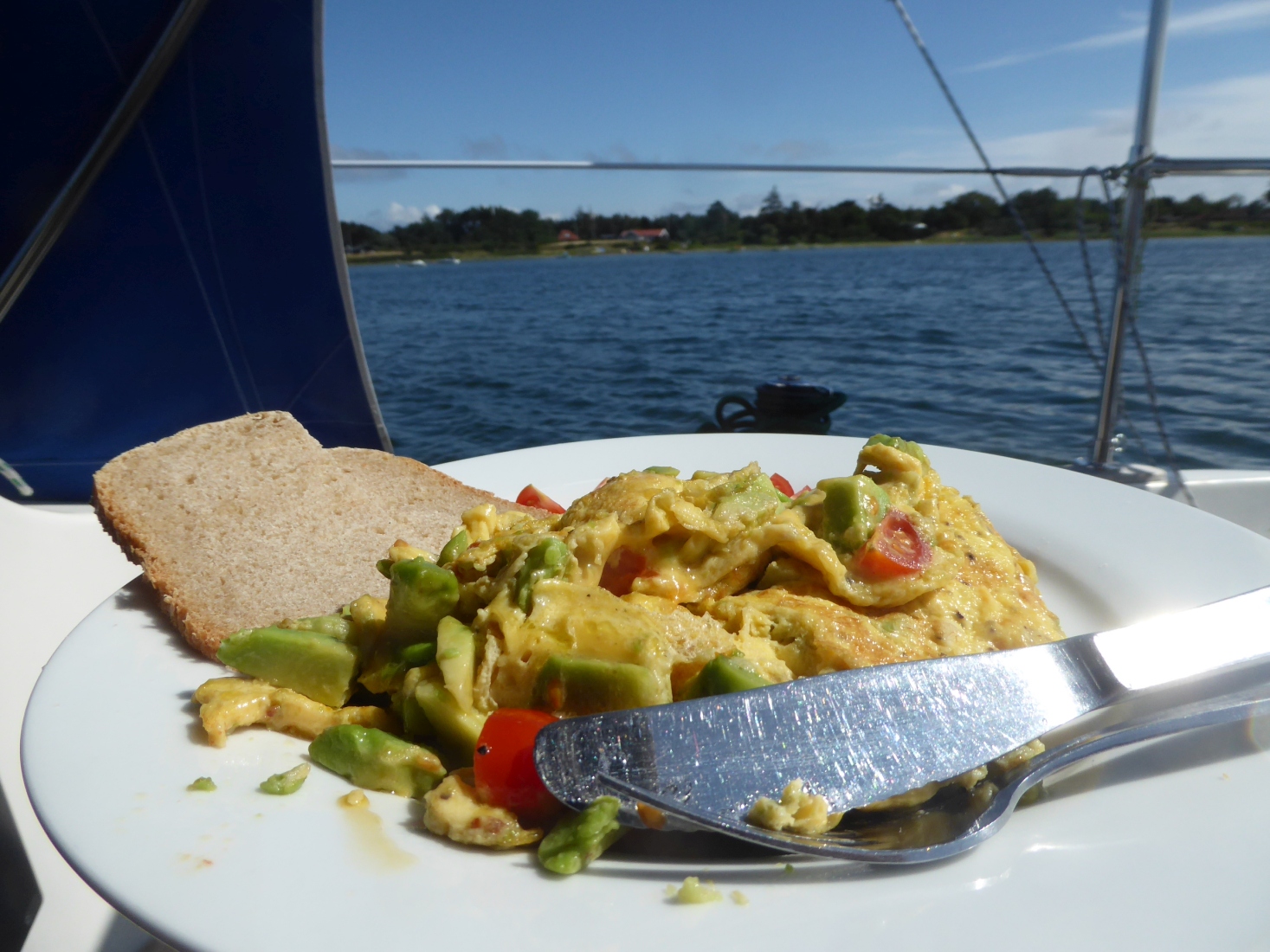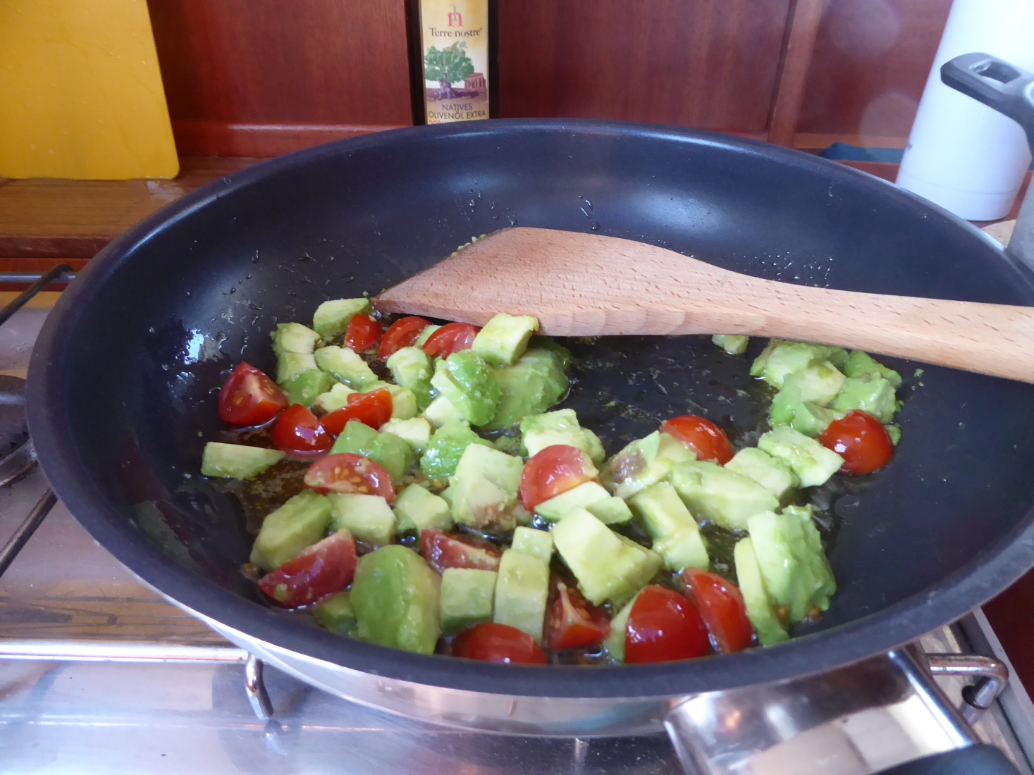 Und das erste Abendessen im Cockpit. Dort sitze ich dann auch noch