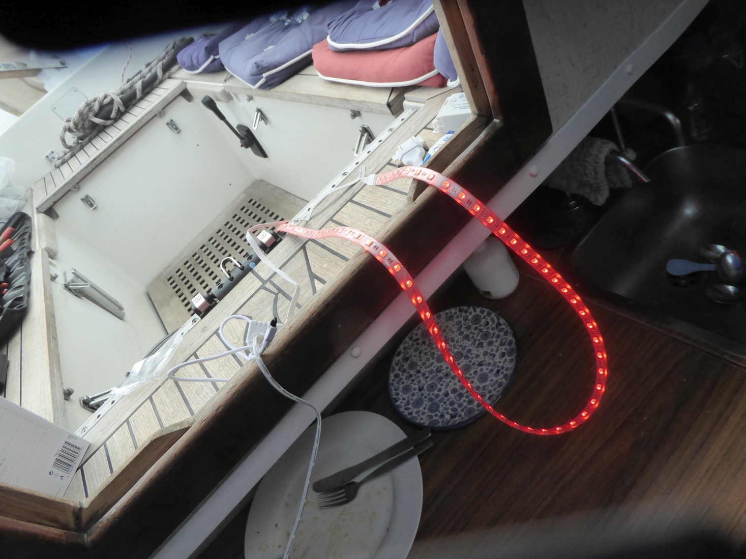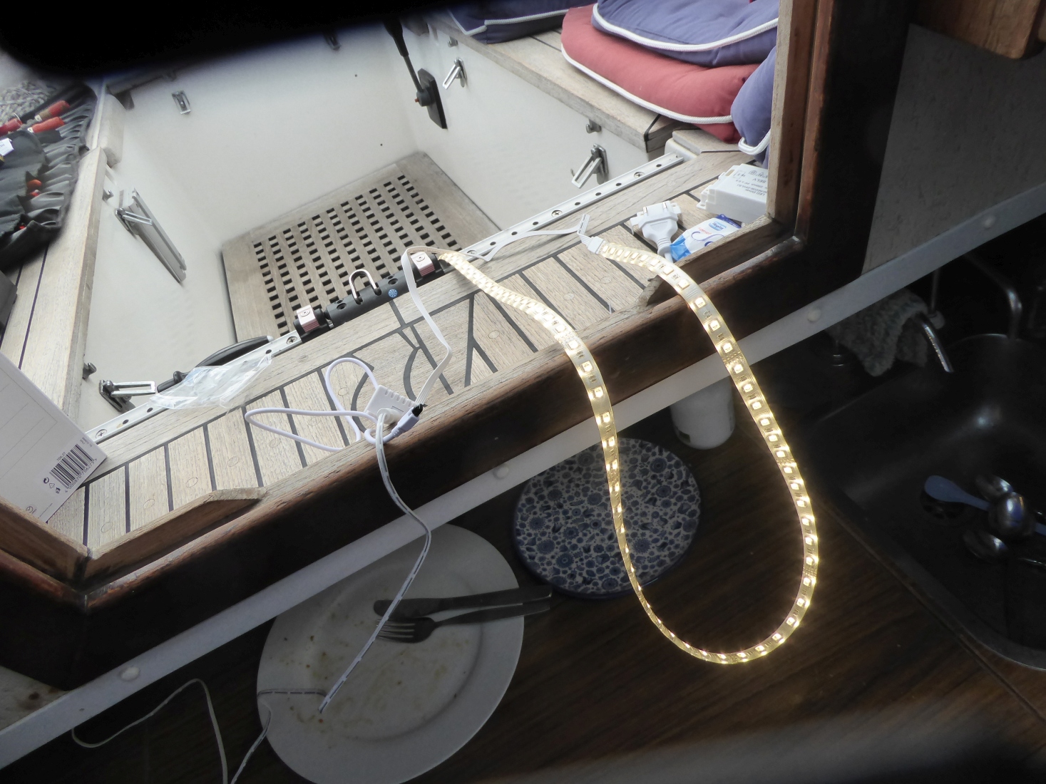 Als nächstes packe ich das LED-Band aus, dass ich unter dem Niedergang
