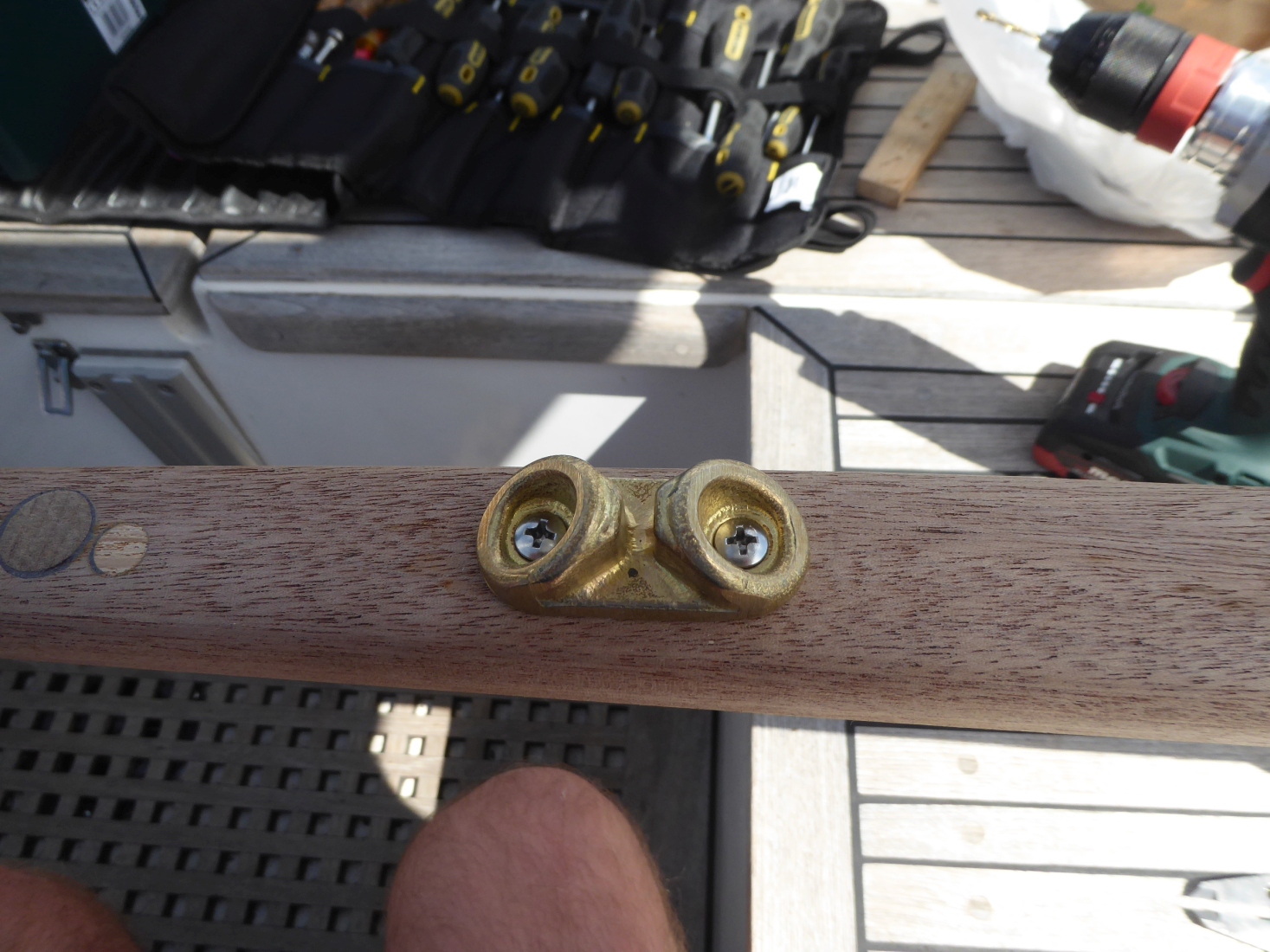 ich lediglich zwei Blöcke mit Flaggenleine an den Augbolzen an, Bohre