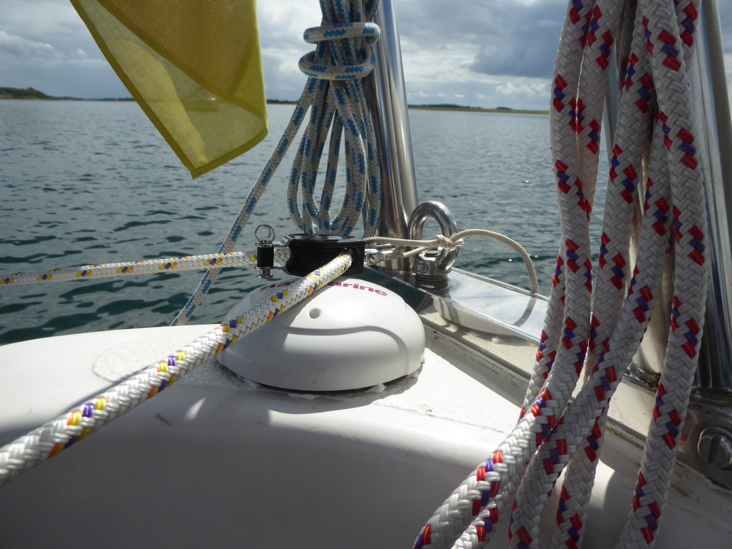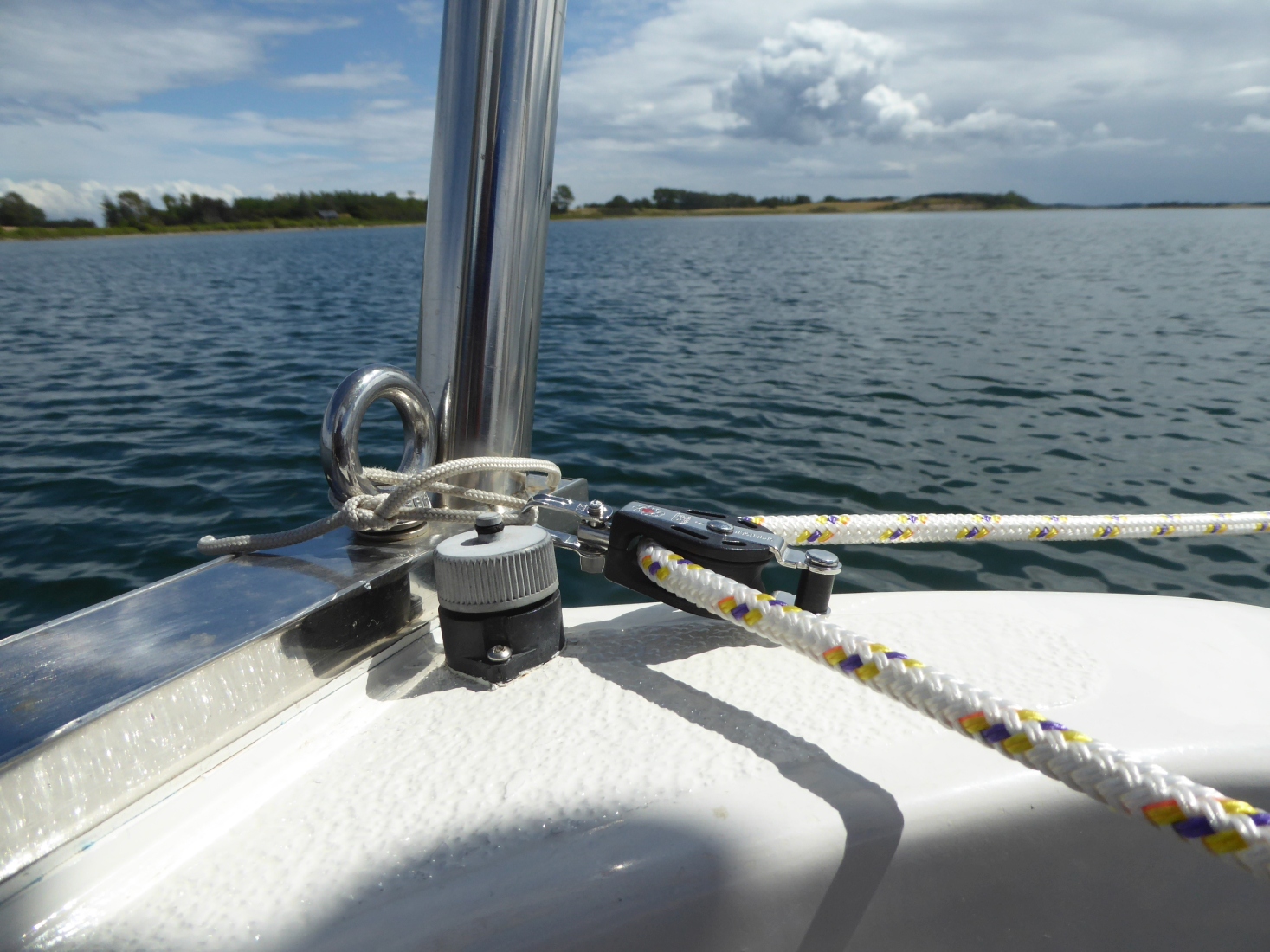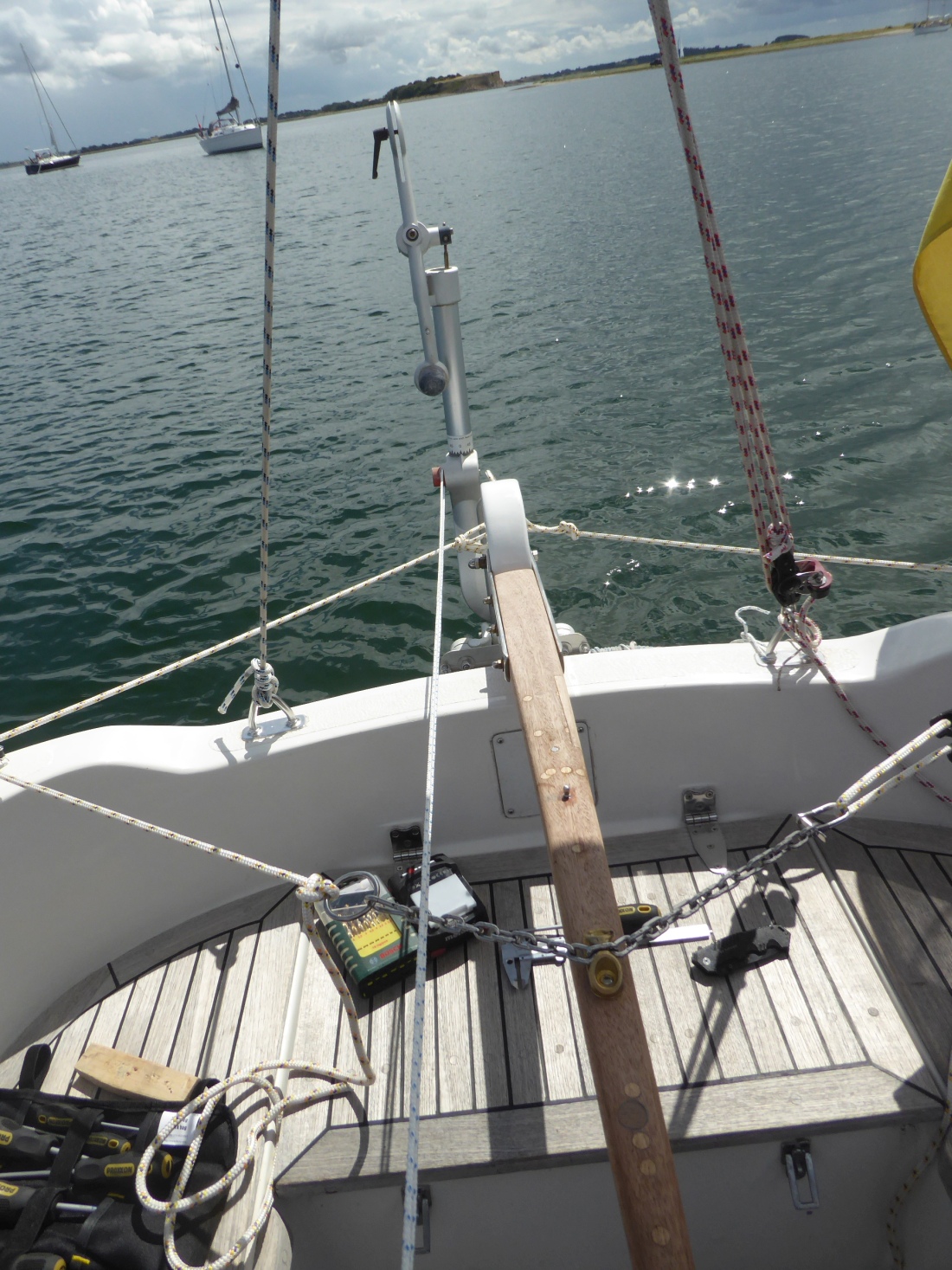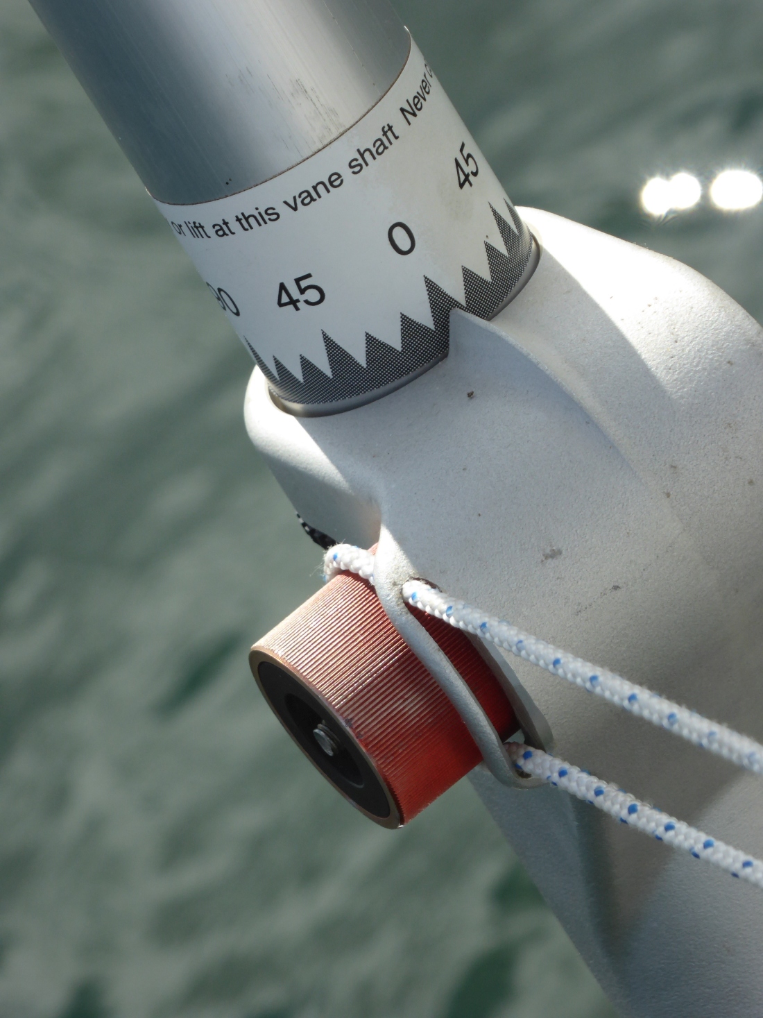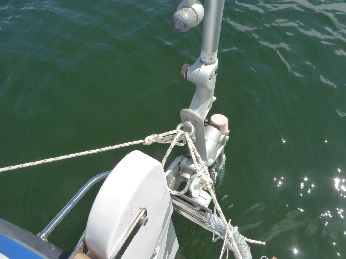Zum Hochklappen des Pendelruders muss ich die Backbordseite der Leine