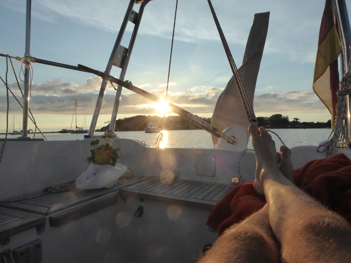 Das Ankermanöver fahre ich unter Segeln. Lautlos gleite ich zwischen