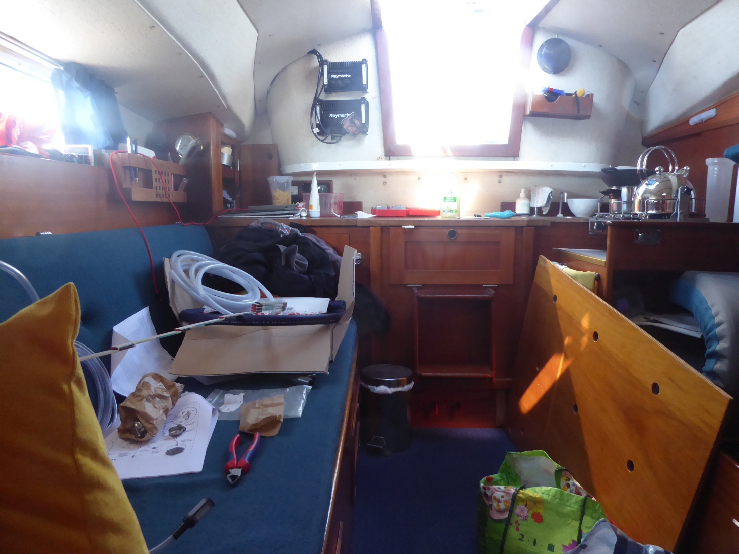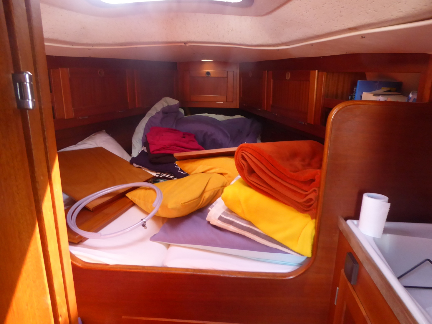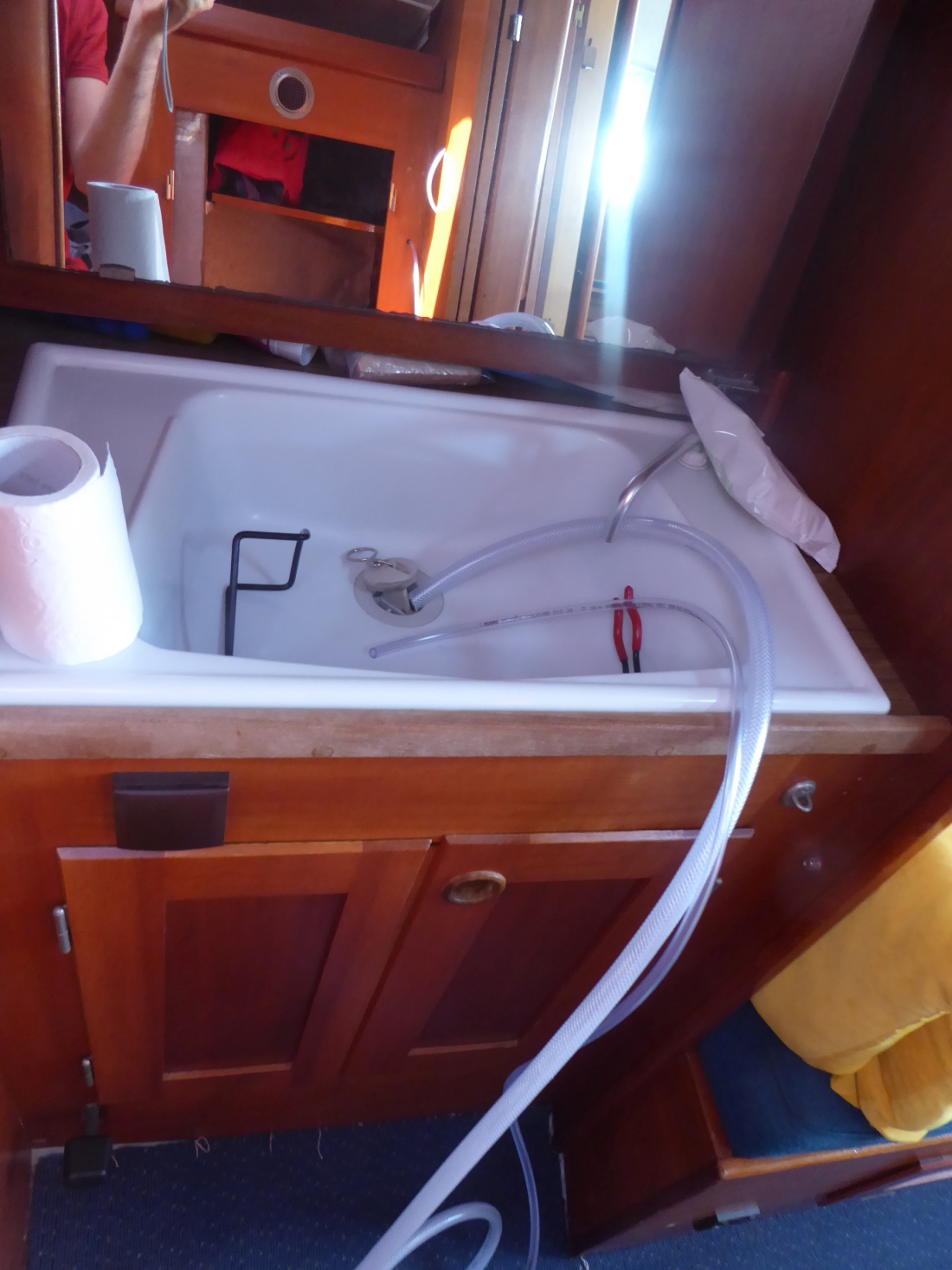 Jetzt kann das Wasser halt durch das Waschbecken im Vorschiff