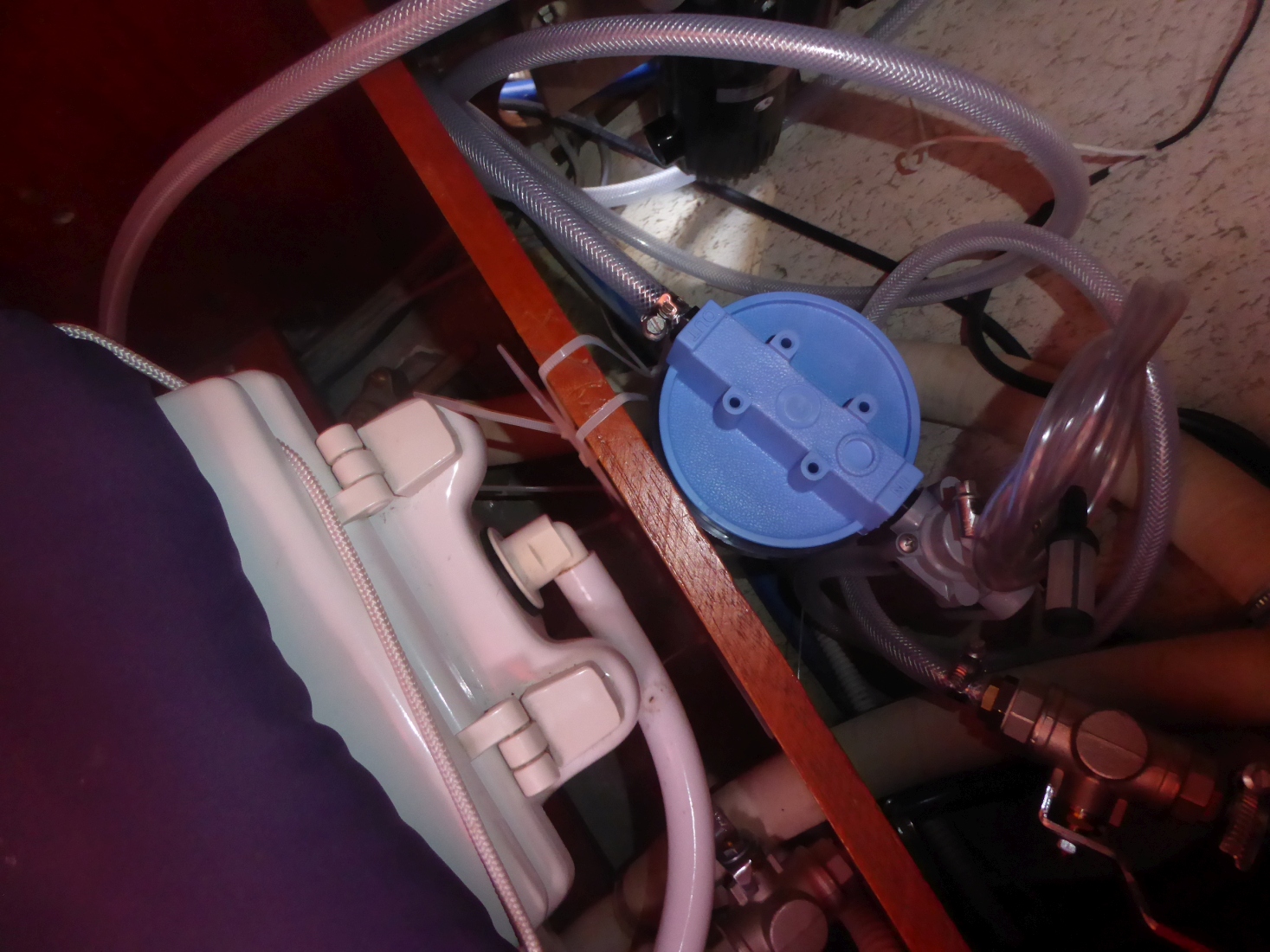 Der Vorfilter ist erstmal nur mit Kabelbindern am Schott fixiert.