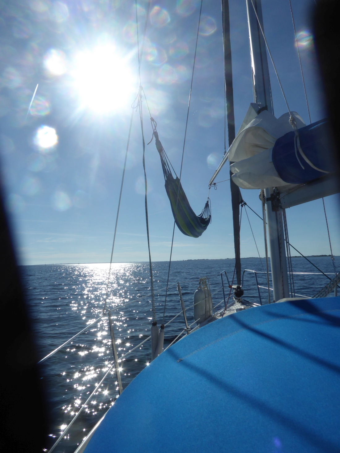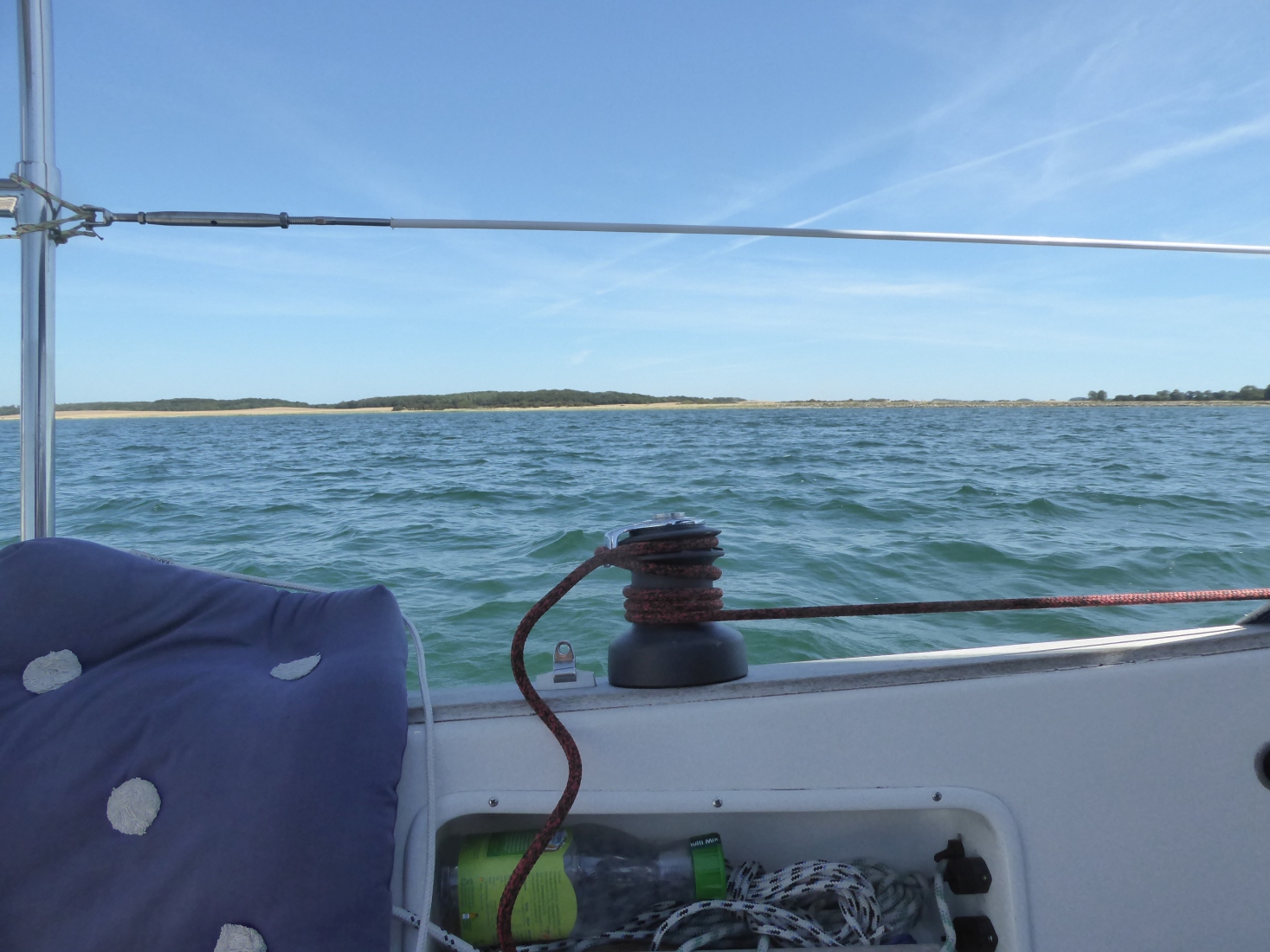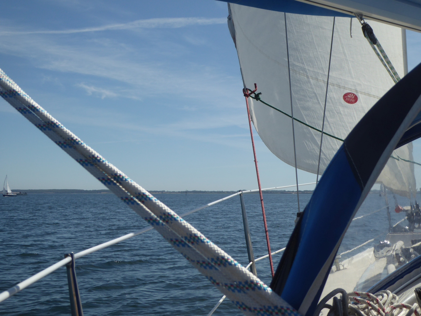 leichter Südwest. Um halb zwölf setze ich die Segel und nehme den