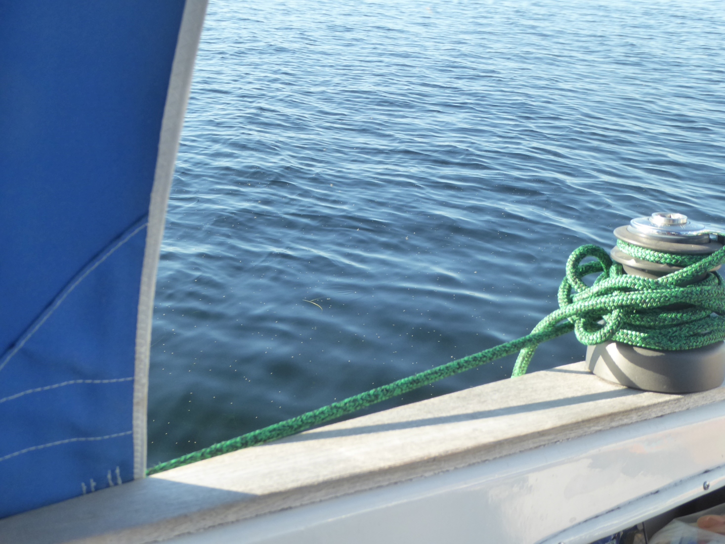 Anker hoch. Nach einer Viertelstunde ist der Wind ganz weg. Eine