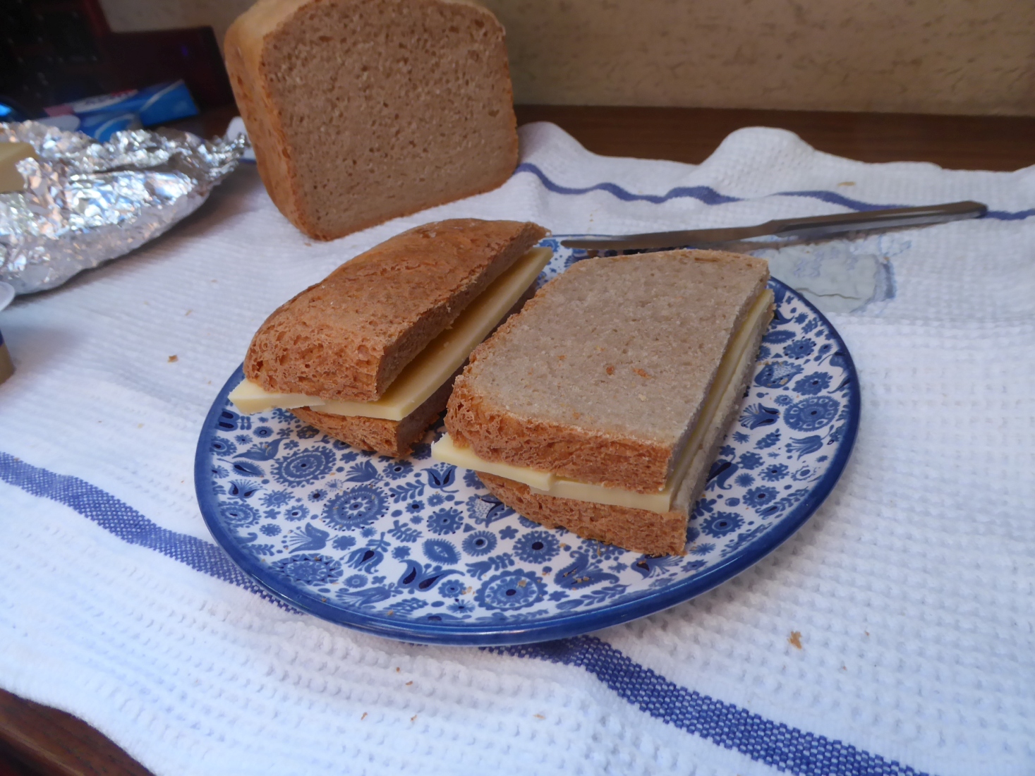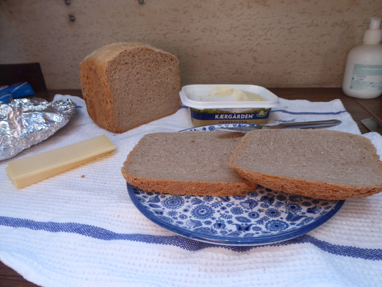 Donnerstag und Freitag hatte ich nach der Arbeit noch ein Bananenbrot und eine Backmischung Bauernbrot im Brotbackautomaten gebacken. Das Brot schmiere ich mir für unterwegs und lege ohne Frühstück um kurz vor neun ab.