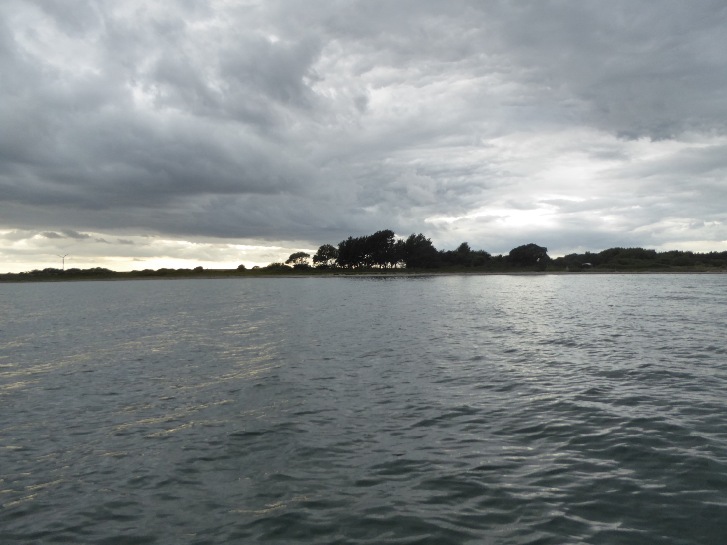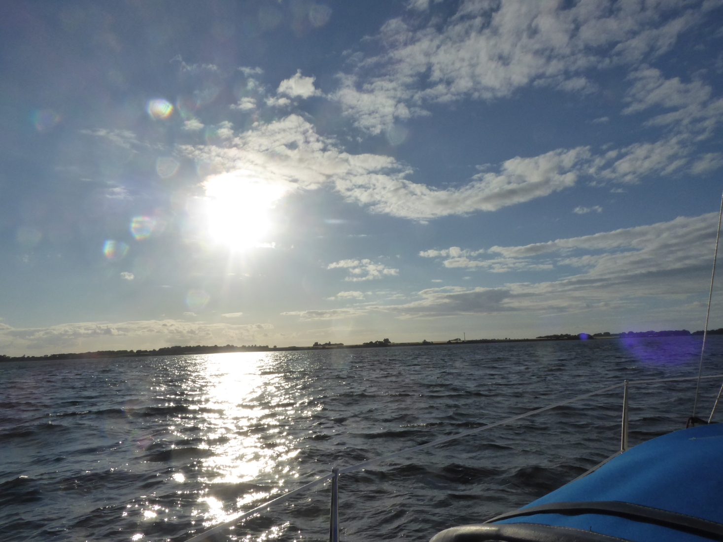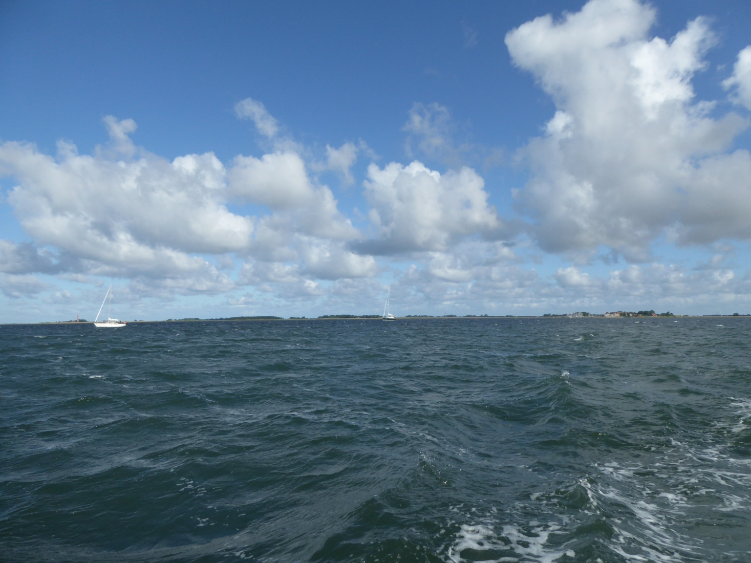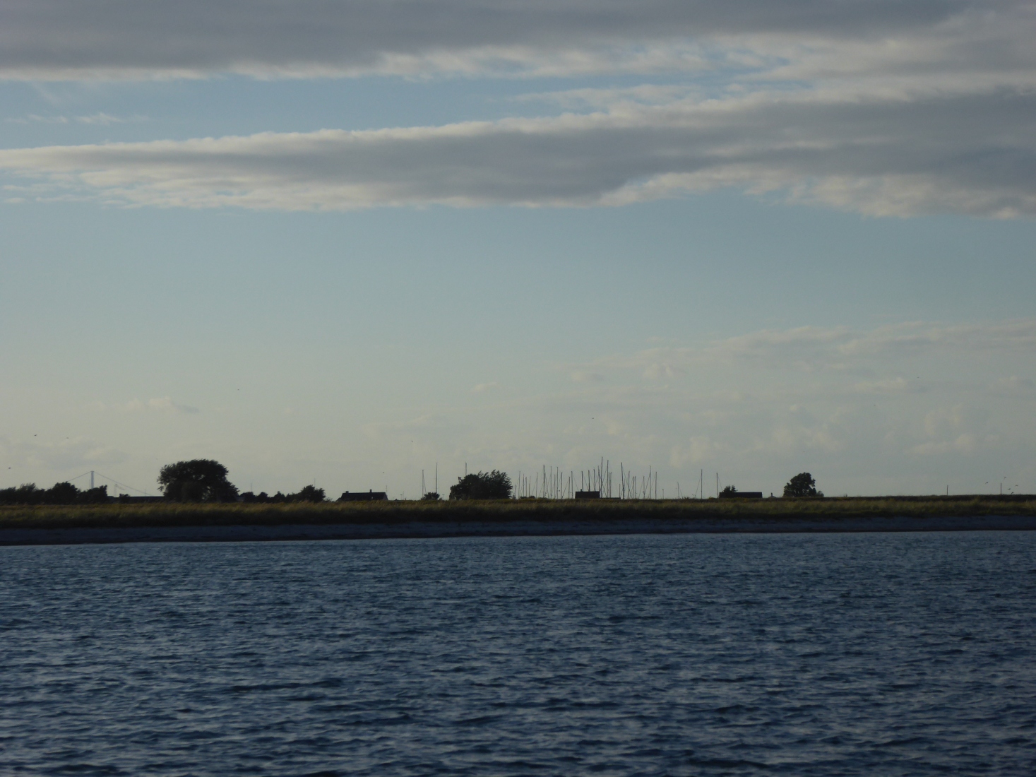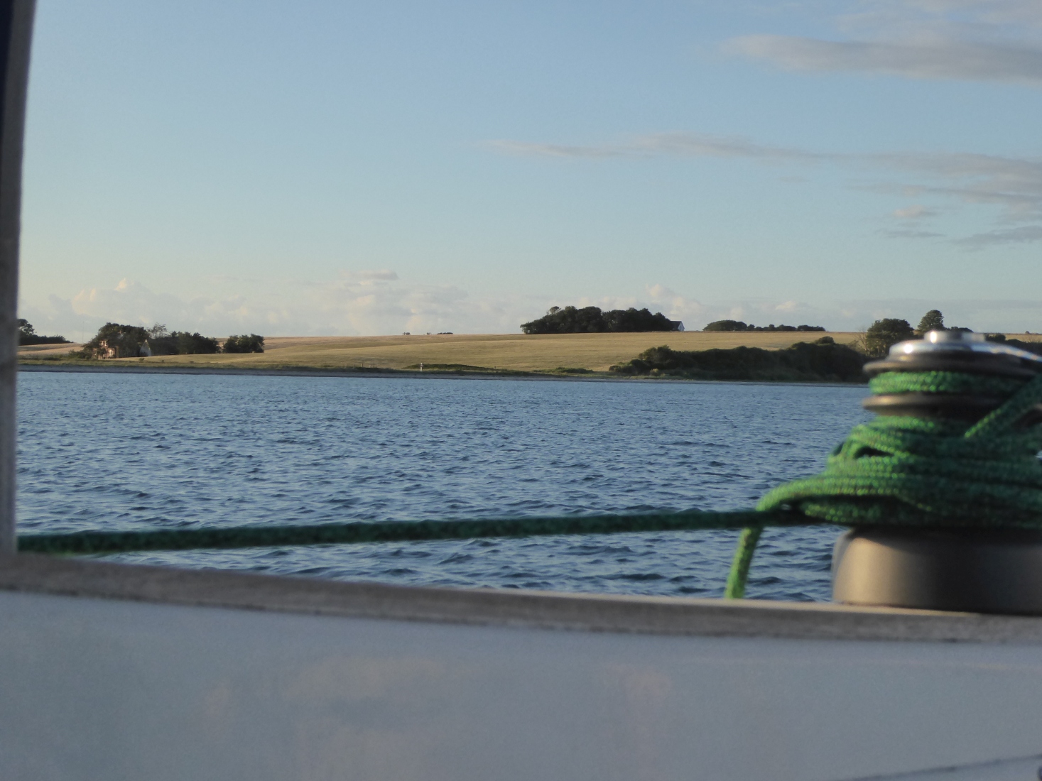 Am Ankerplatz auf der Ostseite Omøs bin ich alleine. Den Masten nach zu urteilen, die auf der anderen Seite der Insel zu sehen sind, ist der Hafen allerdings gut besucht. Im Schutz von Omø ist von dem Wind kaum noch etwas zu merken, es ist nur leider etwas schaukelig. Der Schwell aus dem Langelandbelt zieht um die Südseite der Insel herum und erreicht mich in meiner Ankerbucht direkt von der Seite.