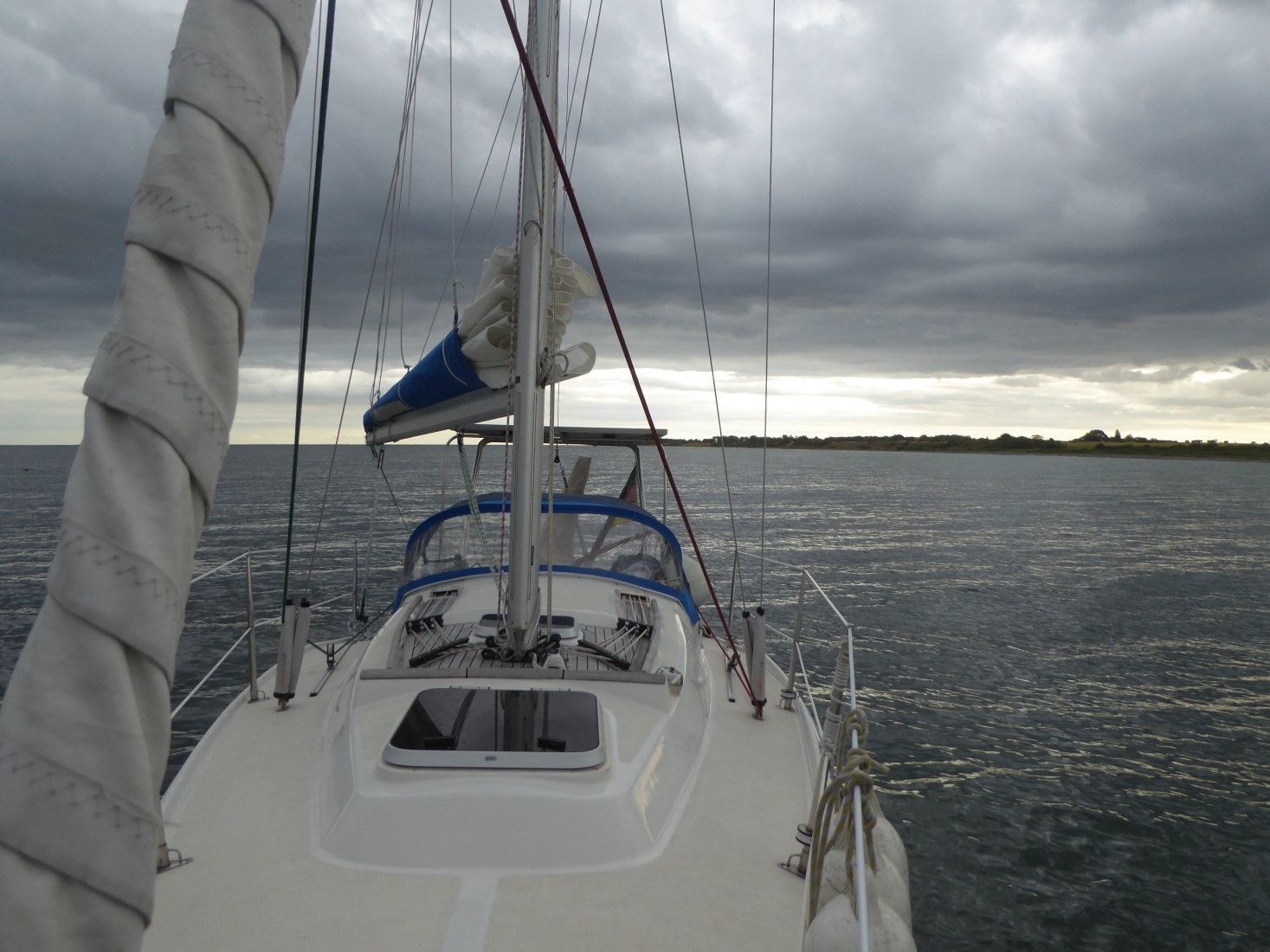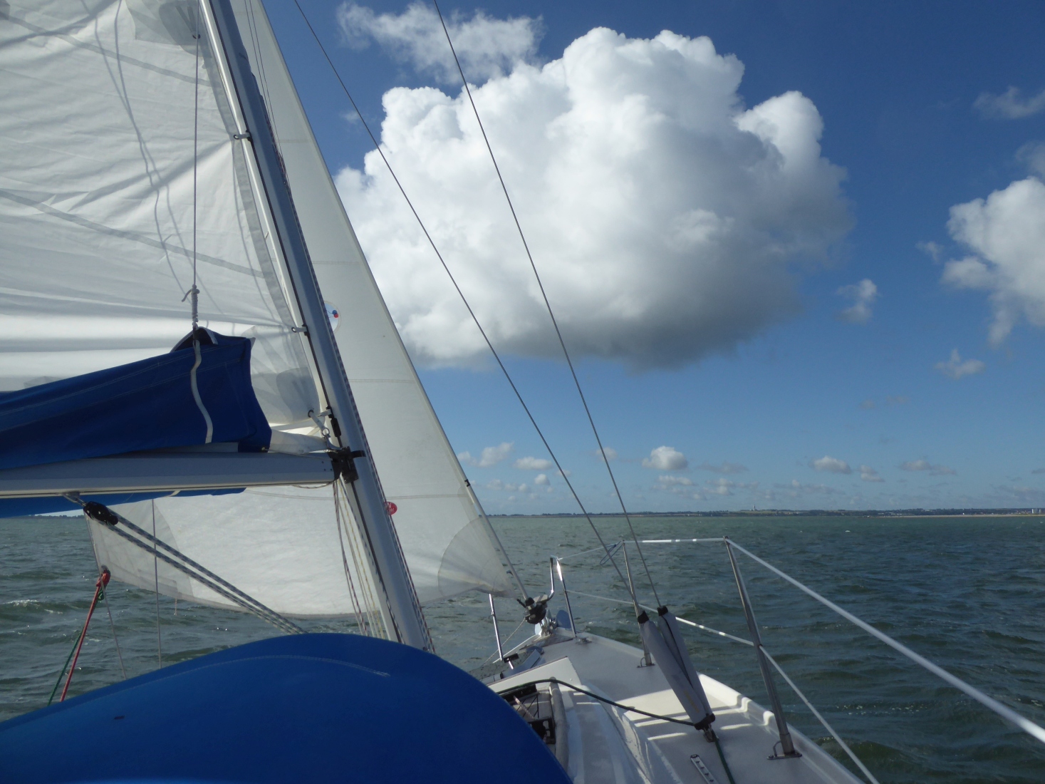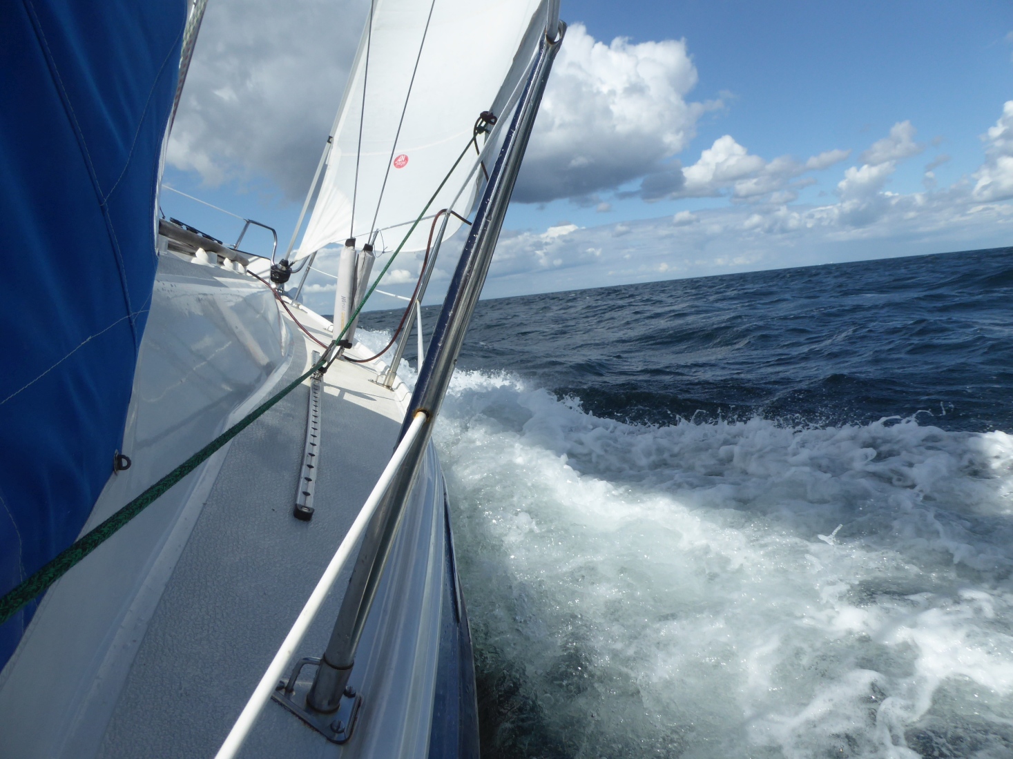 Kurz später steht auch die Fock. Der Wind kommt direkt aus West