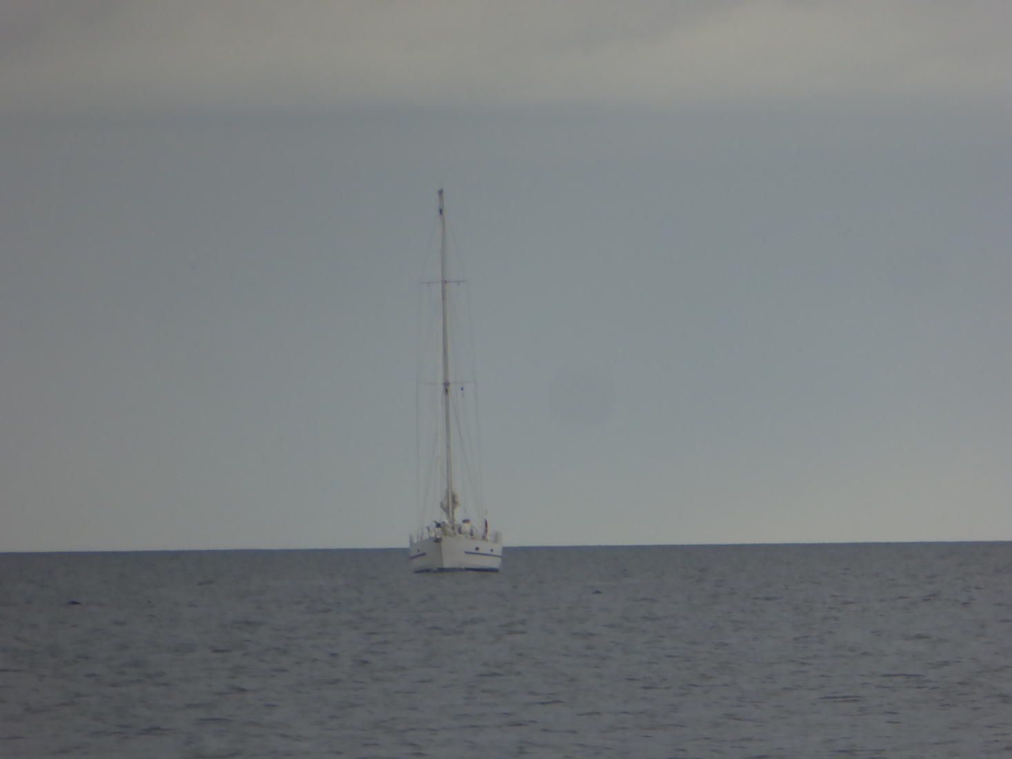 großes Motorboot und ein Segler kommen an meinen Ankerplatz heran,
