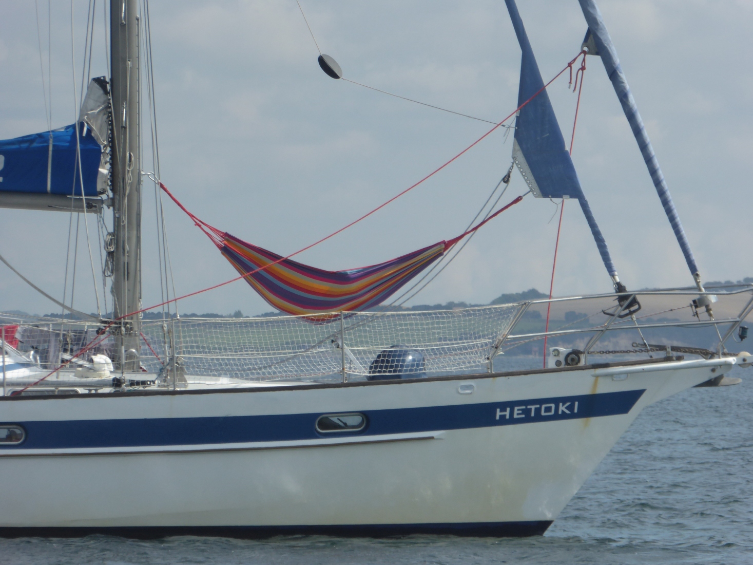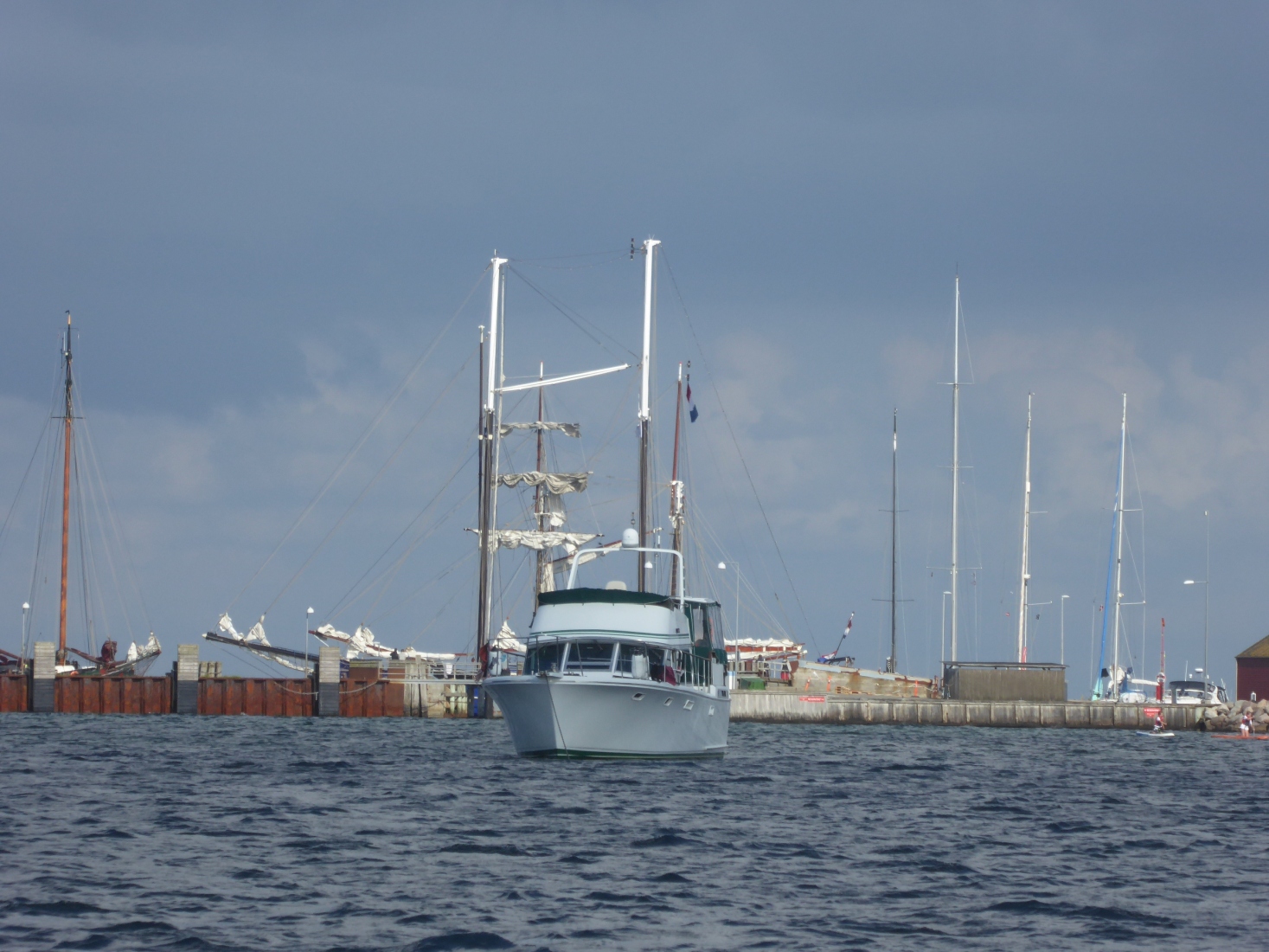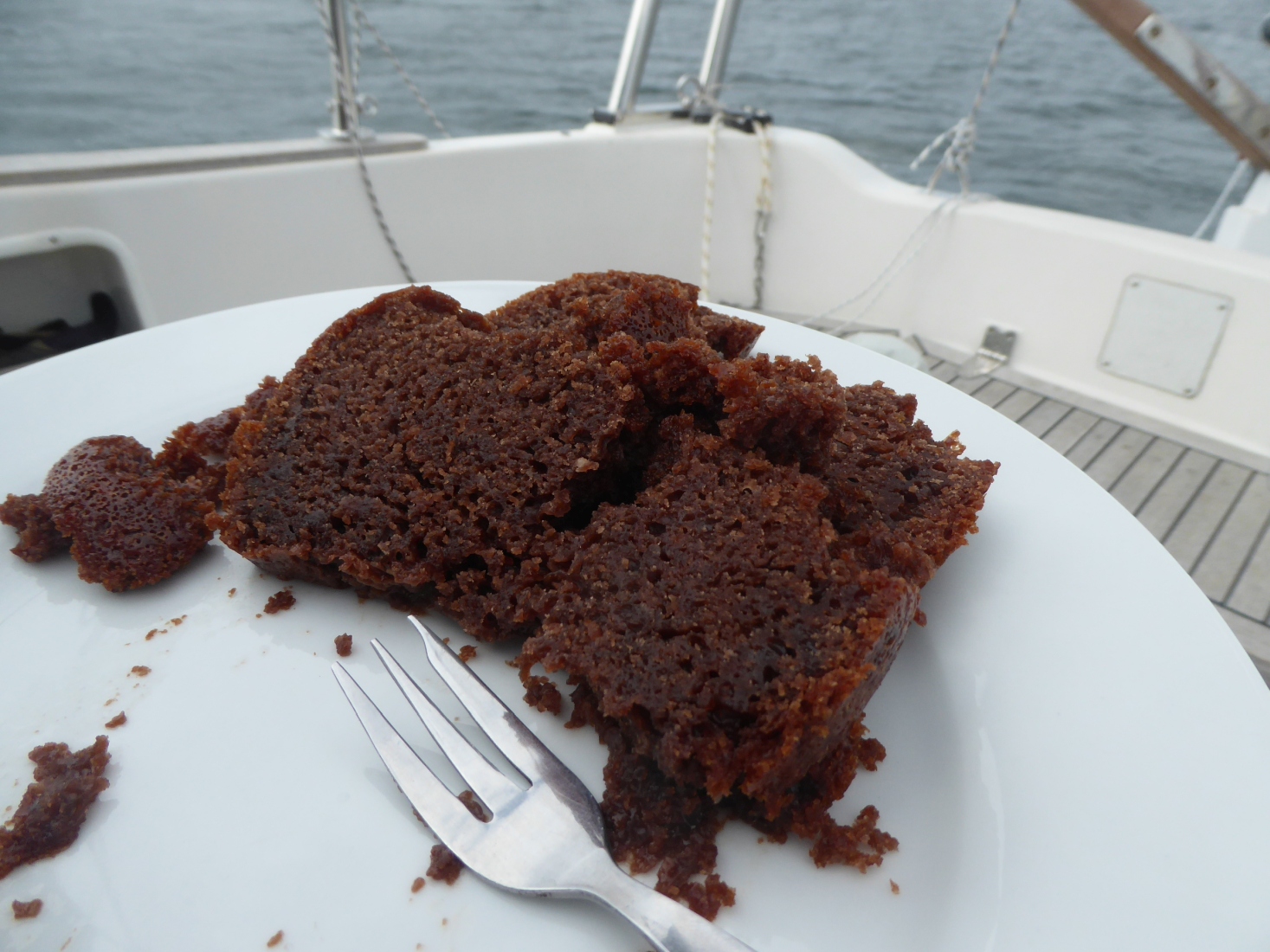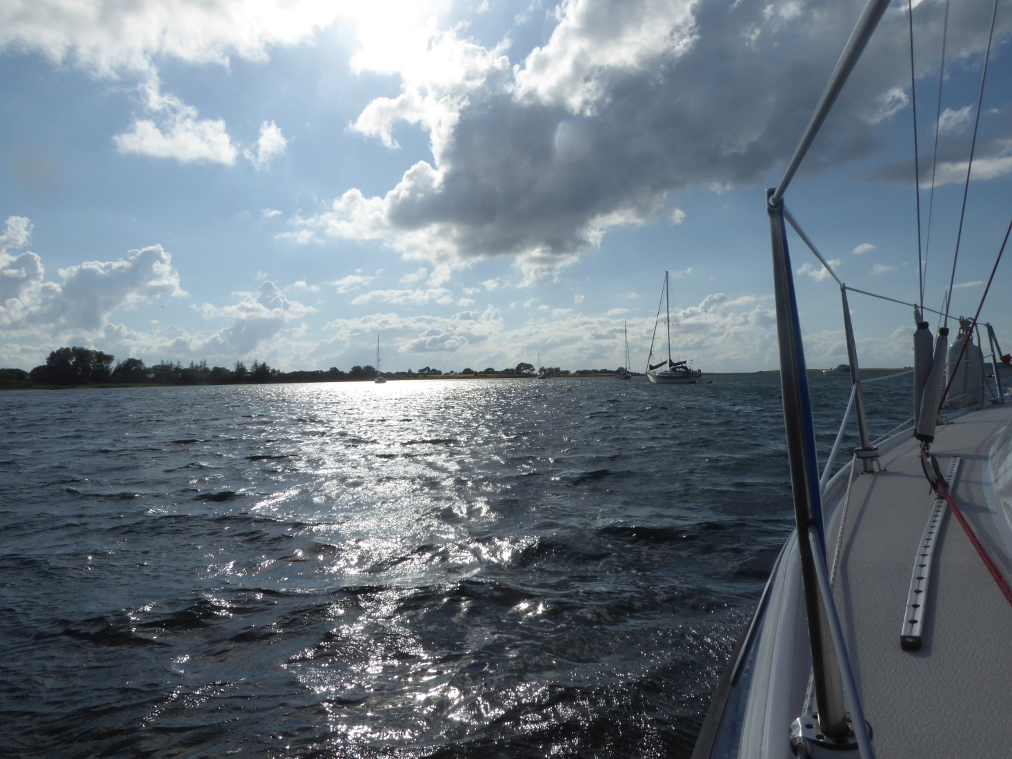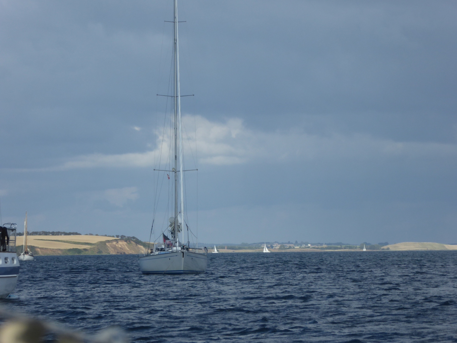 Bis Mittag nur Regen. Bleibe mit meinem Buch in der Koje. Um vierzehn Uhr für eine halbe Stunde Gewitter mit Platzregen und viel Wind aus West statt Süd. Später immer wieder kurze Schauer. Am Abend etwas Sonne.