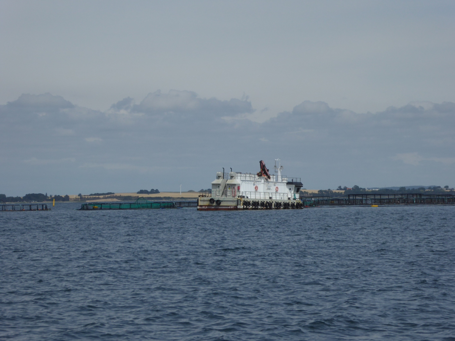 Musholm ist durch die gewaltigen Lachszuchtanlagen nicht mehr ganz so gemütlich wie es wohl einst war. Außerdem machen die gierigen Möwen einen Heidenlärm. Ein paar Möwen wollten sich auch die Kücken einer Ente schnappen, aber die Entenmama hat ihre kleinen wacker gegen vier, fünf der Biester verteidigt.