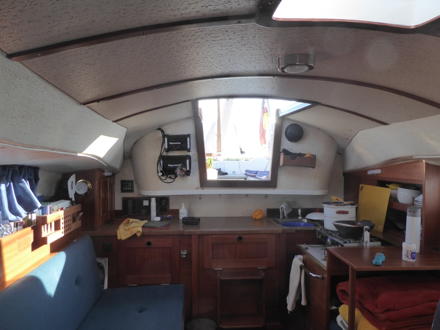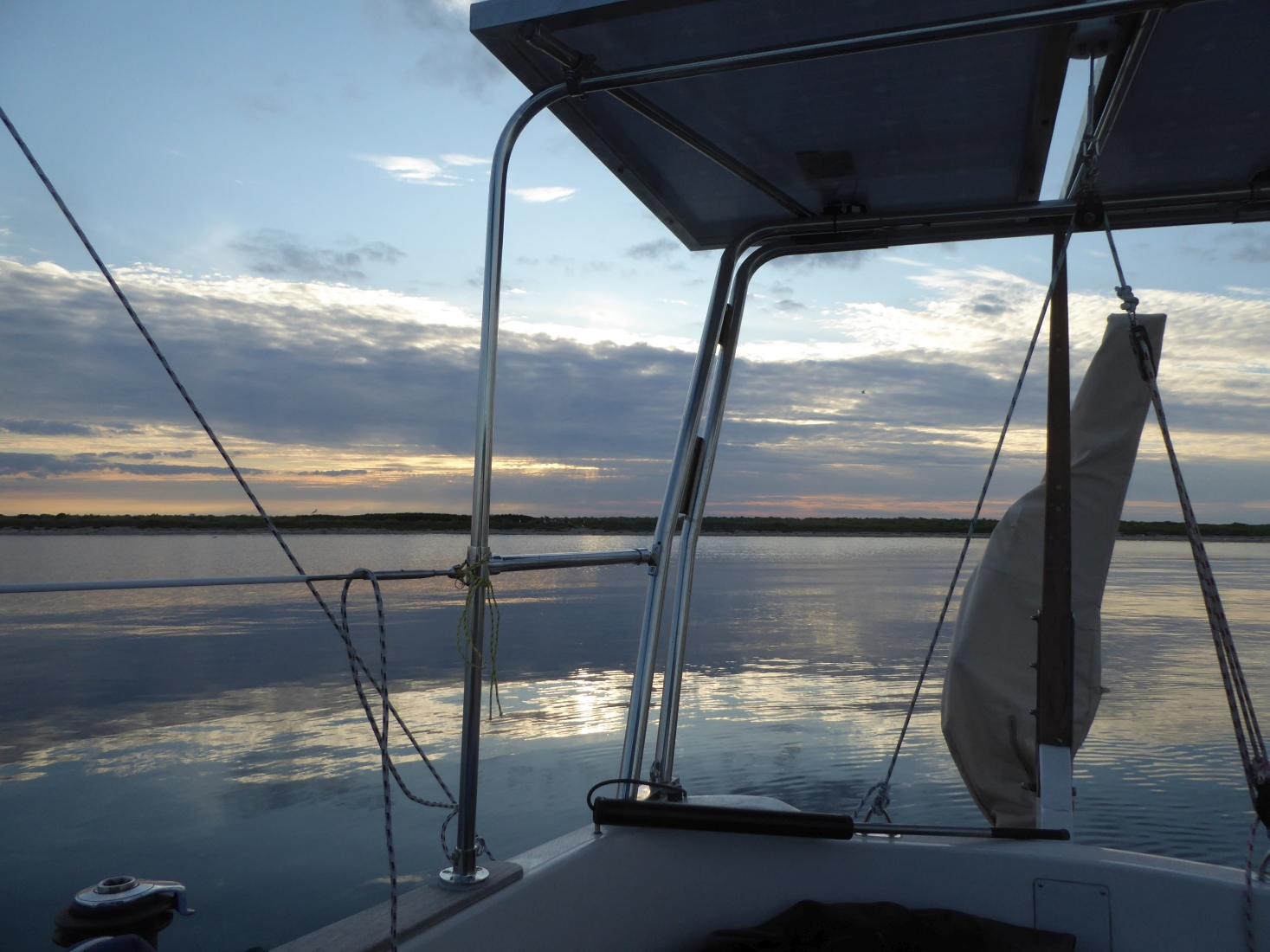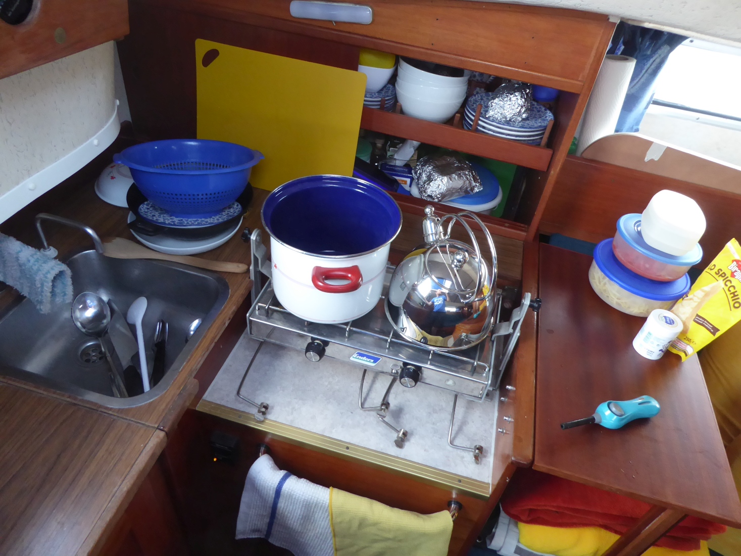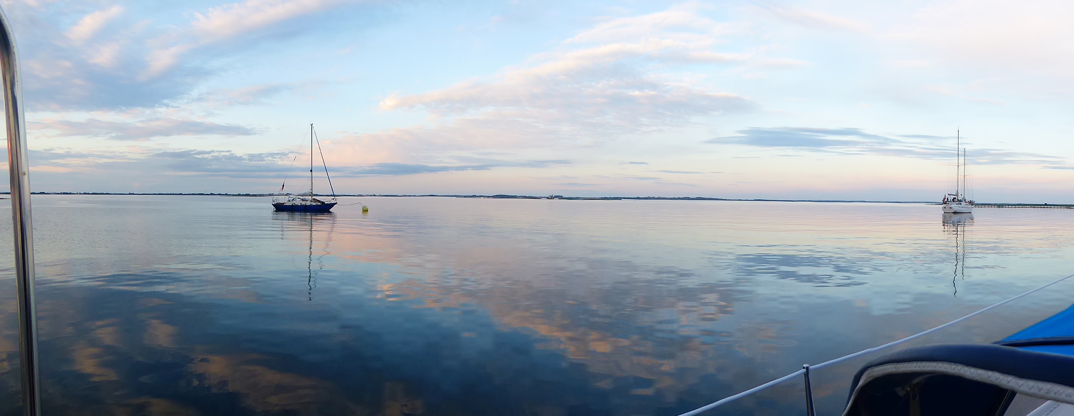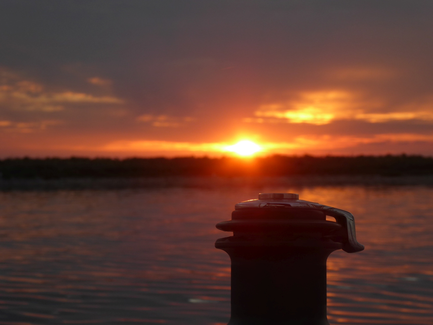Hier scheint endlich wohlig warm die Sonne. Ich genieße das schöne Wetter lesend in der Plicht. Abends gibt es Linguine mit Paprika-Tomatensoße.