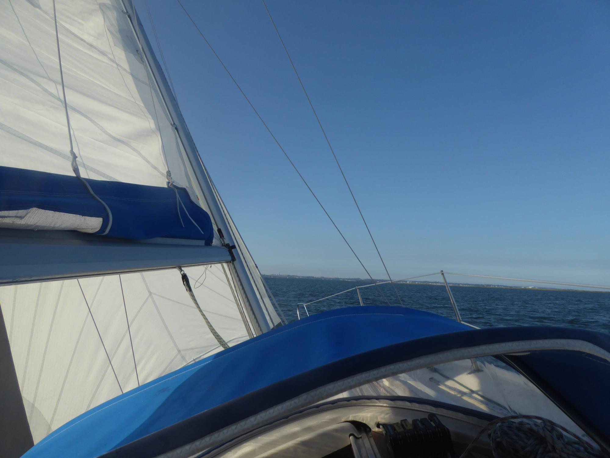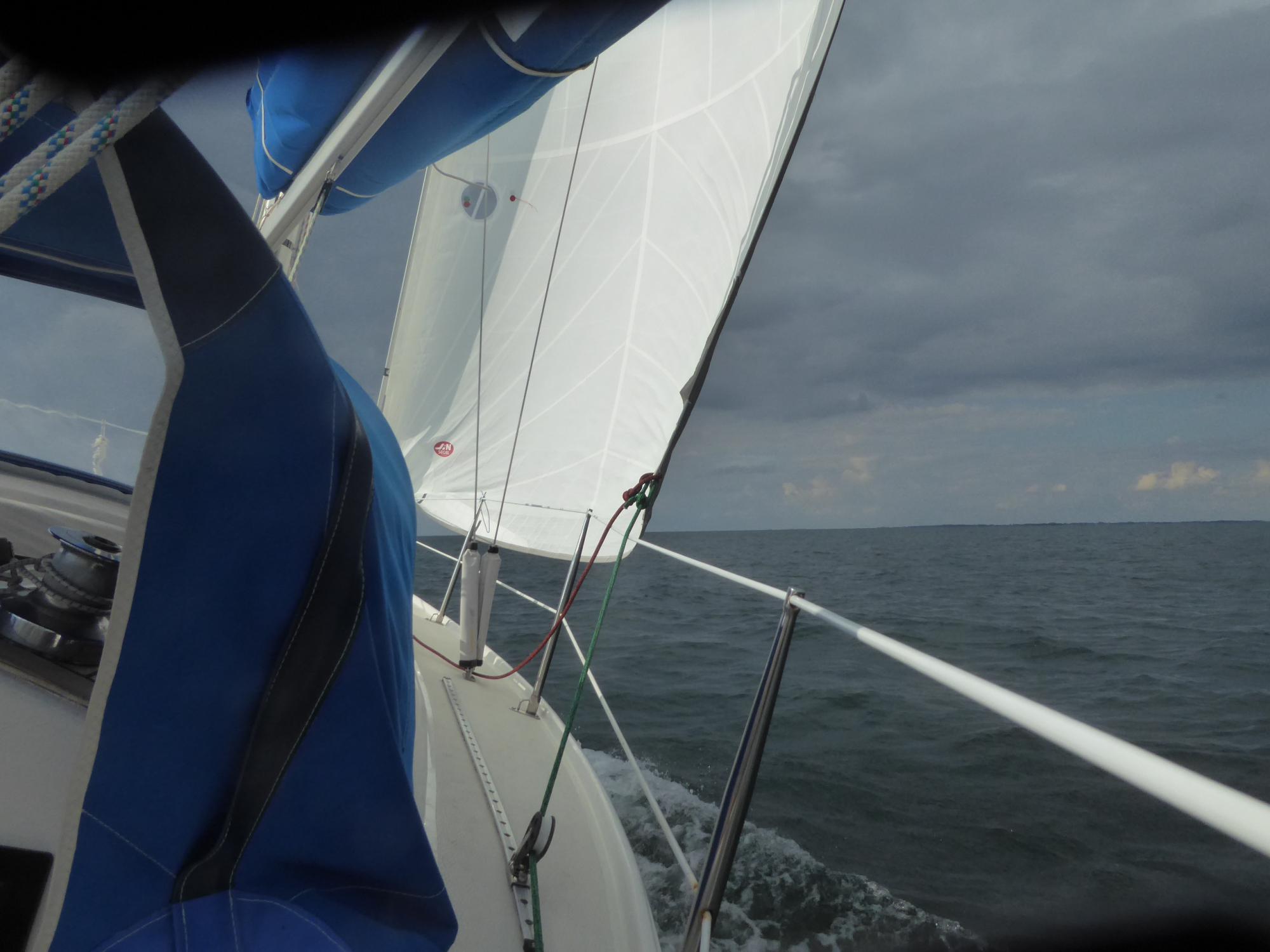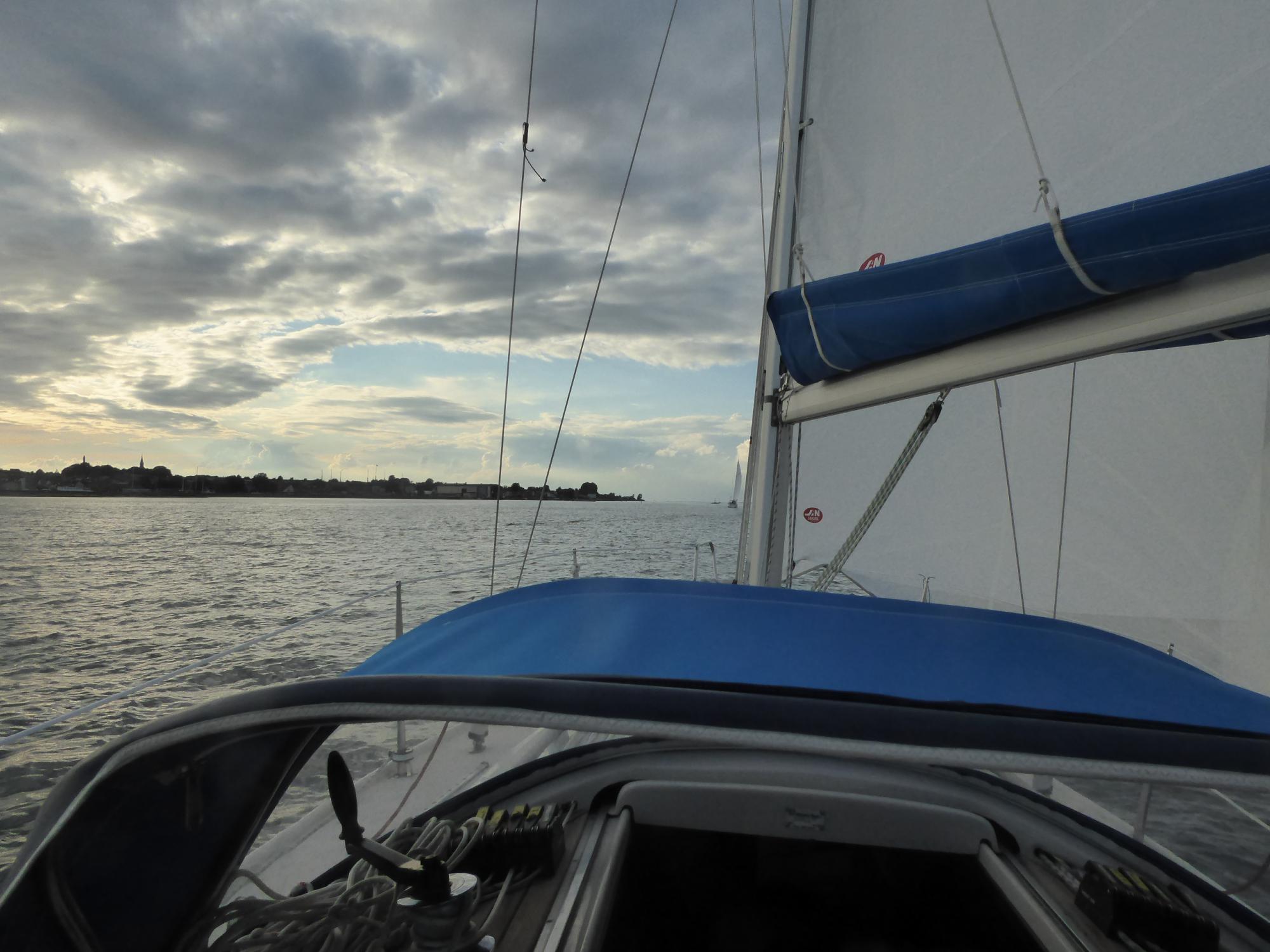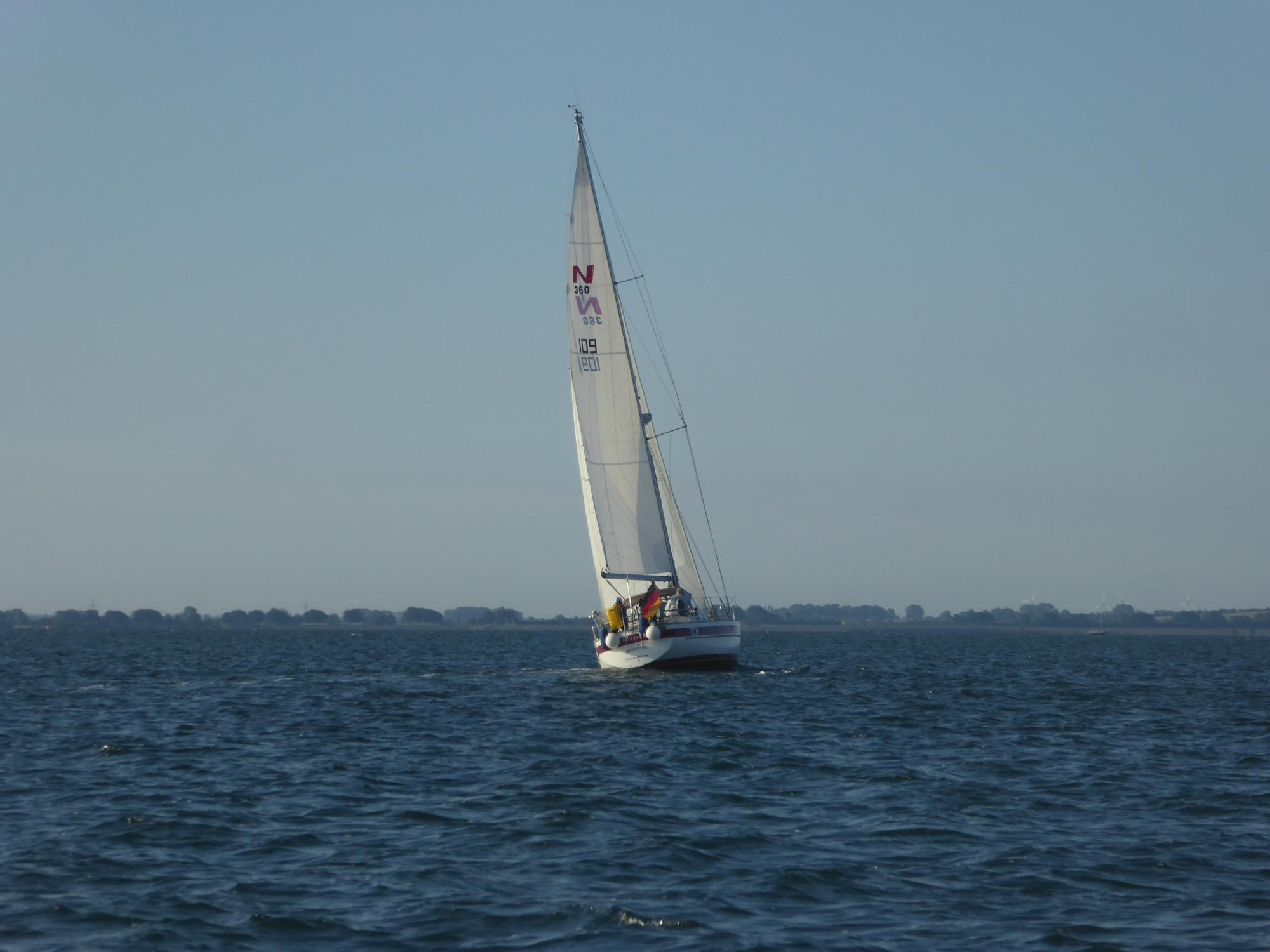 Erst ein gutes Stück an Fehmarns Westküste nach Norden entlang lässt der Sund mich los und ich kann wieder vernünftig segeln.