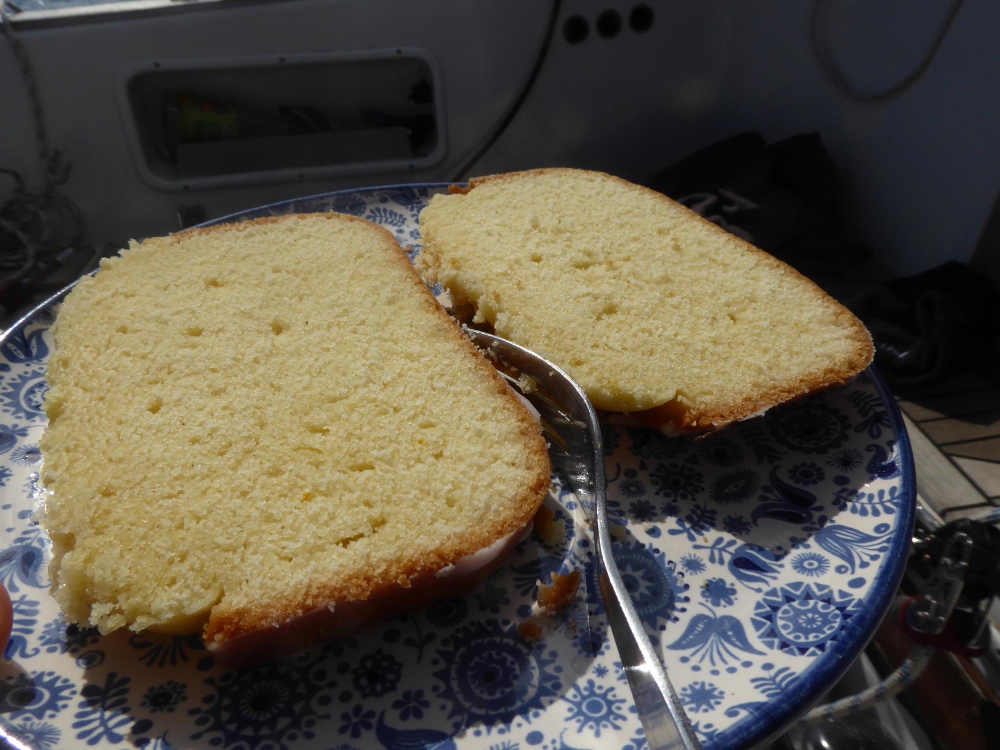 Der Wecker geht um sieben Uhr. Vorgestern hatte ich noch Roggenbrot und gestern Zitronenkuchen gebacken. Die ersten Scheiben schmiere ich mir für unterwegs und esse den Knust zum Frühstück während ich das Boot segelfertig mache.