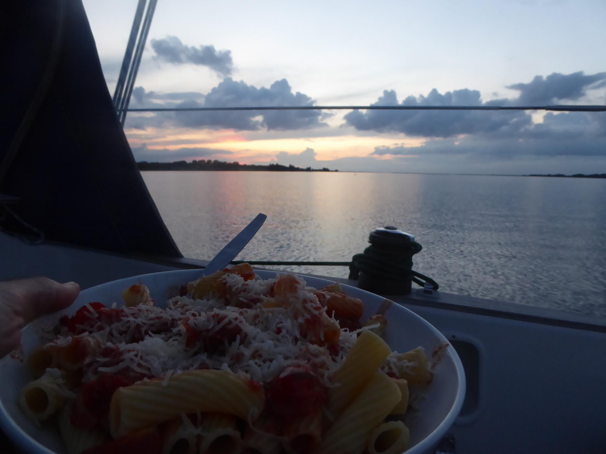 Nach dem Essen lese ich noch eine Weile im Cockpit und gehe gegen zehn Uhr müde in die Koje.