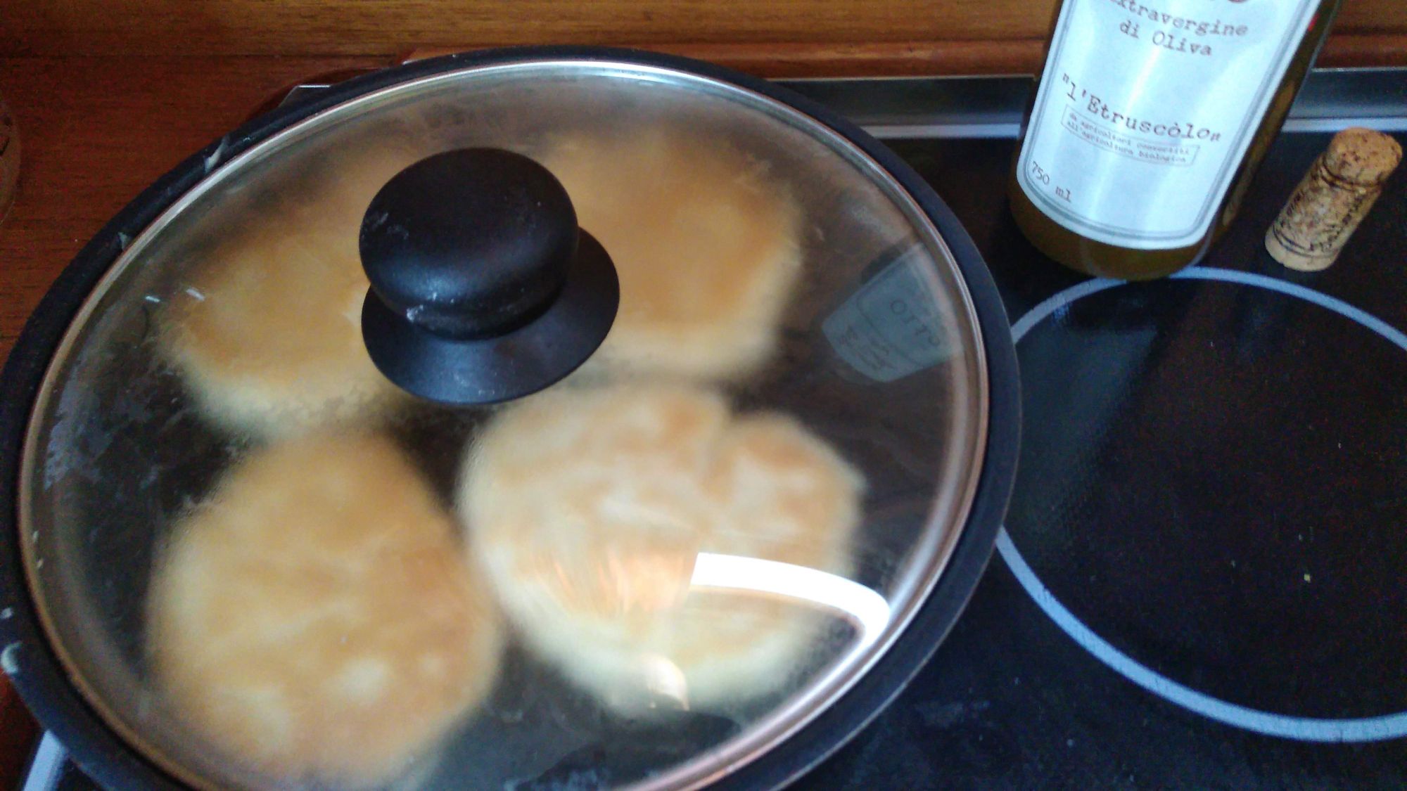 Zu Abend gibt es selbstgemachte Pizzabrötchen aus der Pfanne.