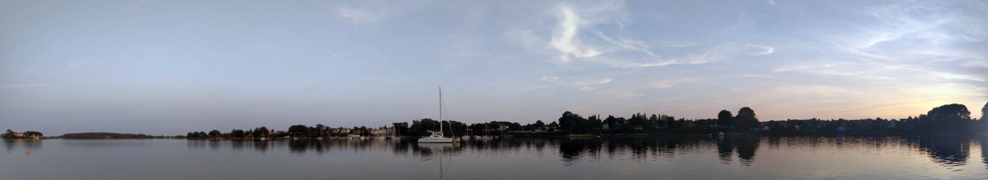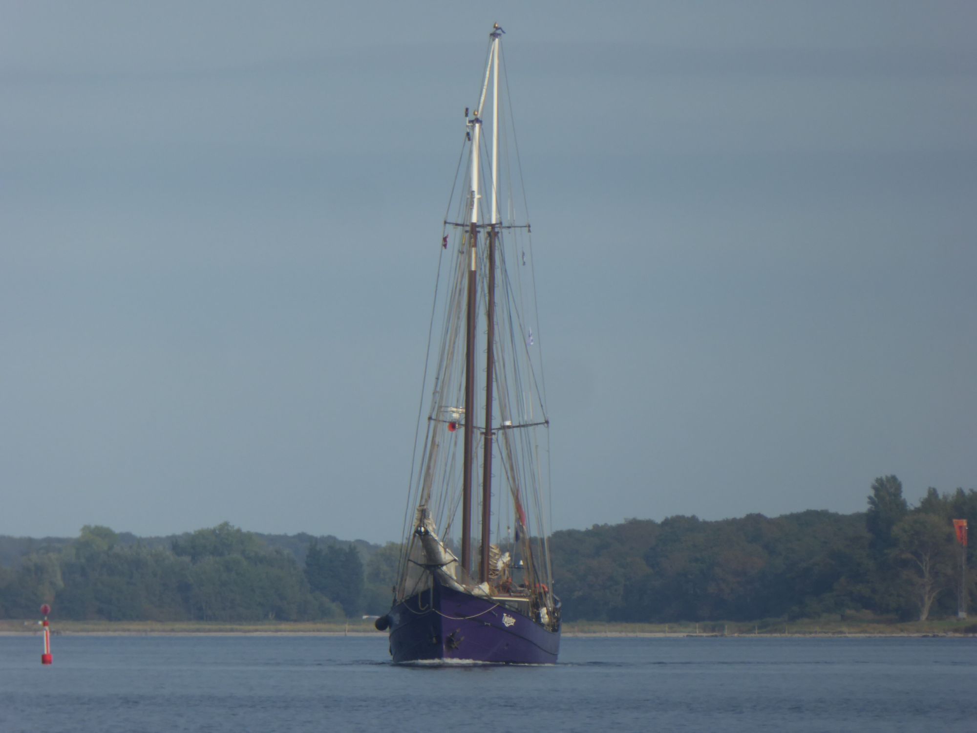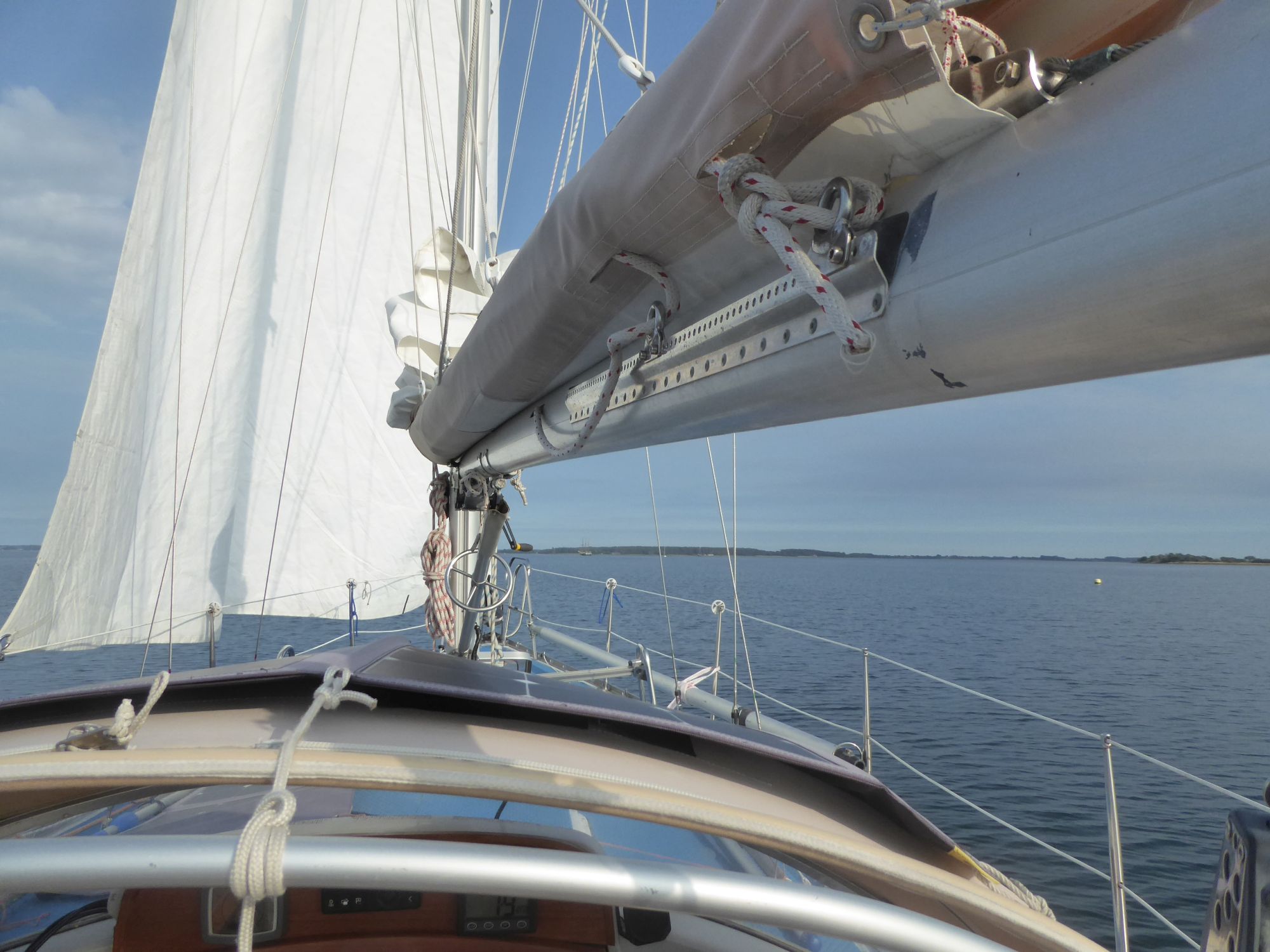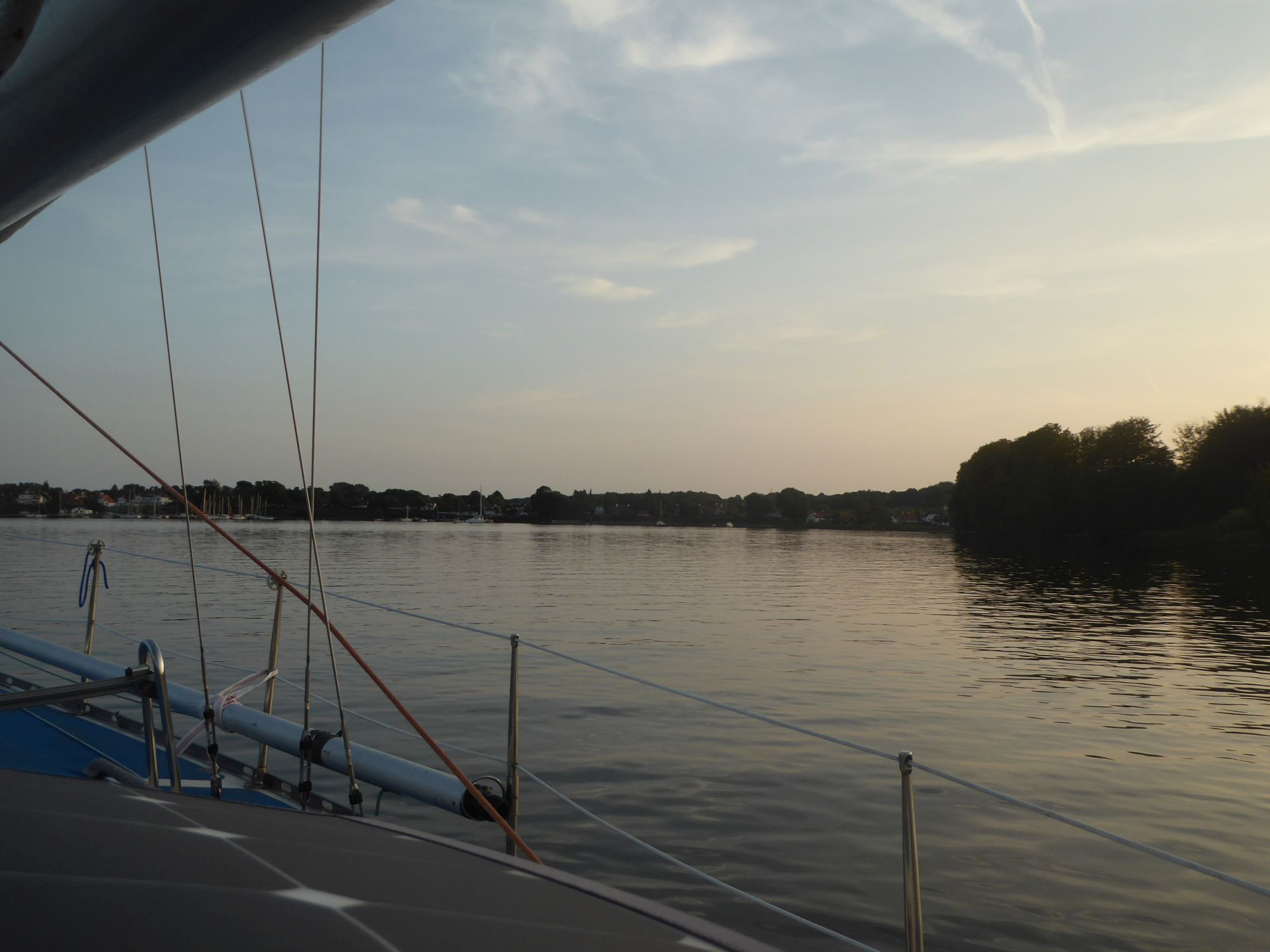 Mit schwächelndem Hauch schleiche ich mich nach Troense. Der Pinnenpilot hat echte Probleme, mit der geringen Geschwindigkeit umzugehen. Immer wieder schaukelt er sich auf und überkorrigiert weil die Kursveränderungen dem Gerät wohl zu langsam geschehen. Schließlich steuere ich überwiegend von Hand.