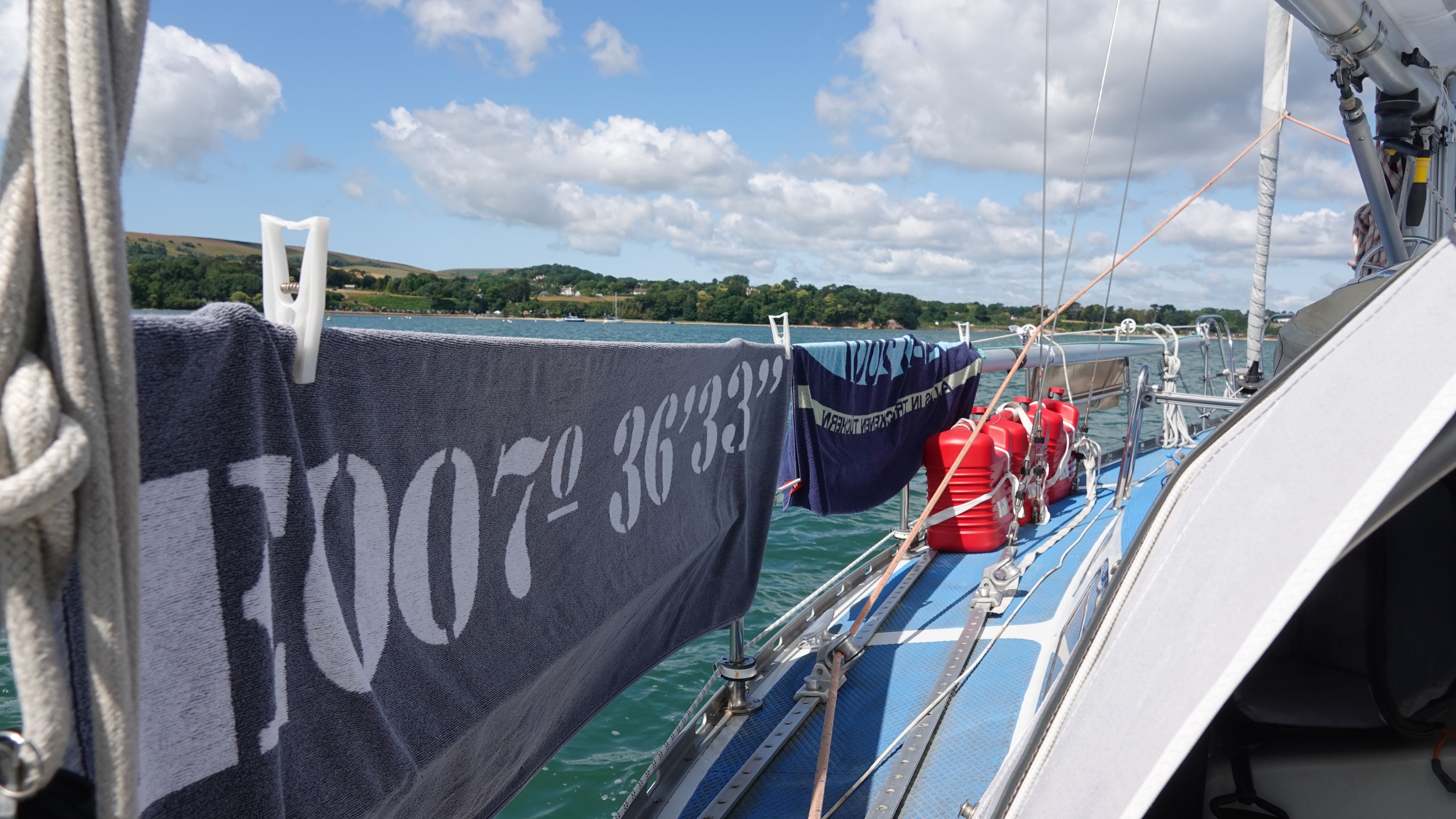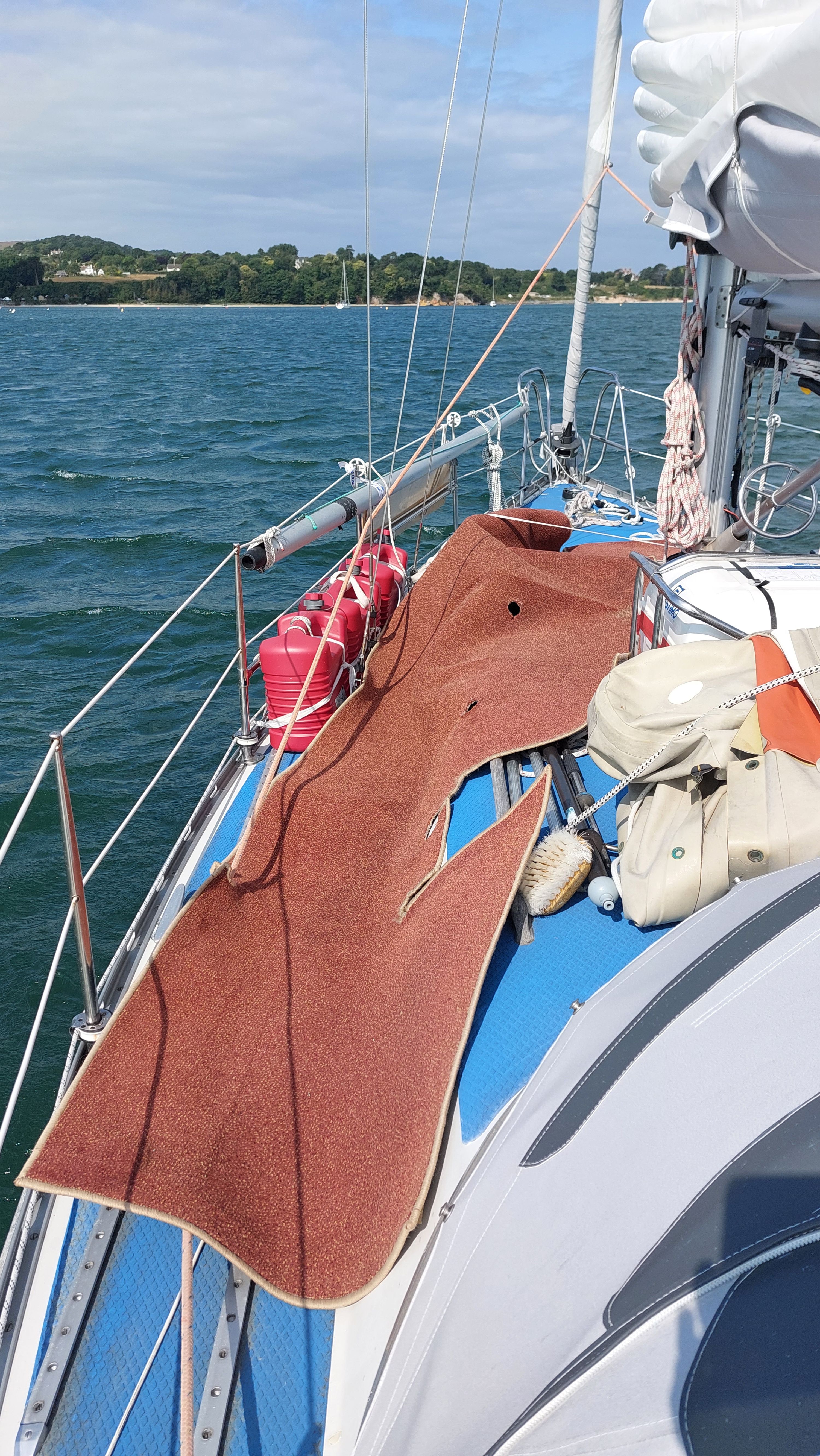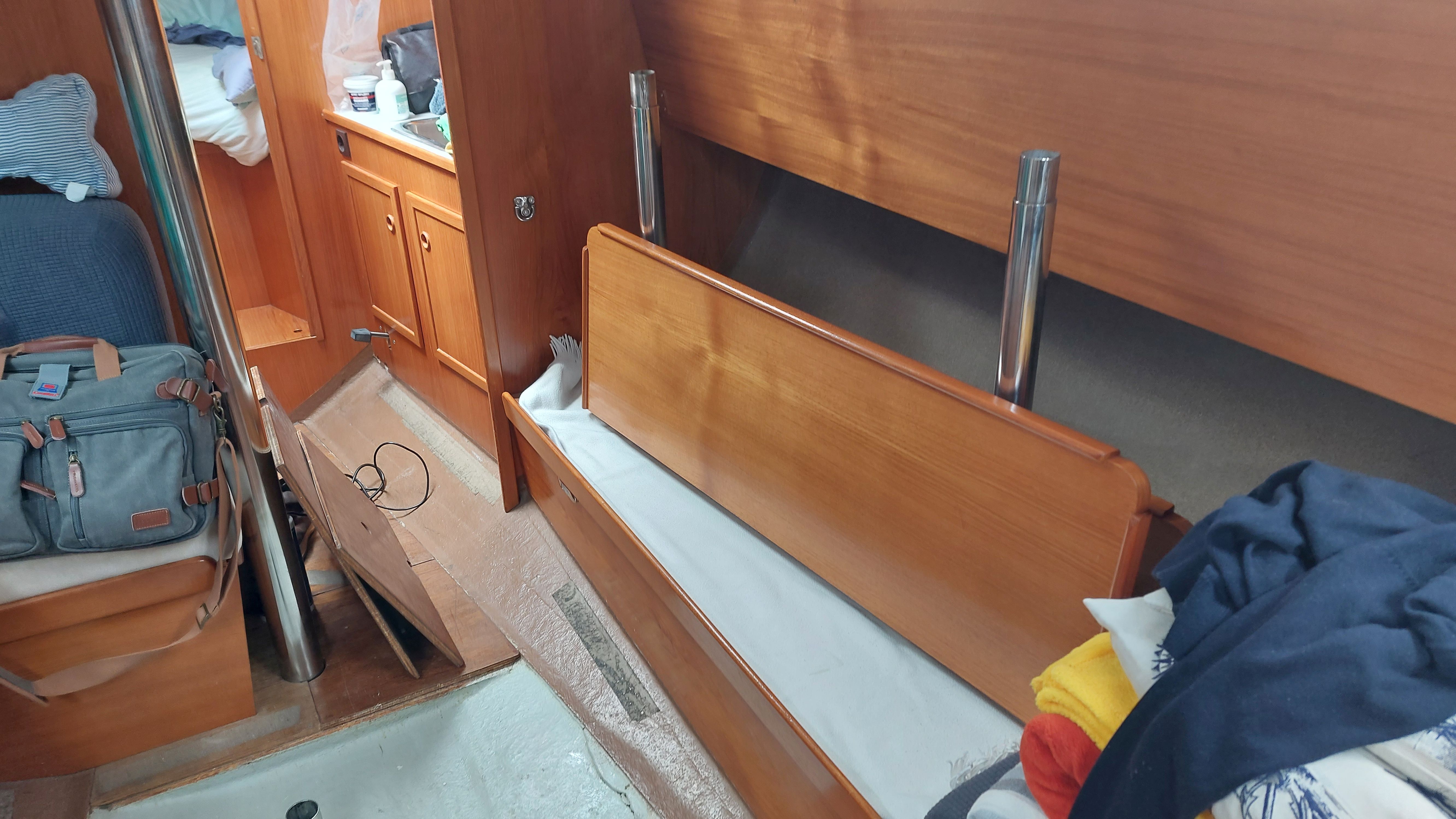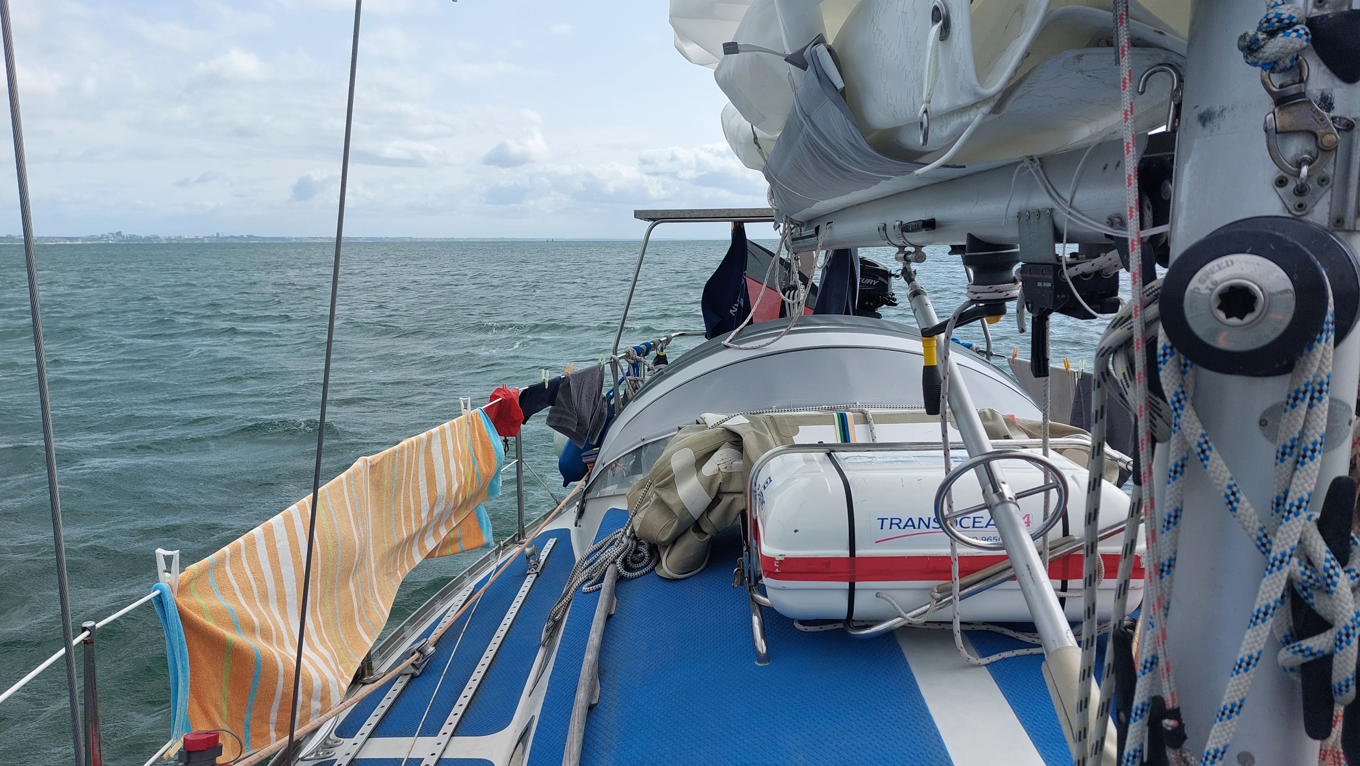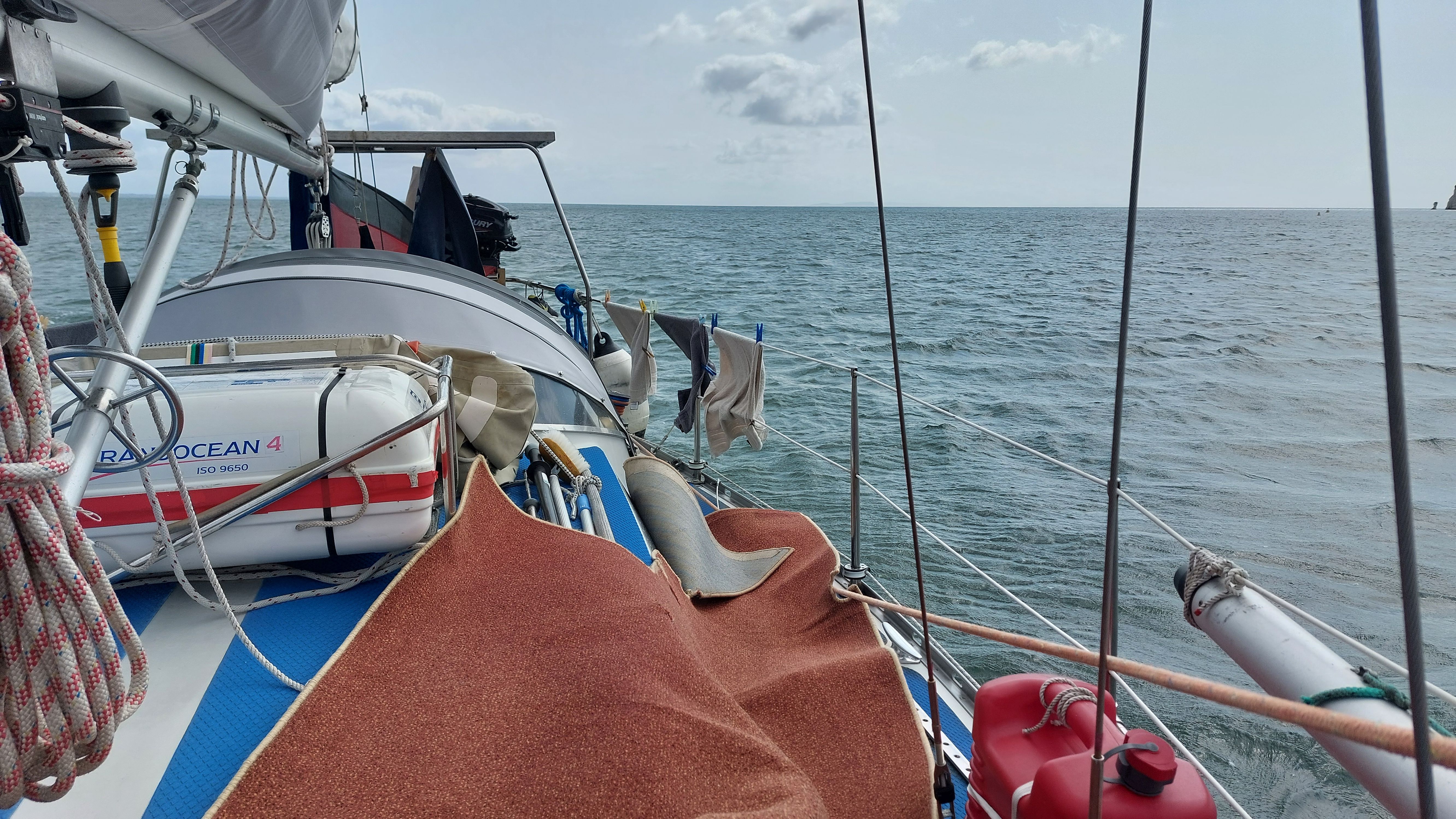 Montag und Dienstag bin ich von morgens bis abends damit beschäftigt Lua wieder einigermaßen trocken zu bekommen. Zunächst baue ich den Salontisch ab, damit der Teppich raus und an Deck in der Sonne trocknen kann. Die vielen Handtücher, Lappen, Schuhe, ... die vorne vom Salzwasser durchnässt wurden kommen auf die Reling bis jeder Zentimeter belegt ist und alle Wäscheklammern in Gebrauch sind. Ich räume die nassen Schapps aus und entdecke immer wieder neue geflutete Stellen. Unter den Bodenbrettern über dem Bilgetank, im Schapp unter dem Navitisch, sämtlicher Stauraum unter der Steuerbordkoje im Salon. In der mittleren Backskiste unter der Koje steht das Wasser bestimmt fünfundzwanzig Zentimeter hoch. Diese Stauräume sind auch überwiegend wasserdicht. Bei der Schräglage gestern ist das Wasser aber an der Außenwand hoch und dann von oben hineingelaufen. Jetzt kommt es dort von alleine nicht wieder heraus.